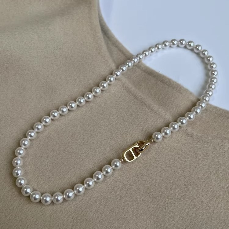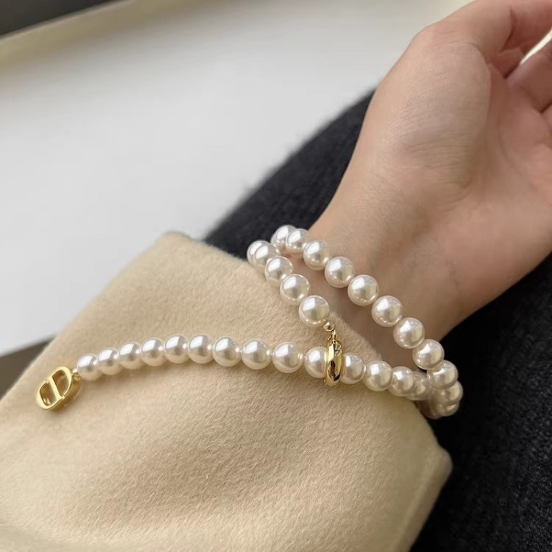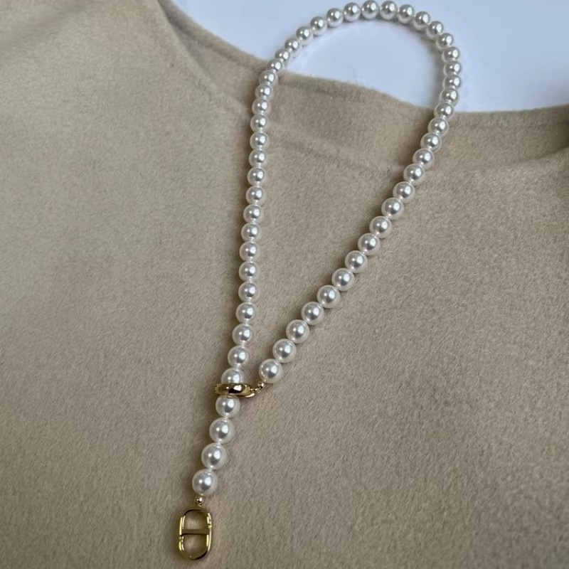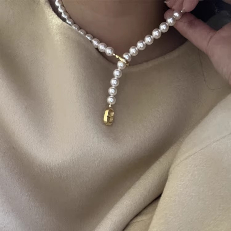 正圆强光施家珍珠字母H项链女轻奢小众感锁骨链气质时尚百搭