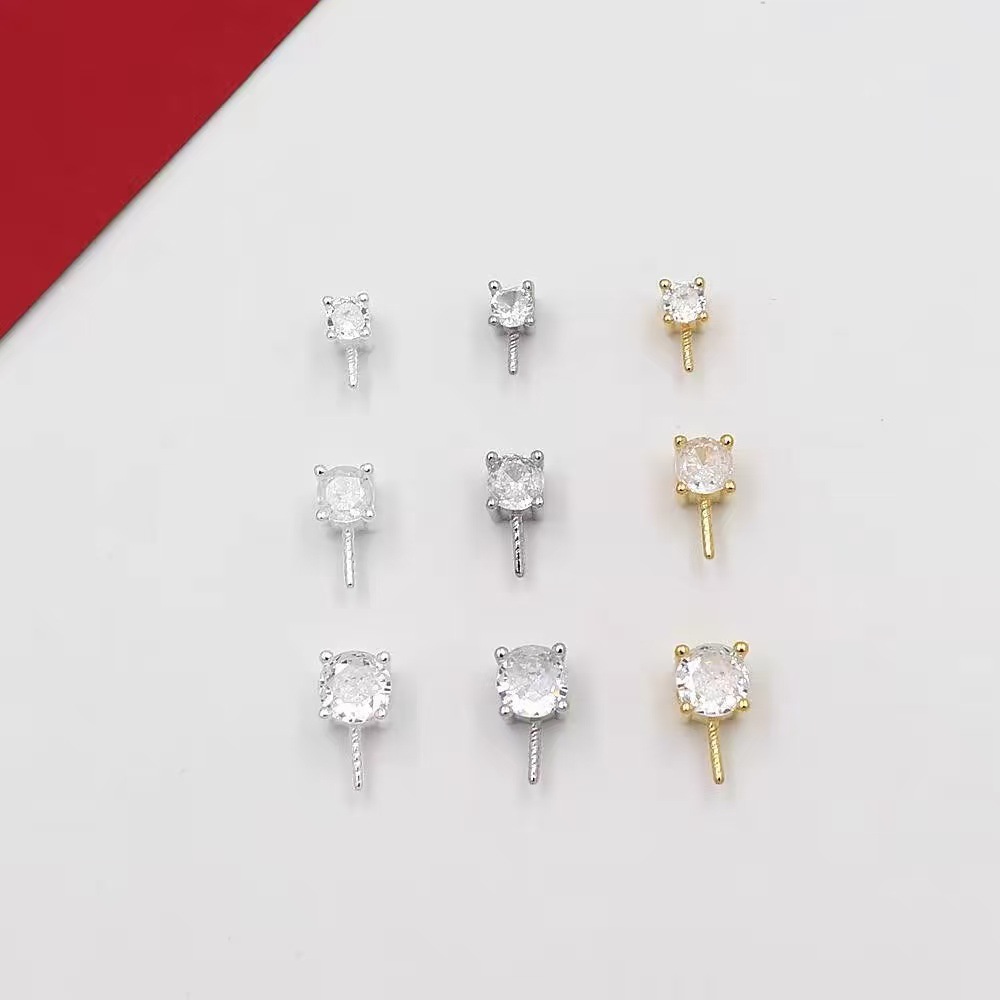 保色18K包金经典戴妃单锆珠针空托隔珠吊坠DIY手工粘珍珠饰品配件