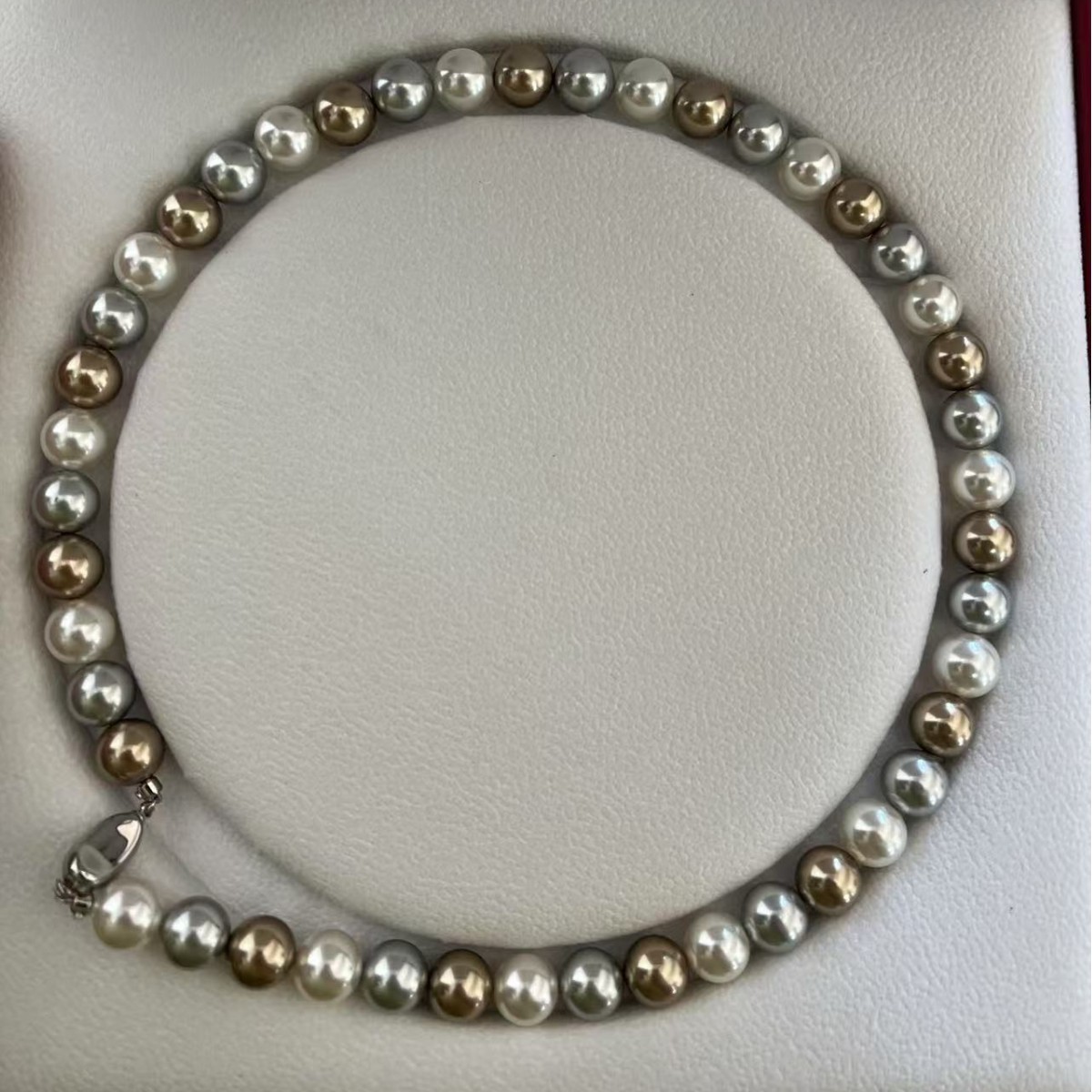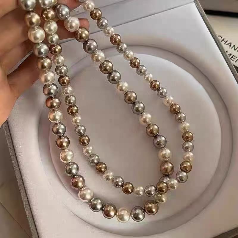 施家珍珠项链强光莫兰迪色孔雀绿仿海珠珍珠项链锁骨链毛衣链