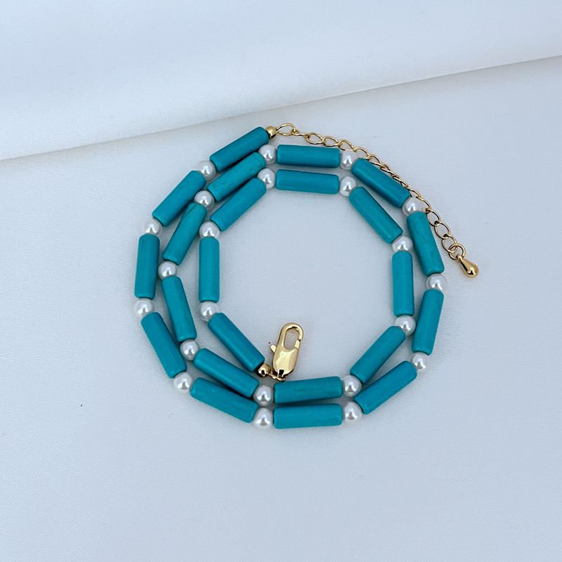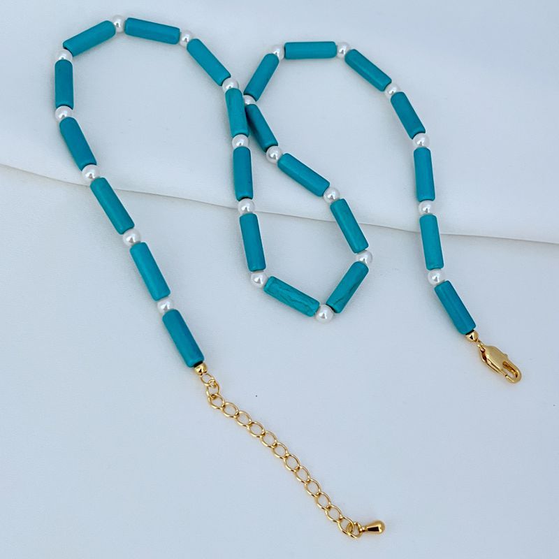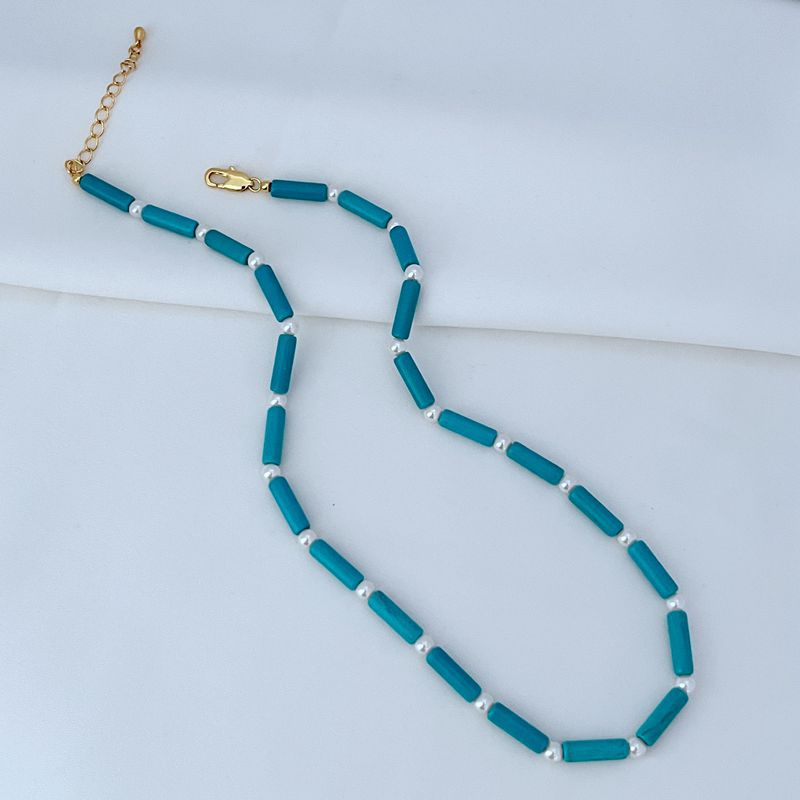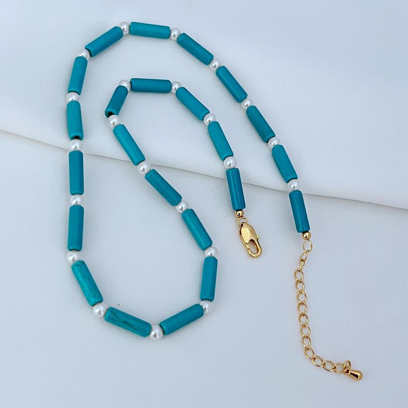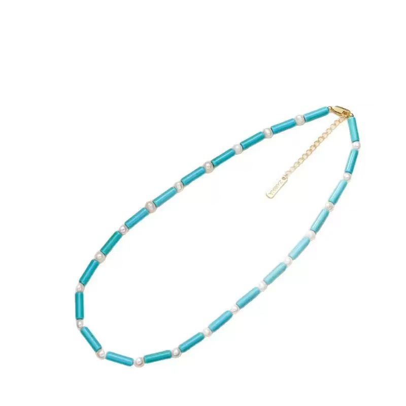 天然松石项链施家水晶珍珠拼接项链红书同款项链厂家批发