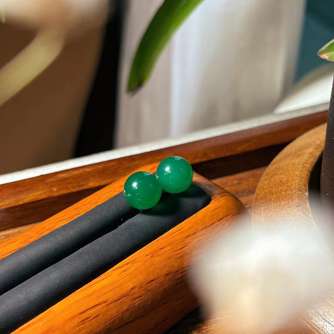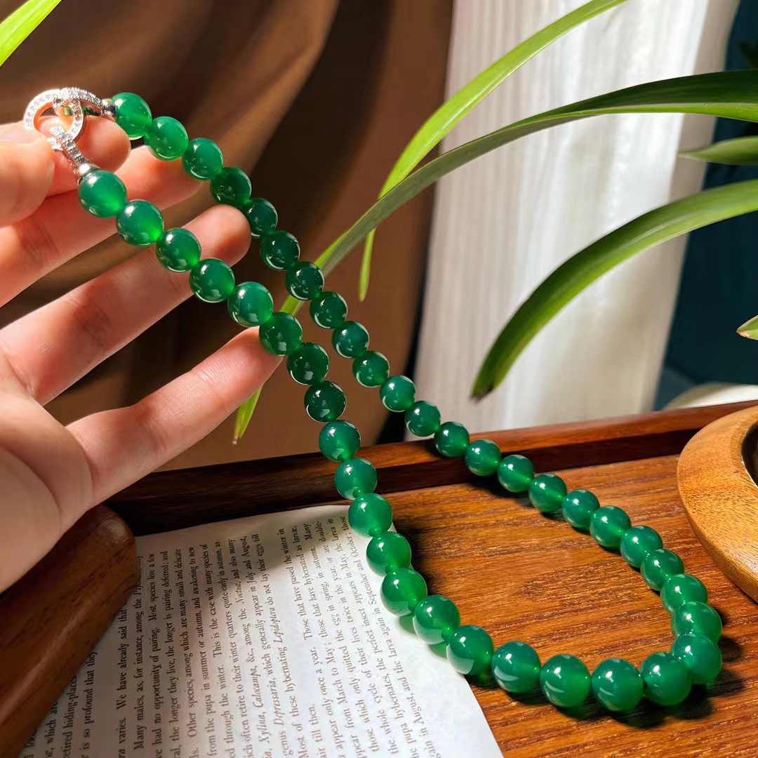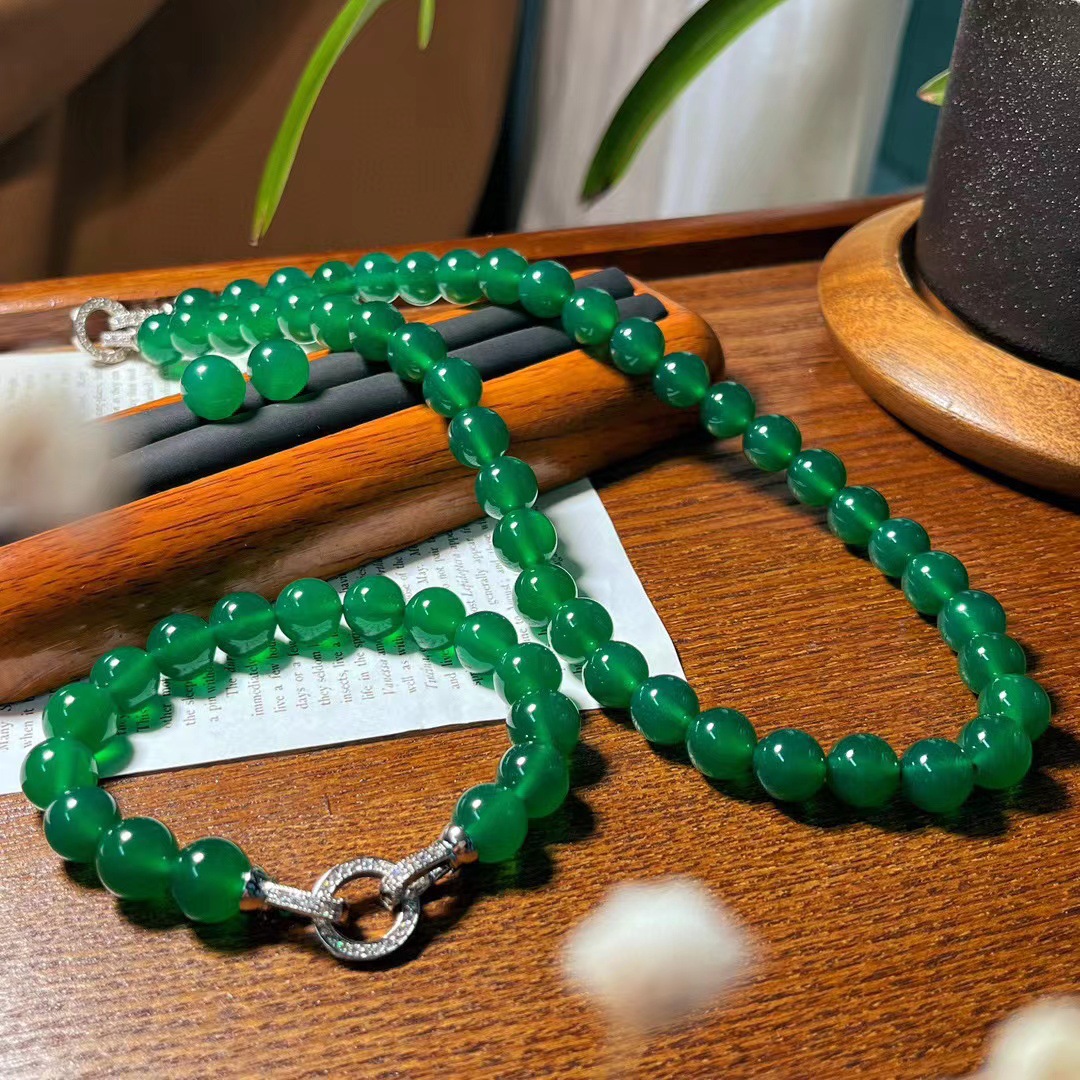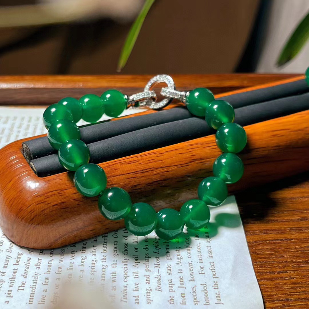翡翠色起光天然绿玉髓玛瑙项链手链耳钉 母亲节妈妈项链手链套盒