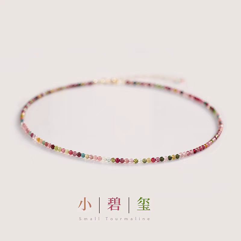 天然彩虹小碧玺项链女新款颈链轻奢小众彩色小米珠14k包金锁骨链