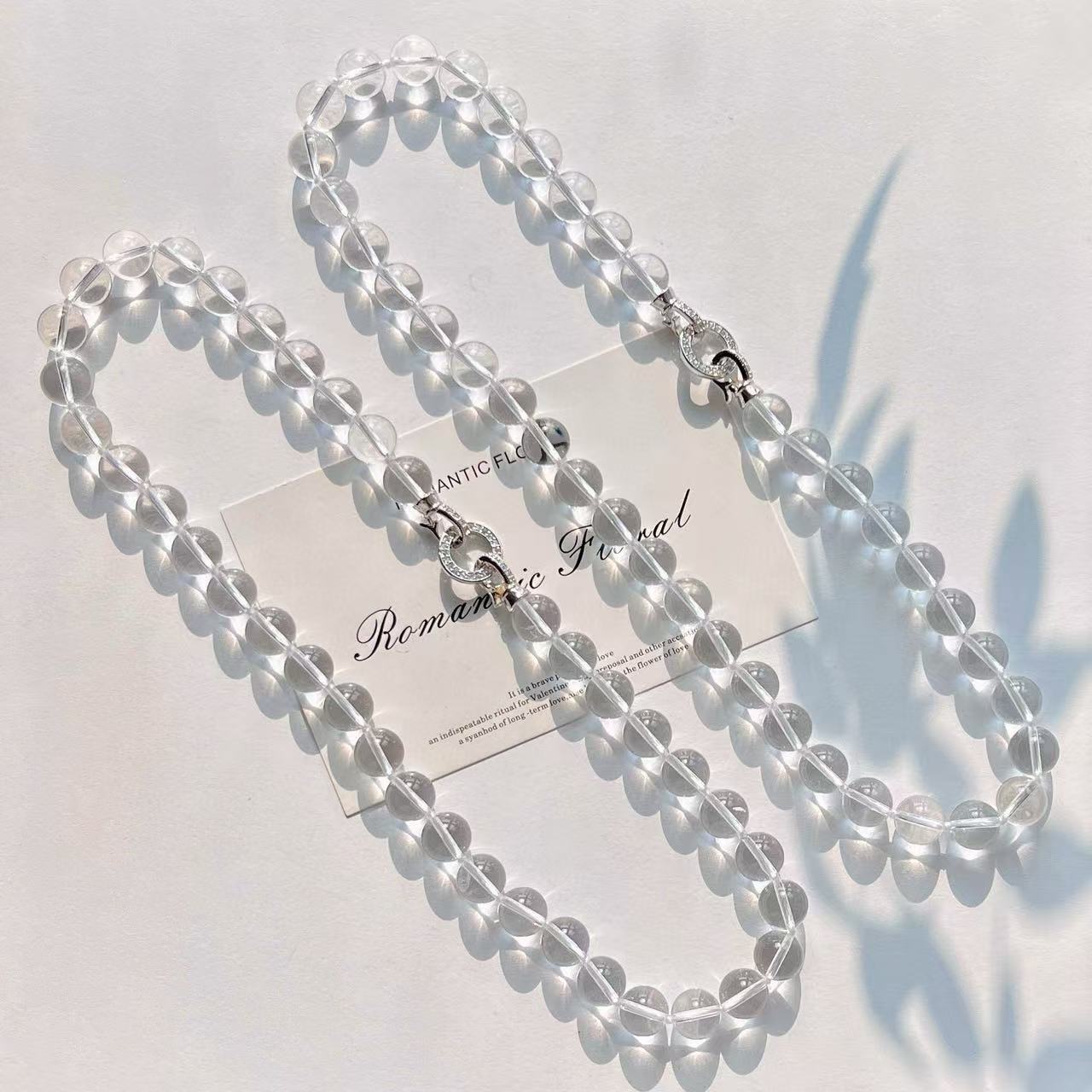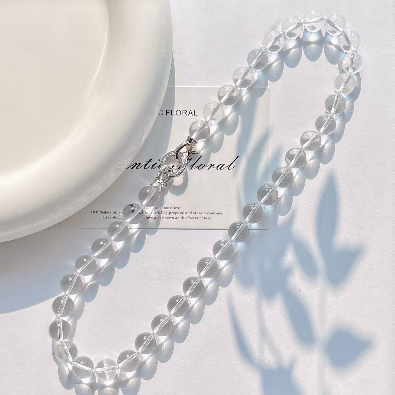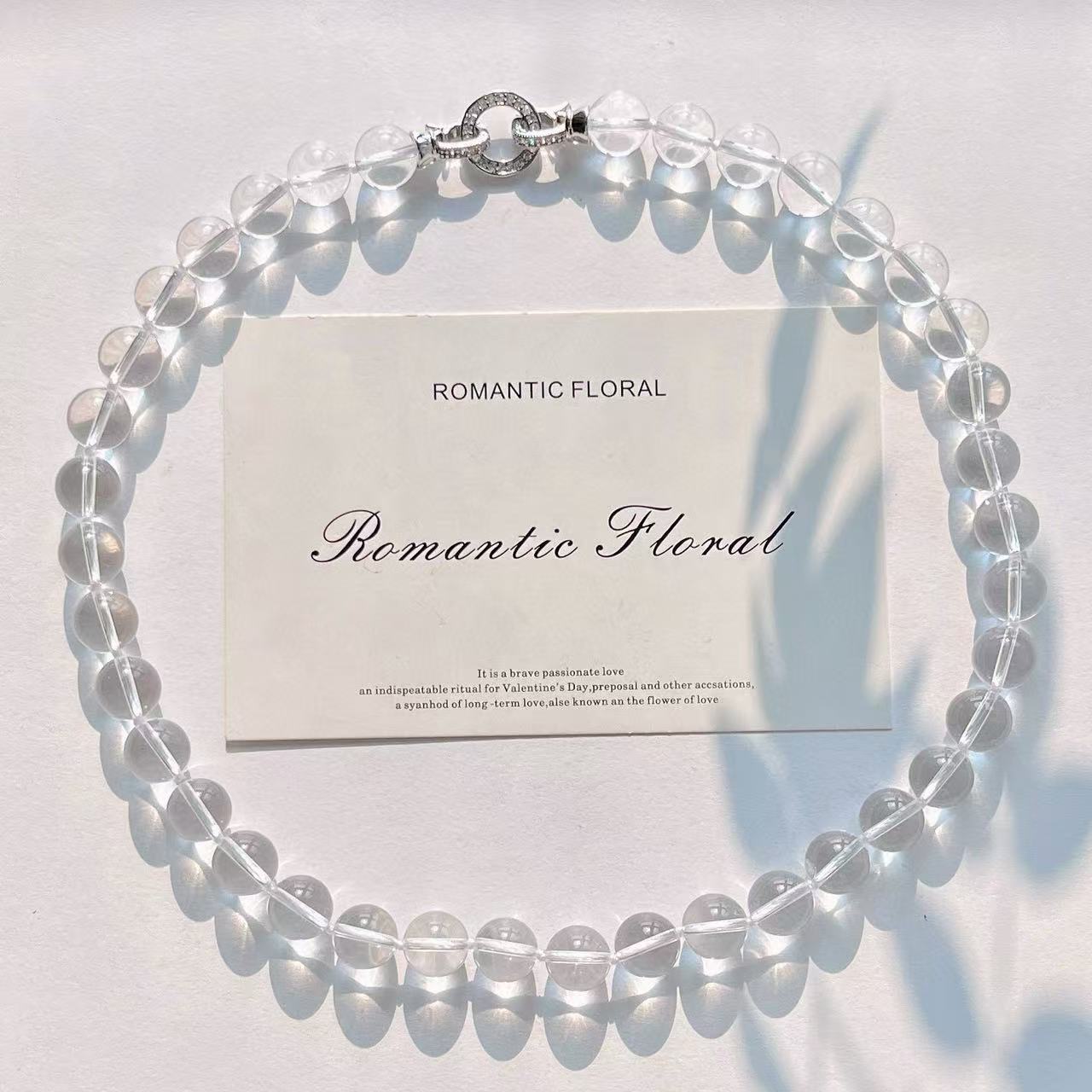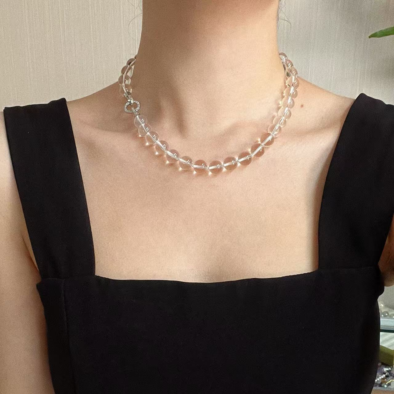 8MM国风复古高定高品质玻璃体天然白水晶项链锁骨链
