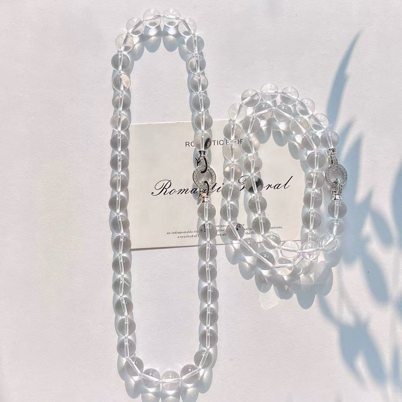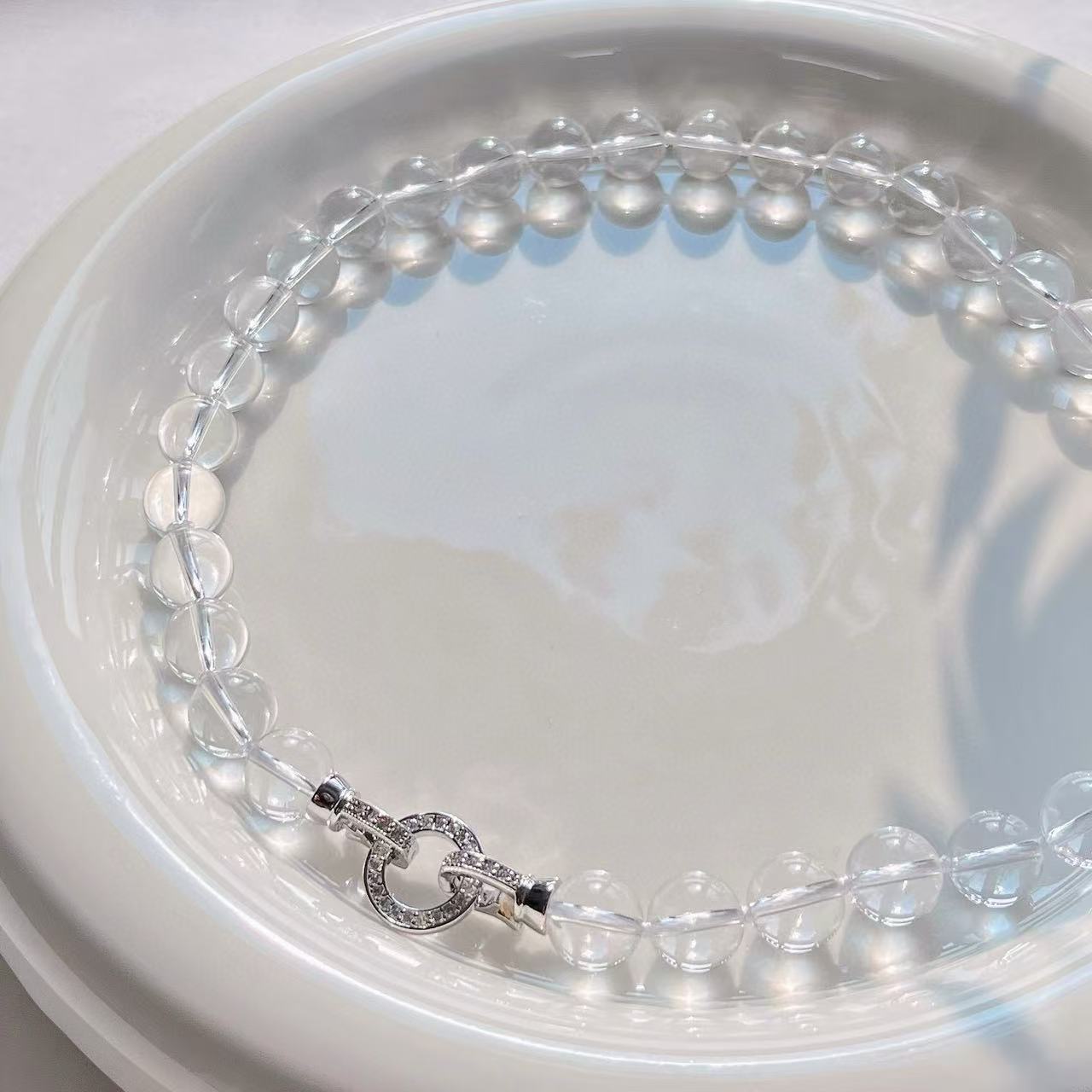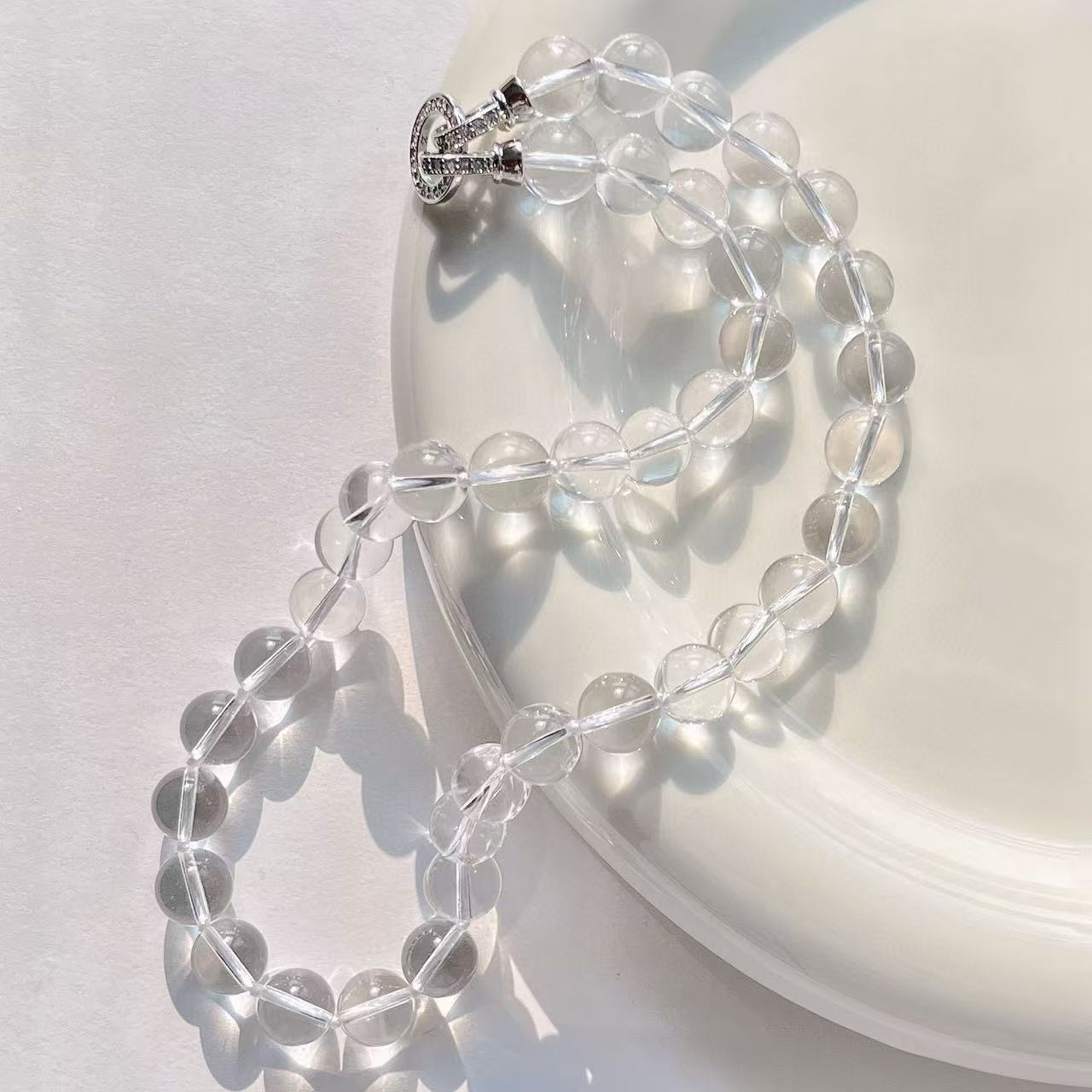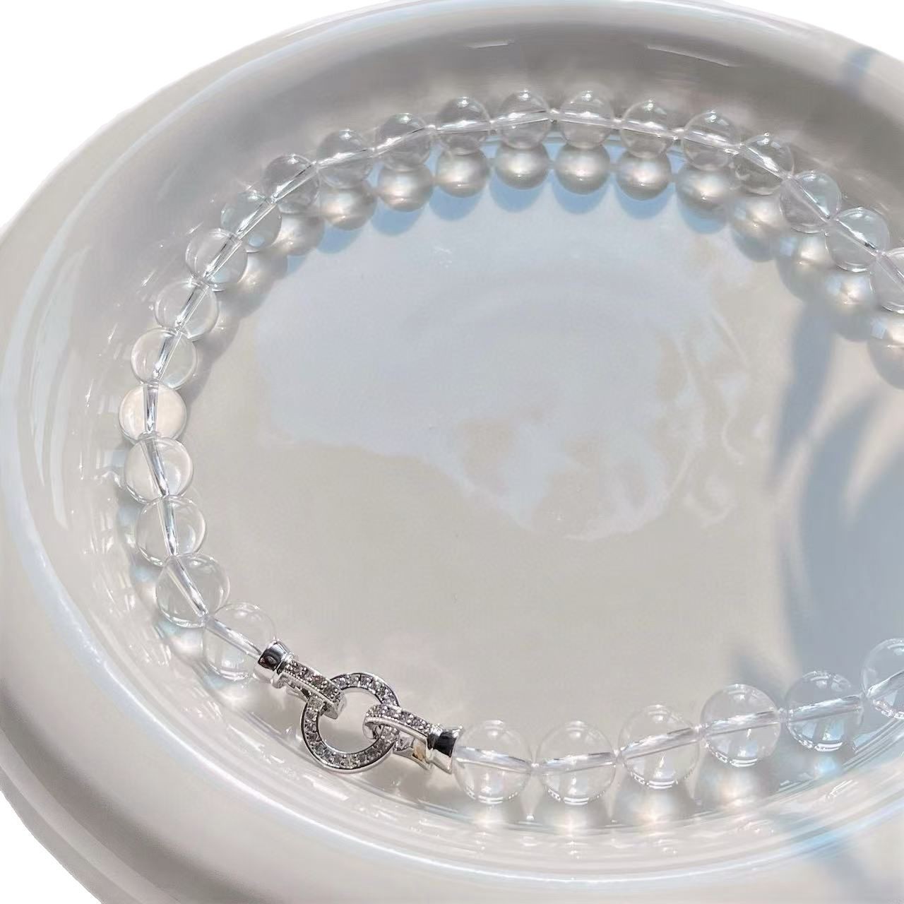 8MM国风复古高定高品质玻璃体天然白水晶项链锁骨链