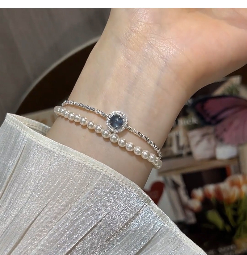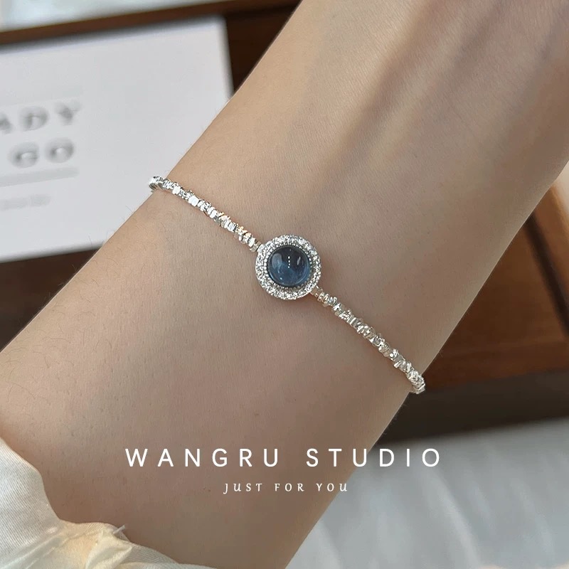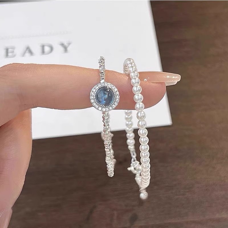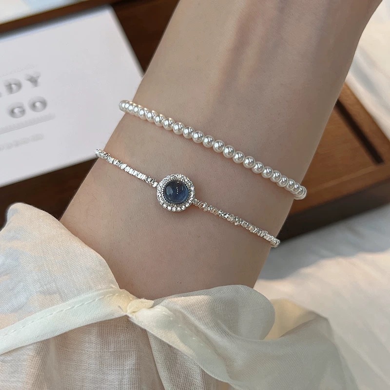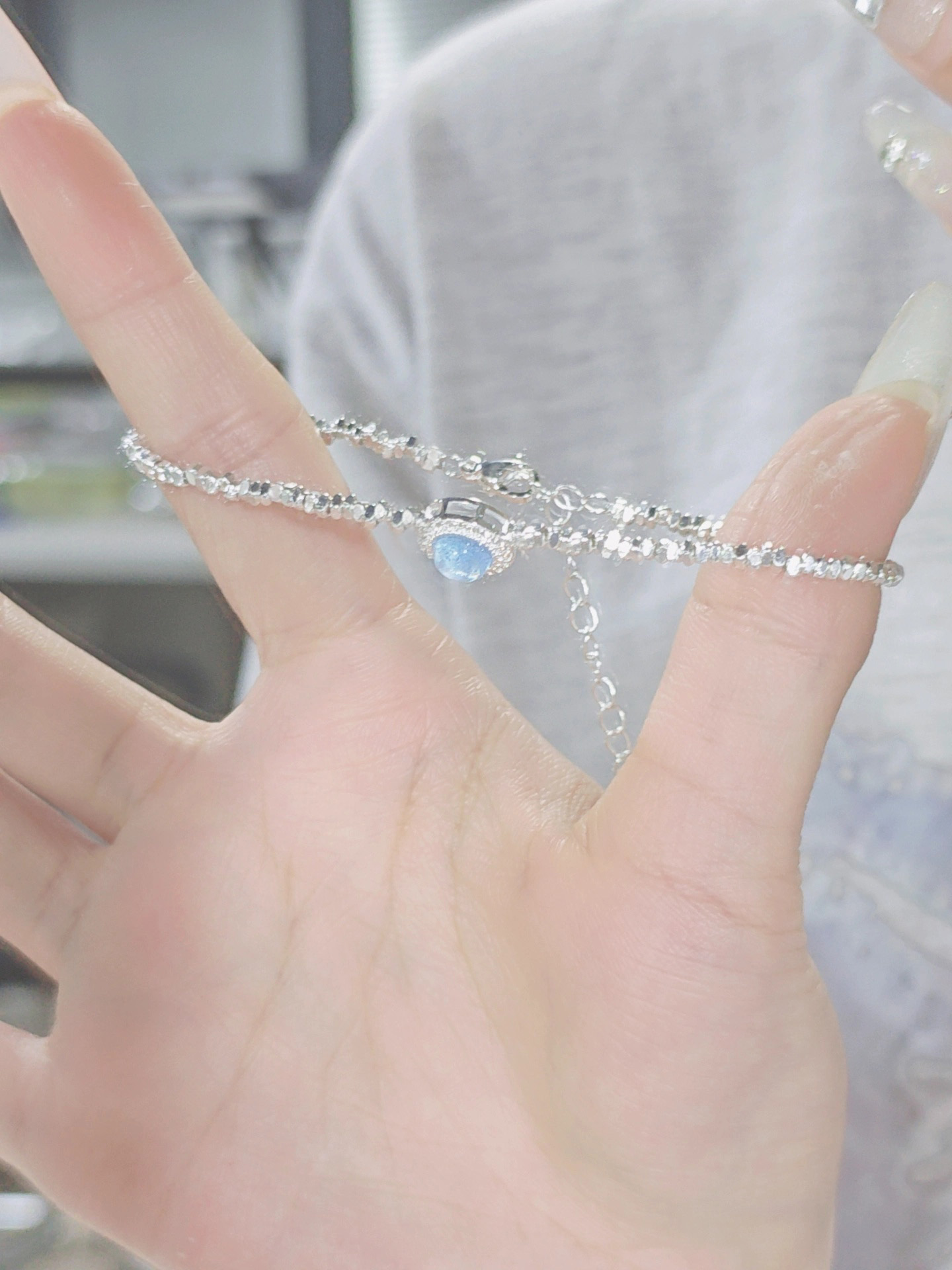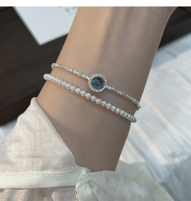 海蓝宝碎银珍珠手链女新款轻奢小众感精致手饰生日礼物送女友