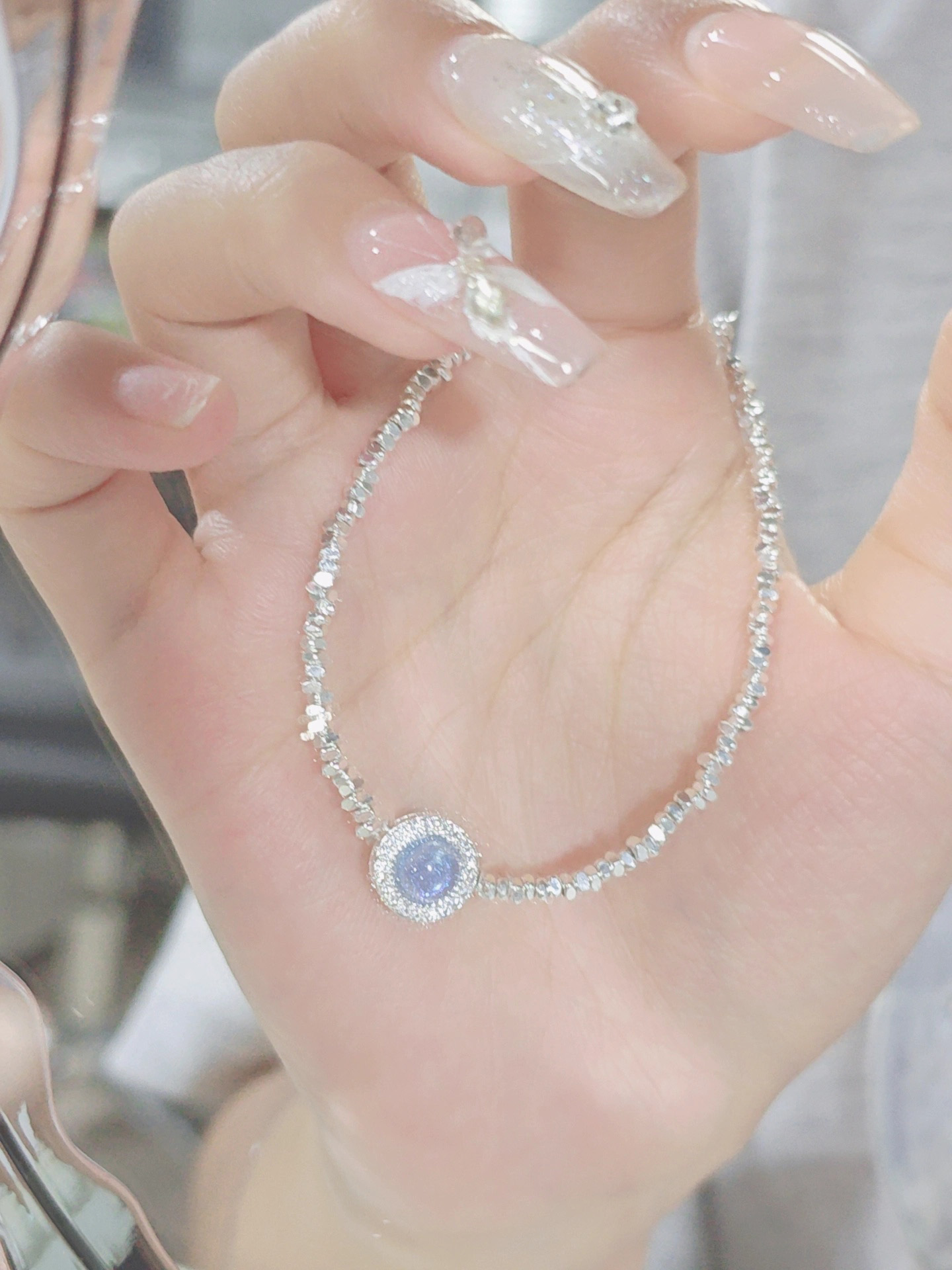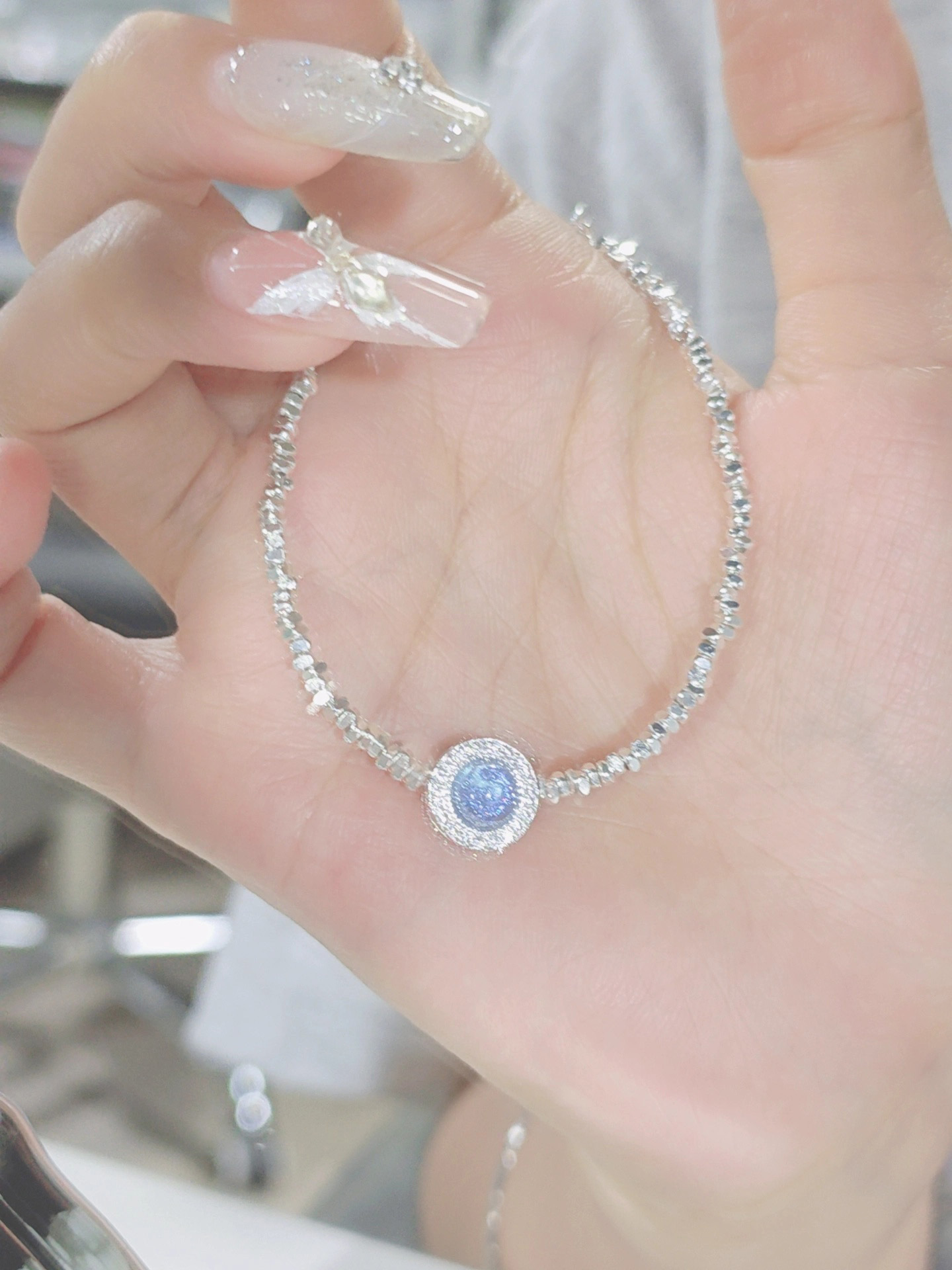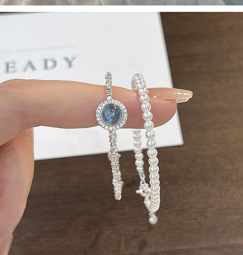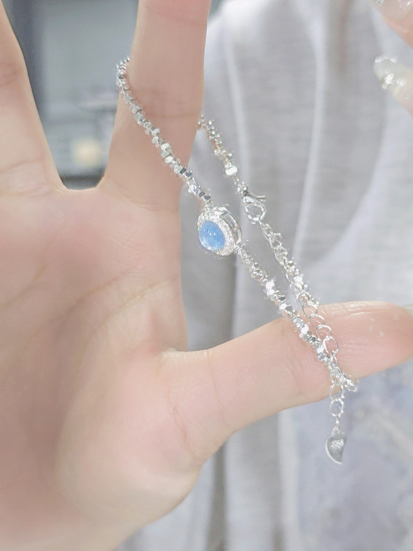 海蓝宝碎银珍珠手链女新款轻奢小众感精致手饰生日礼物送女友