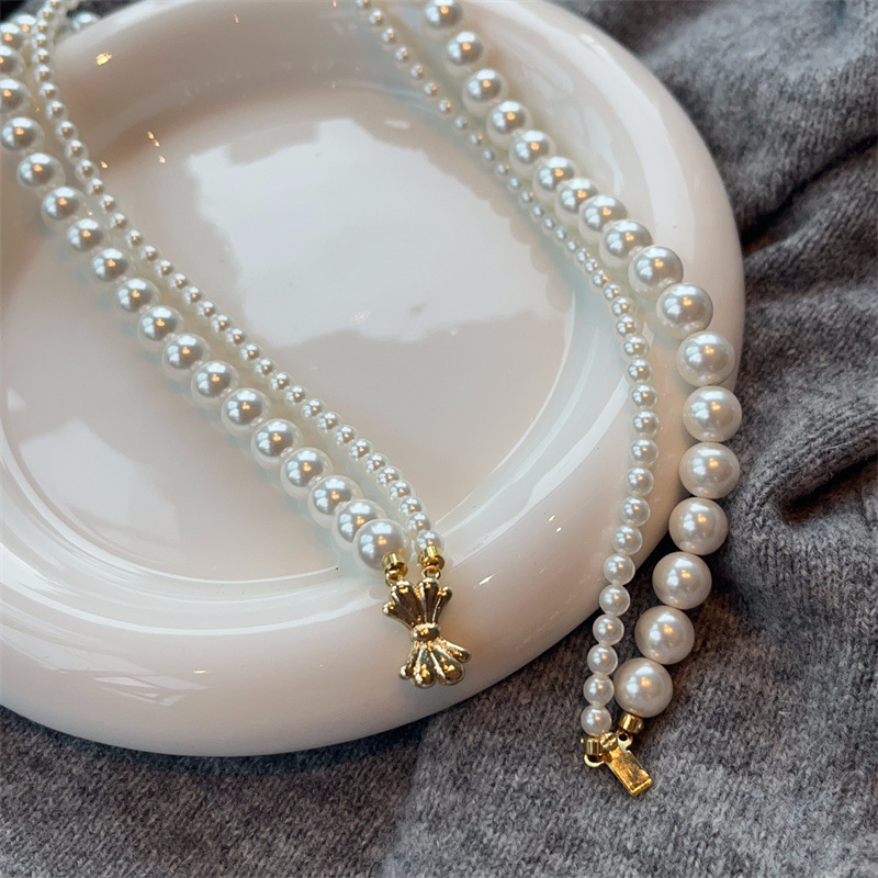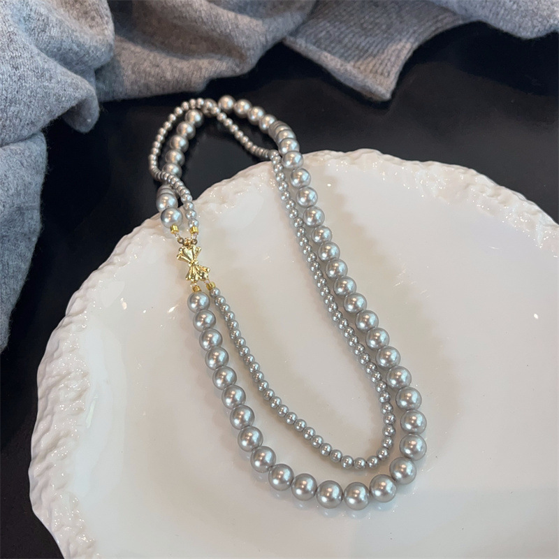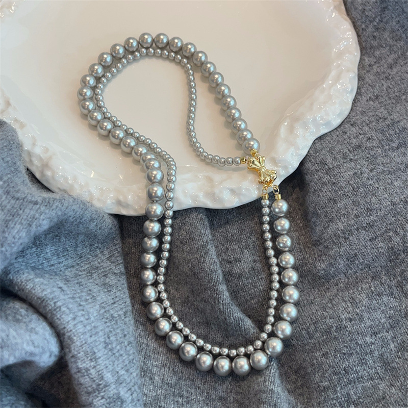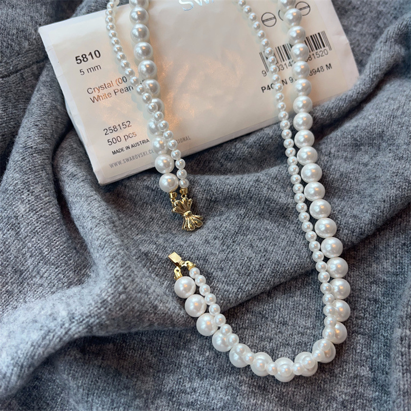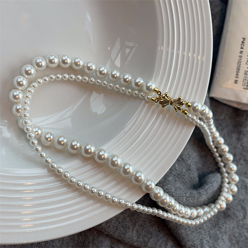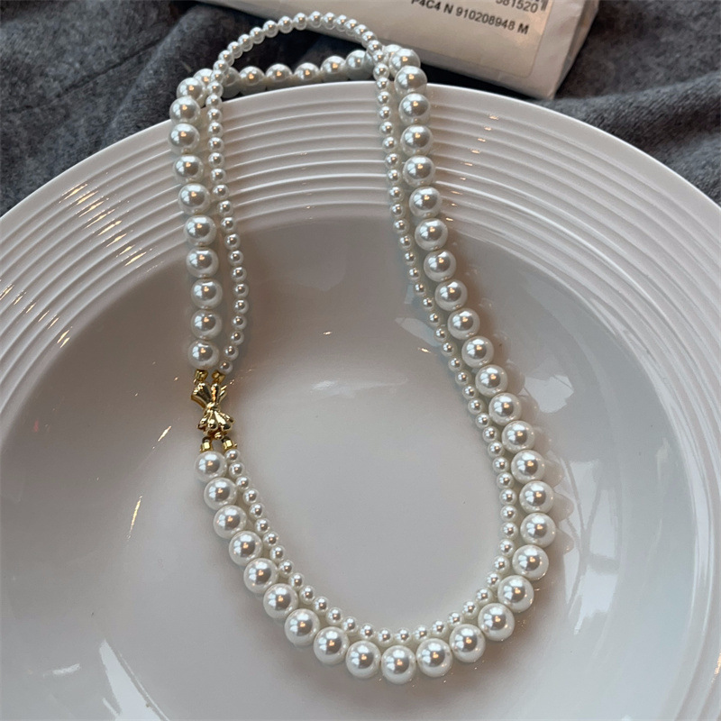 施家珍珠宝项链仿珍珠项链双层蝴蝶结扣直播货源厂家供应珍珠项链