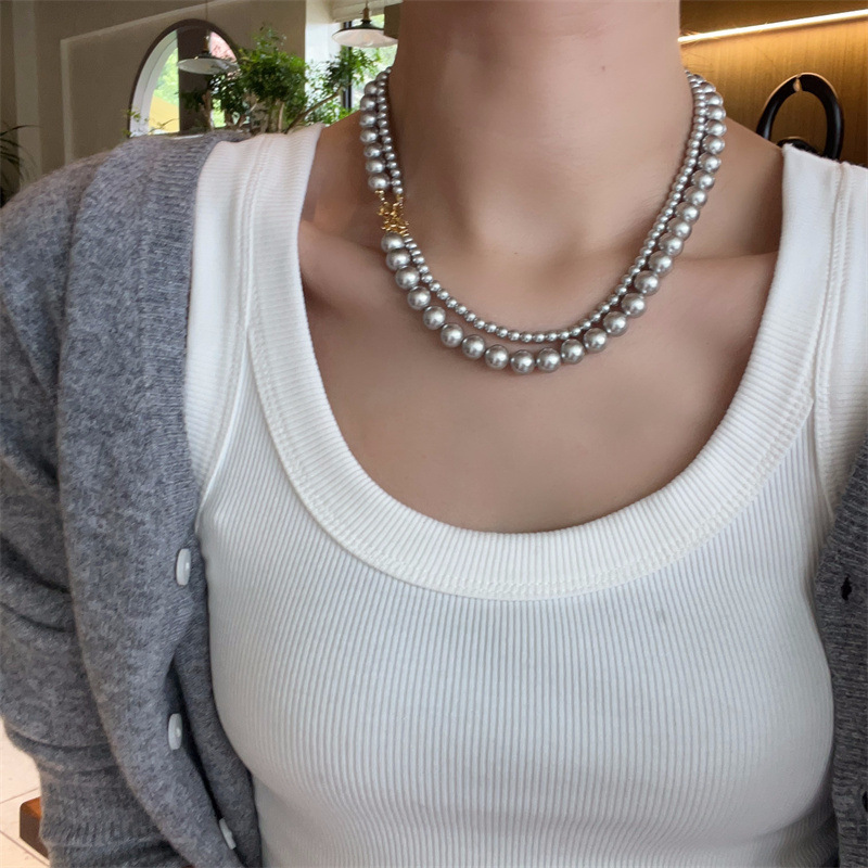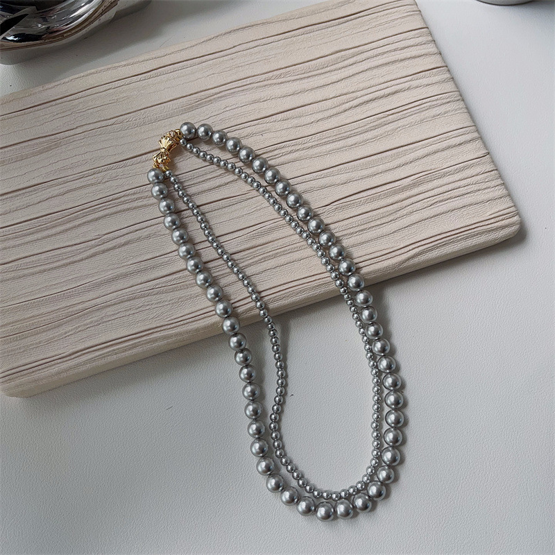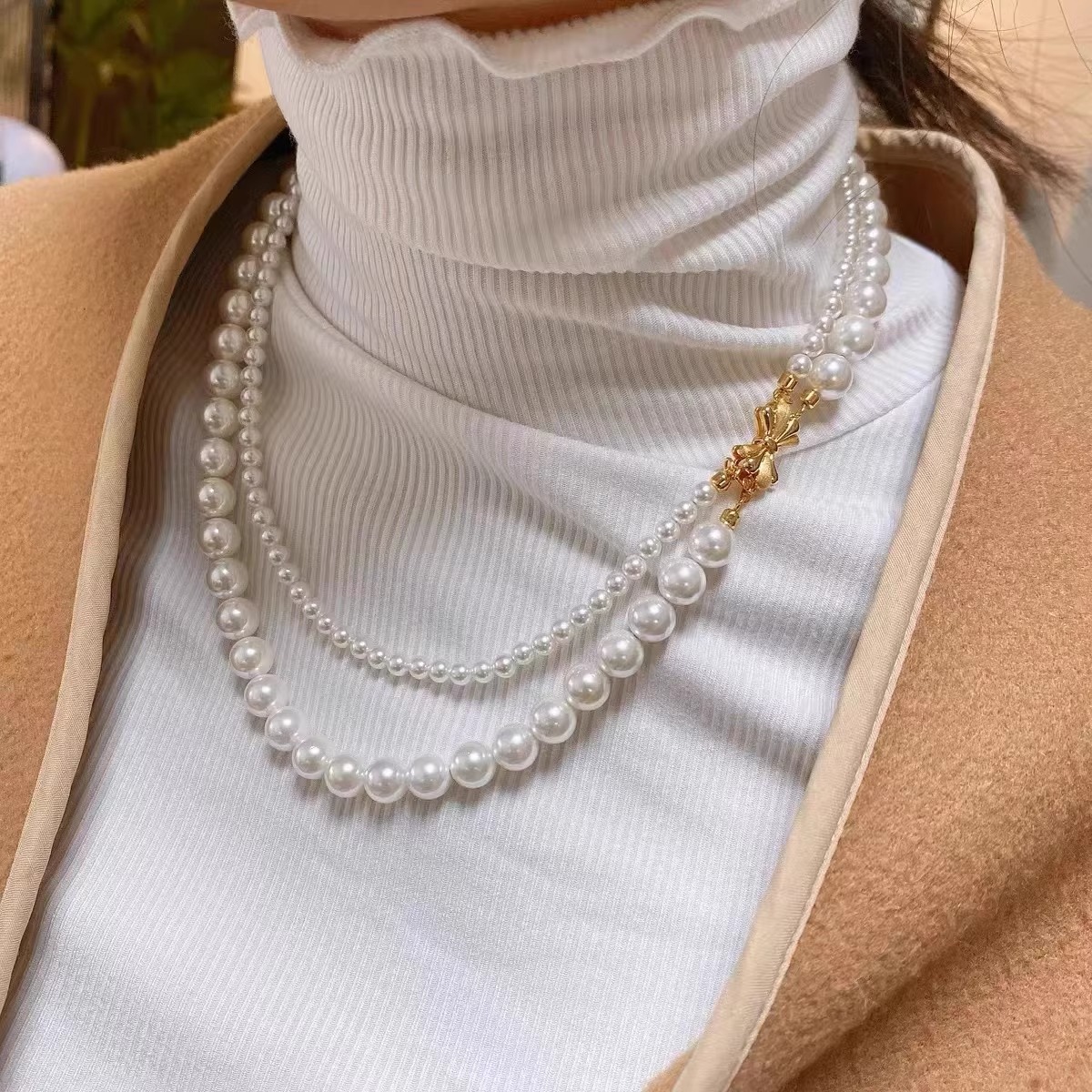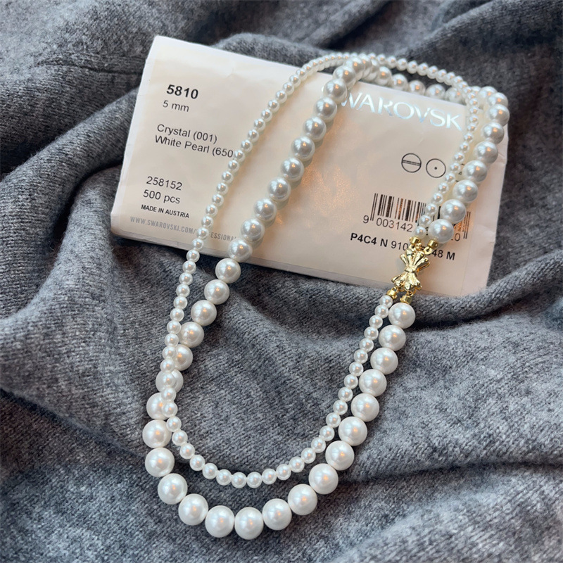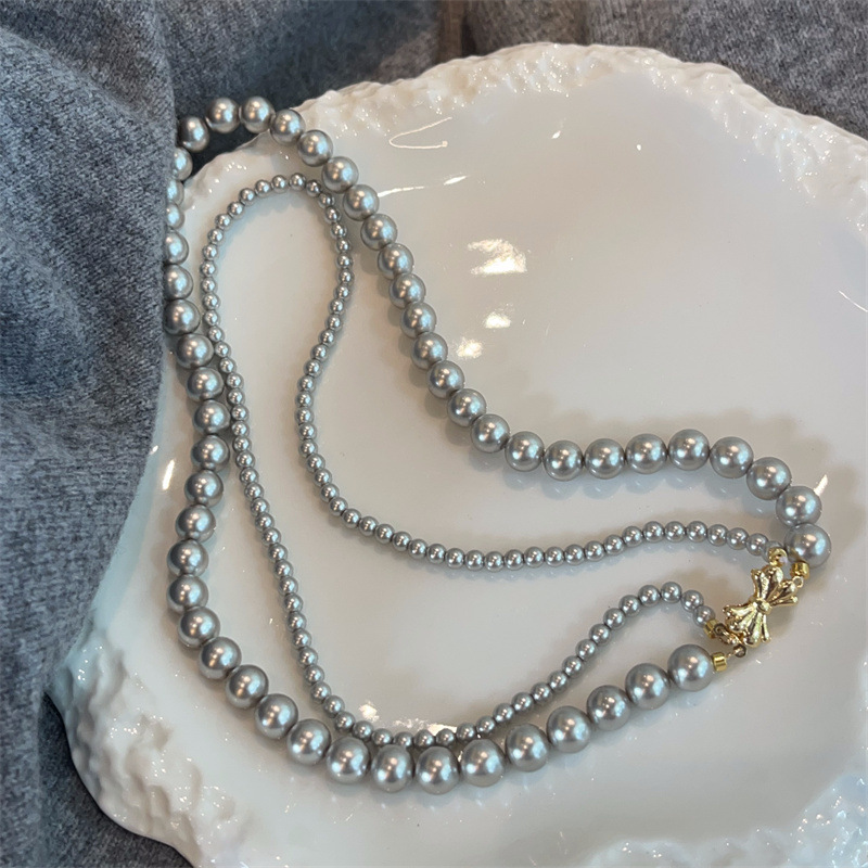 施家珍珠宝项链仿珍珠项链双层蝴蝶结扣直播货源厂家供应珍珠项链