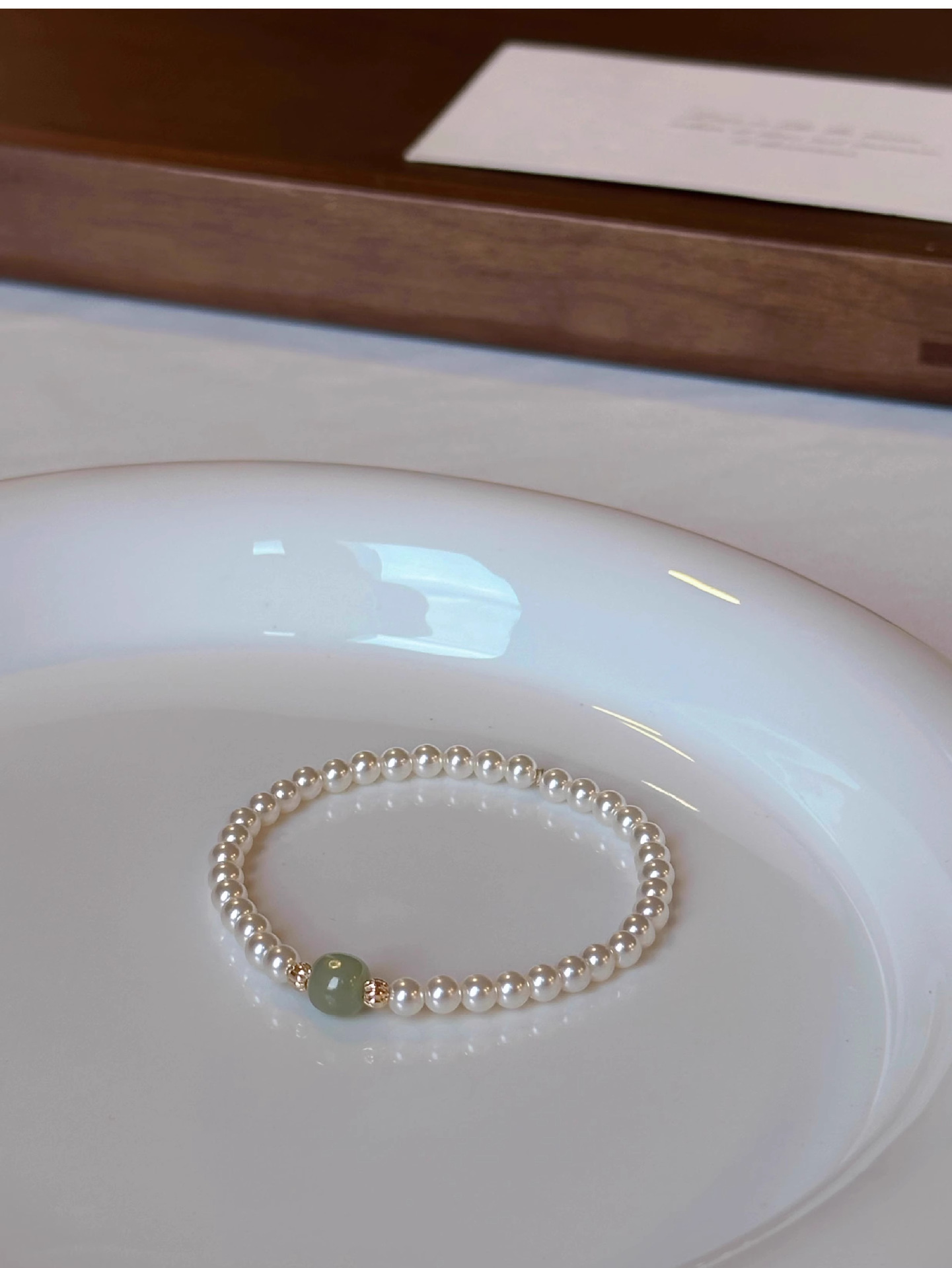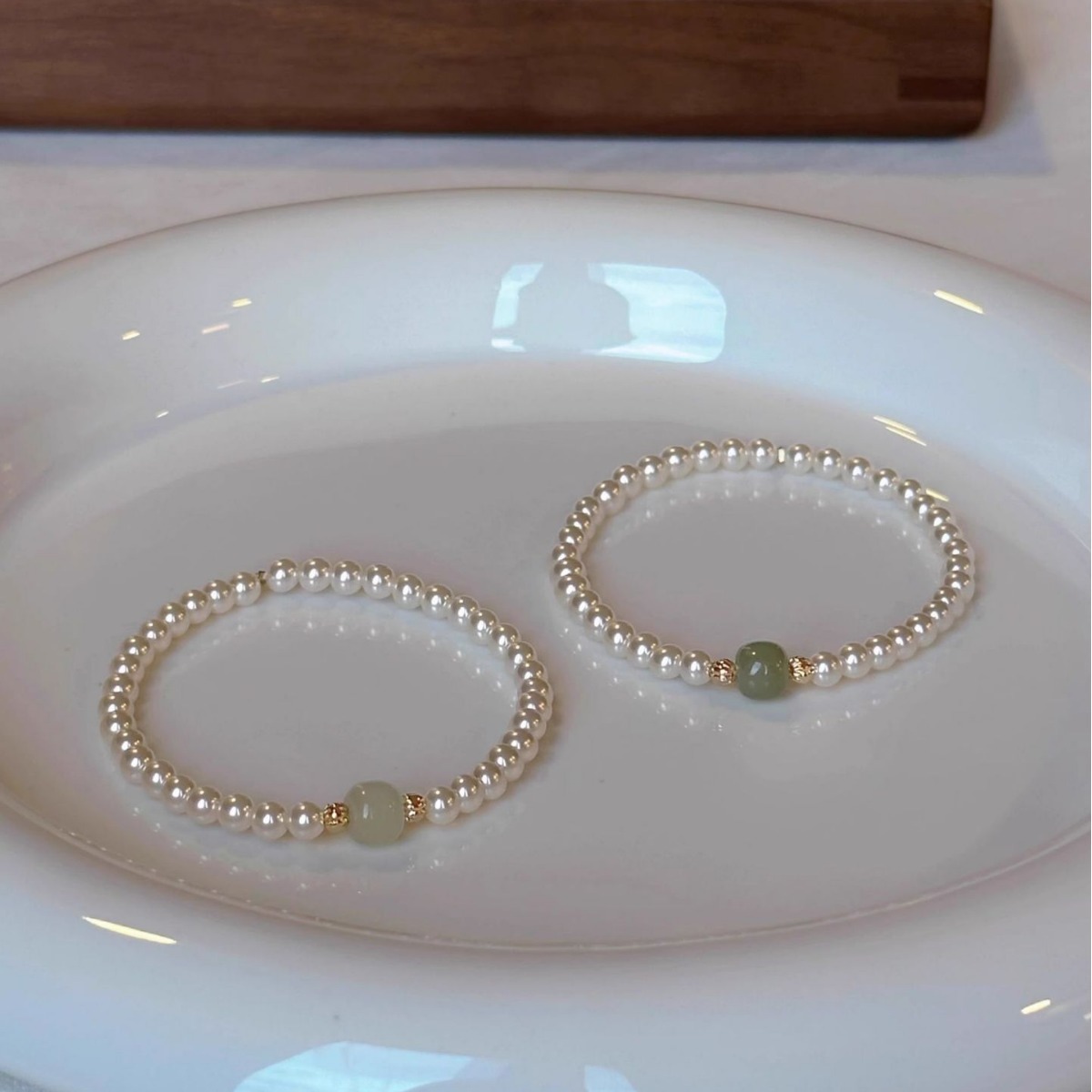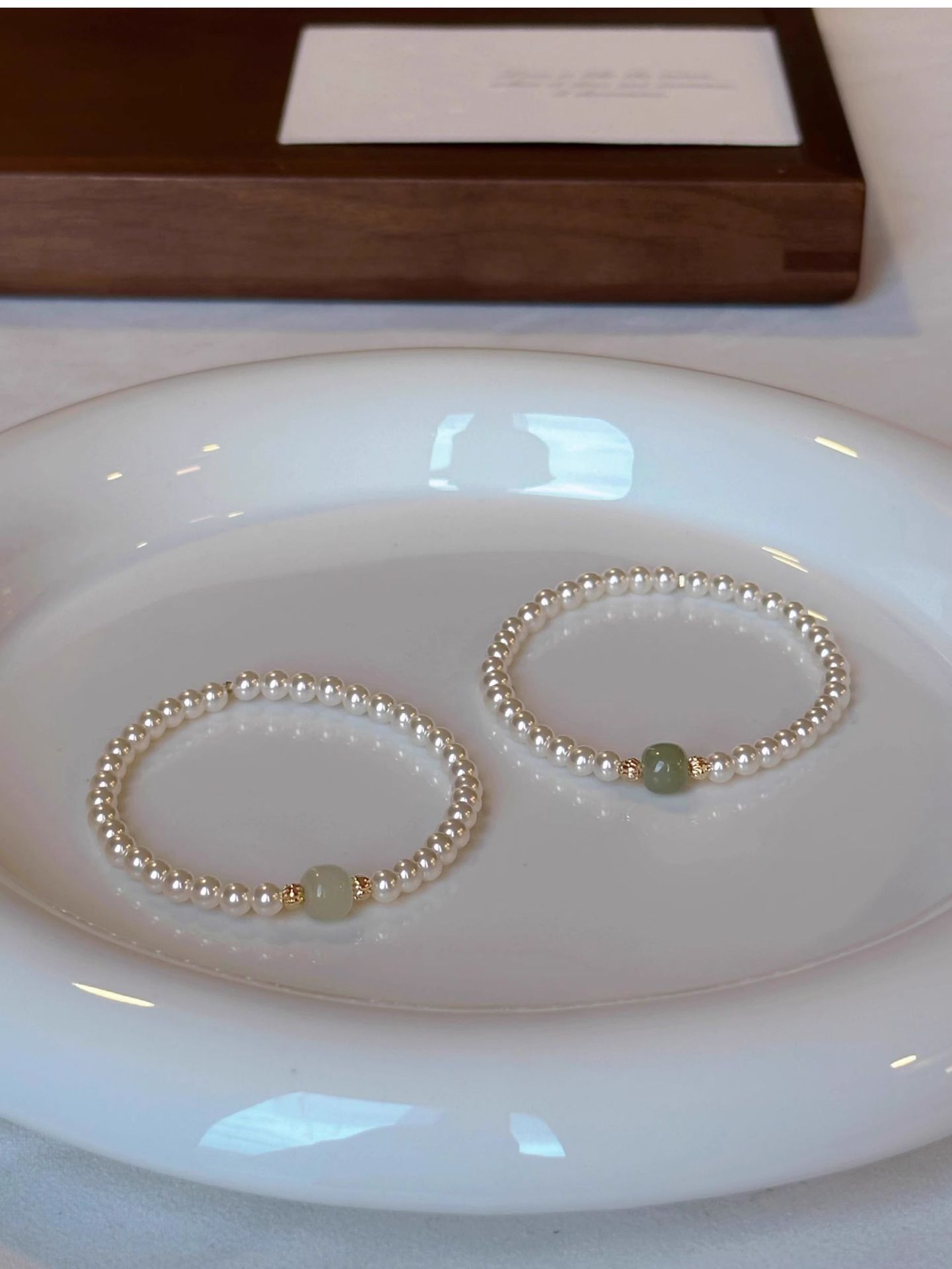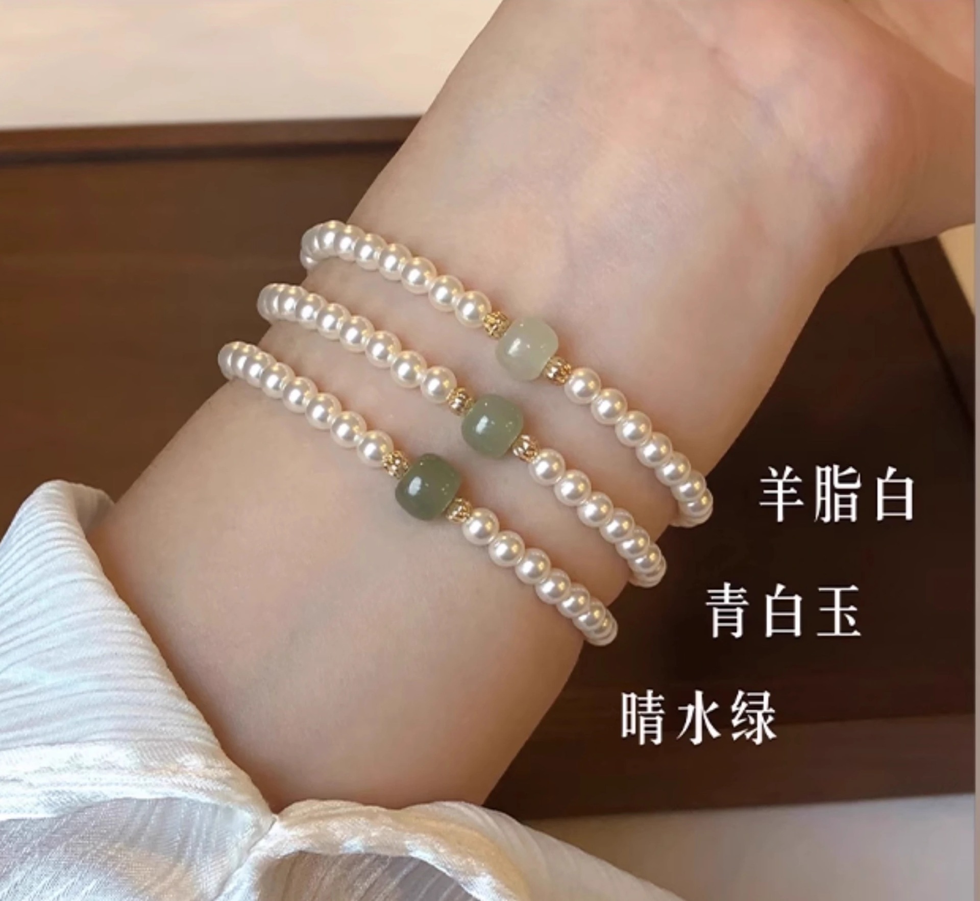 新中式正圆施家珍珠晴水和田玉手链女高级感轻奢国风小众设计手串