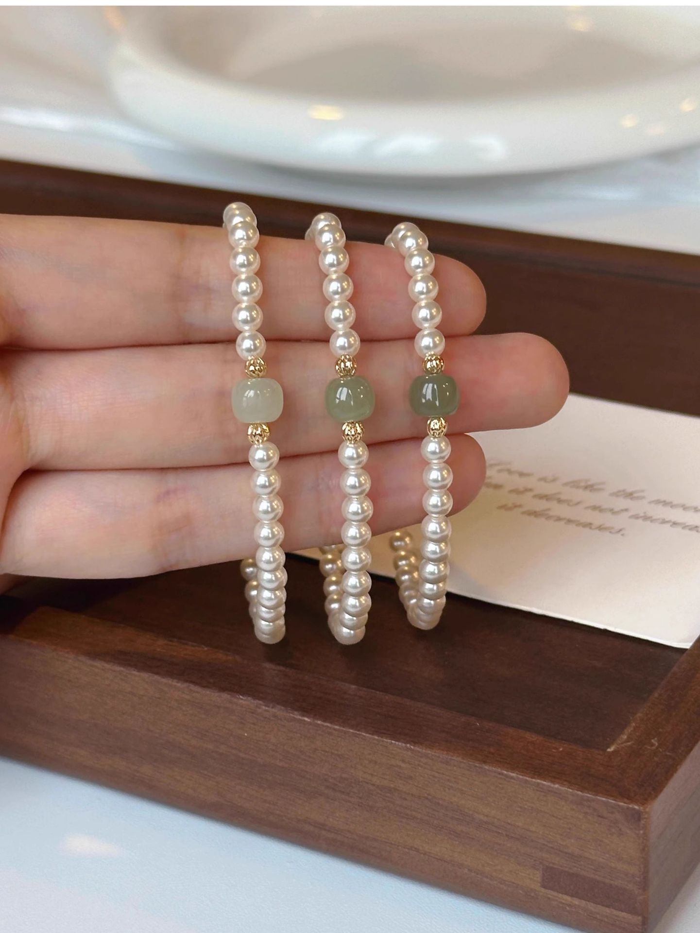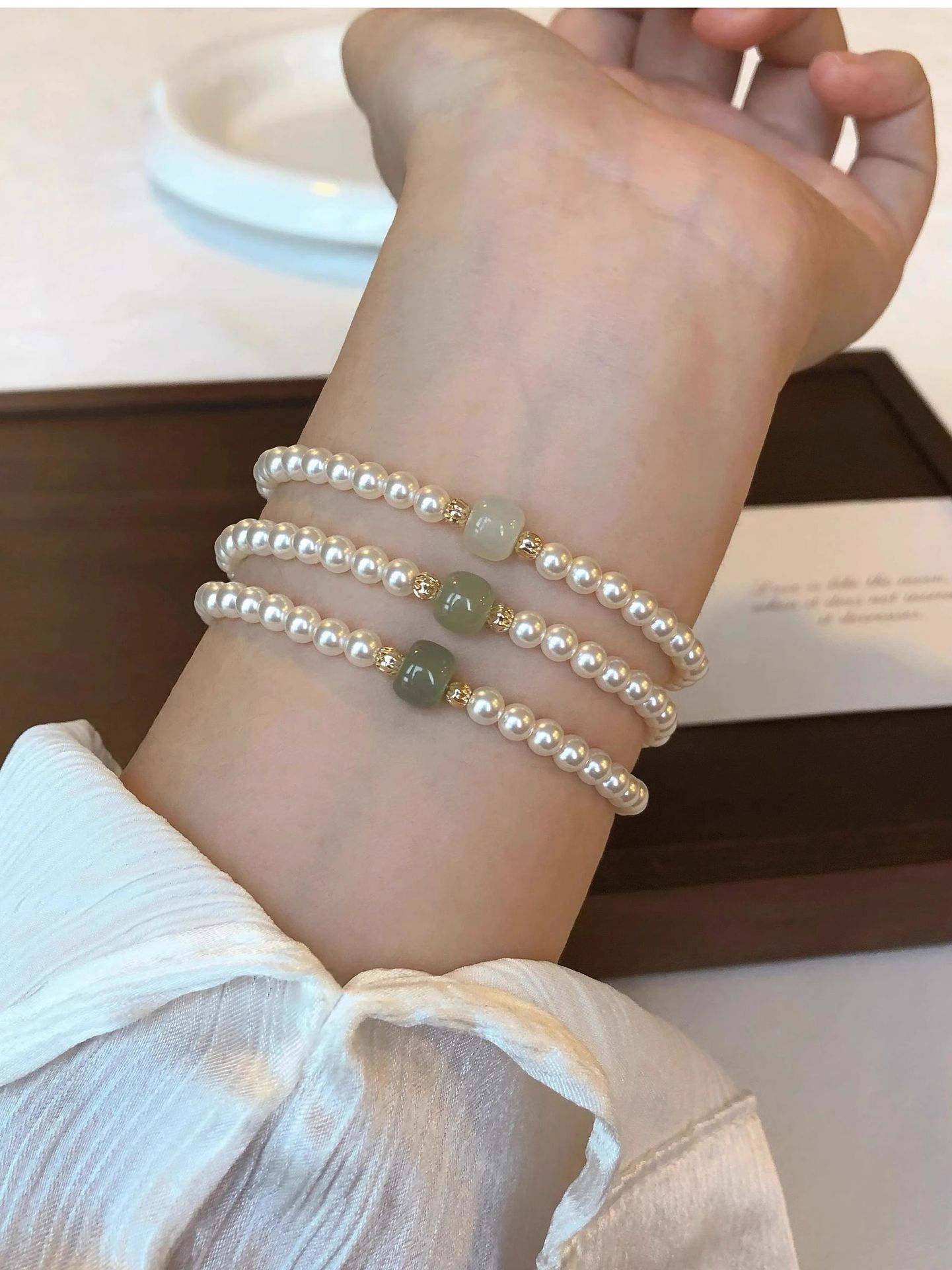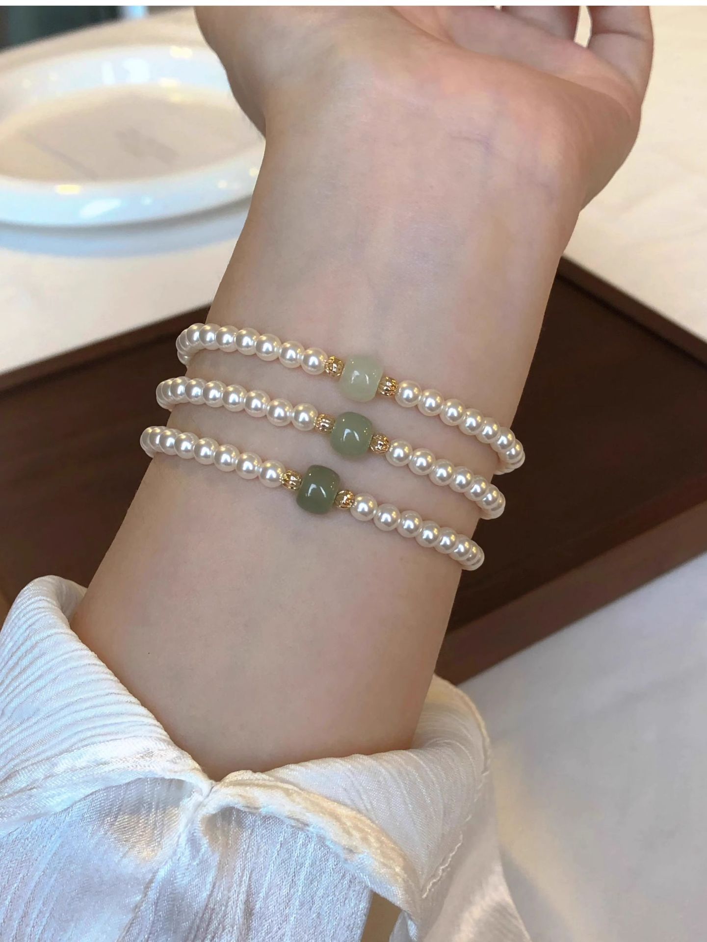 新中式正圆施家珍珠晴水和田玉手链女高级感轻奢国风小众设计手串