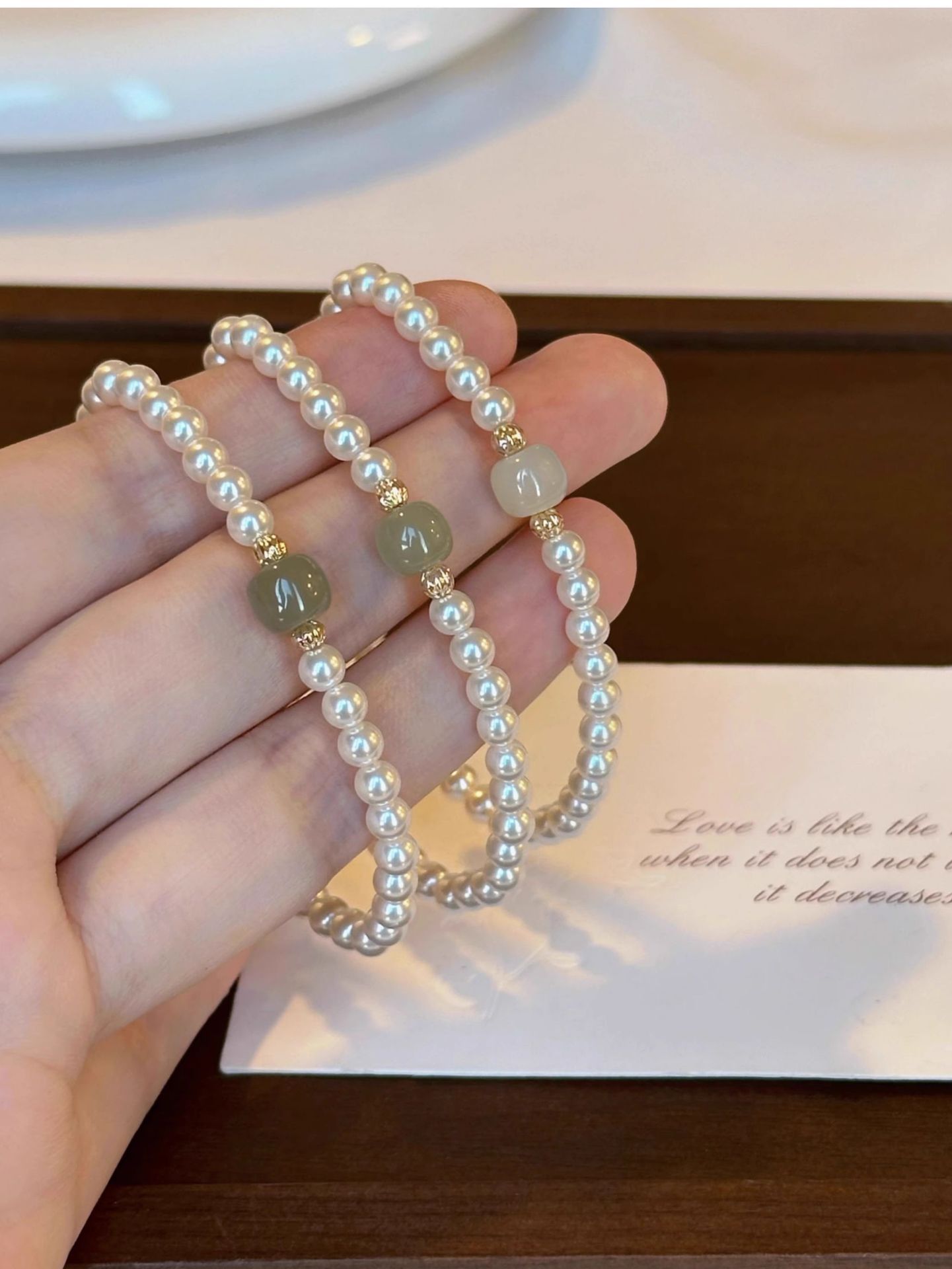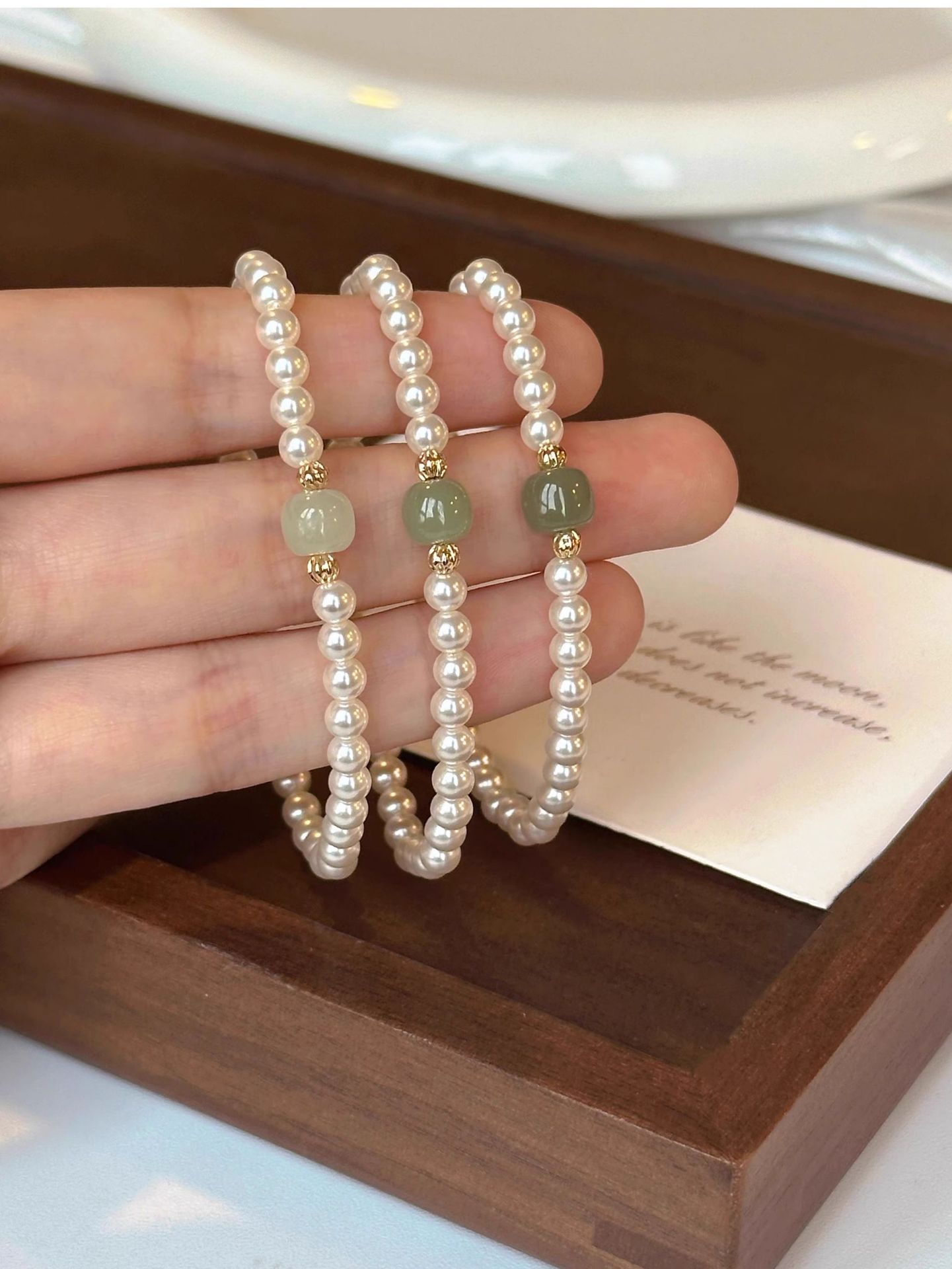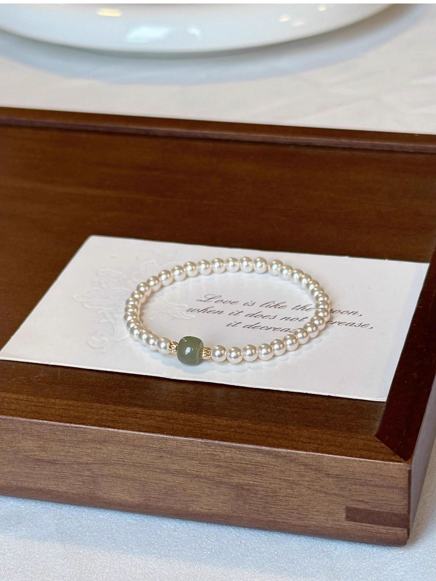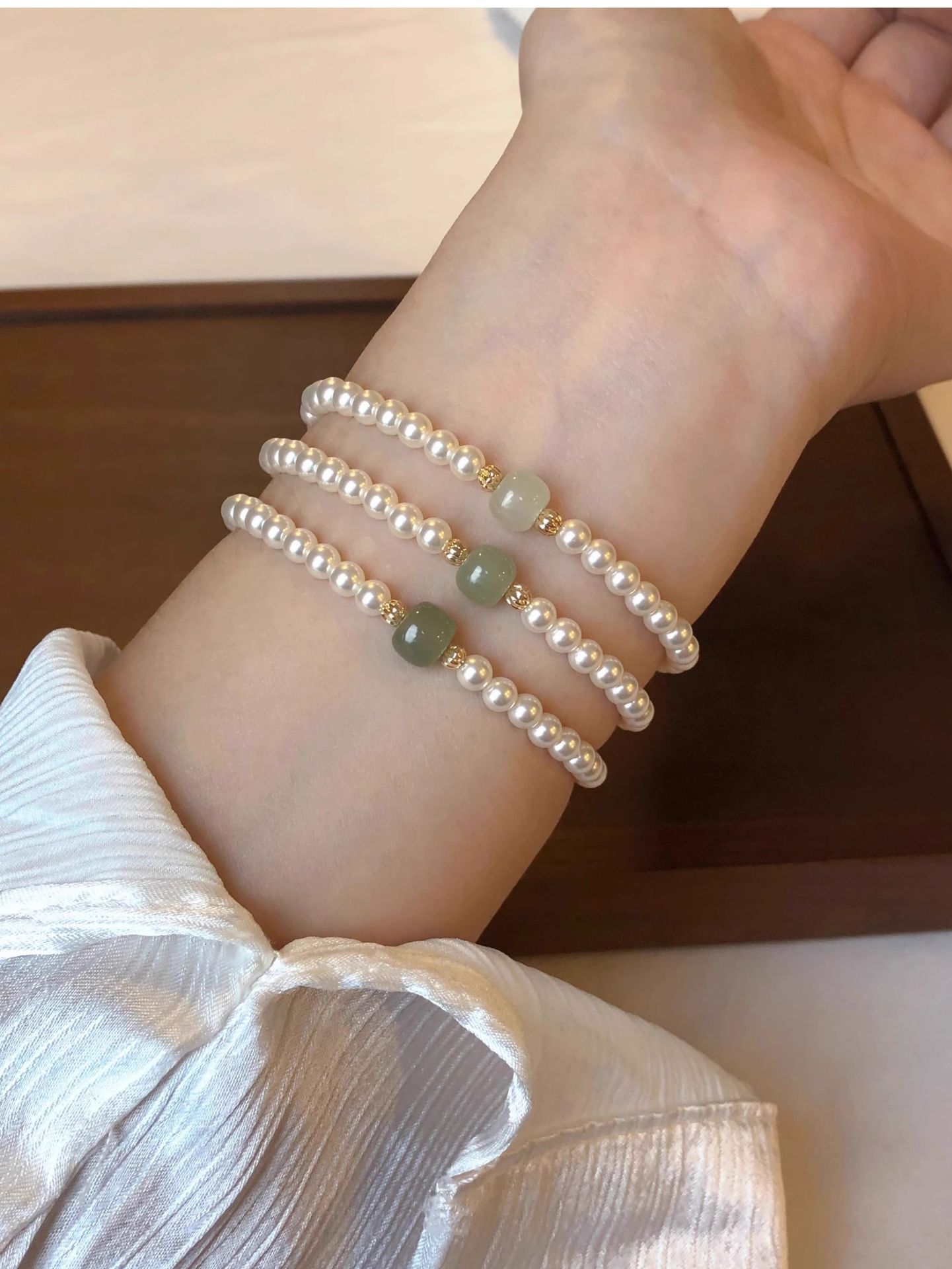新中式正圆施家珍珠晴水和田玉手链女高级感轻奢国风小众设计手串