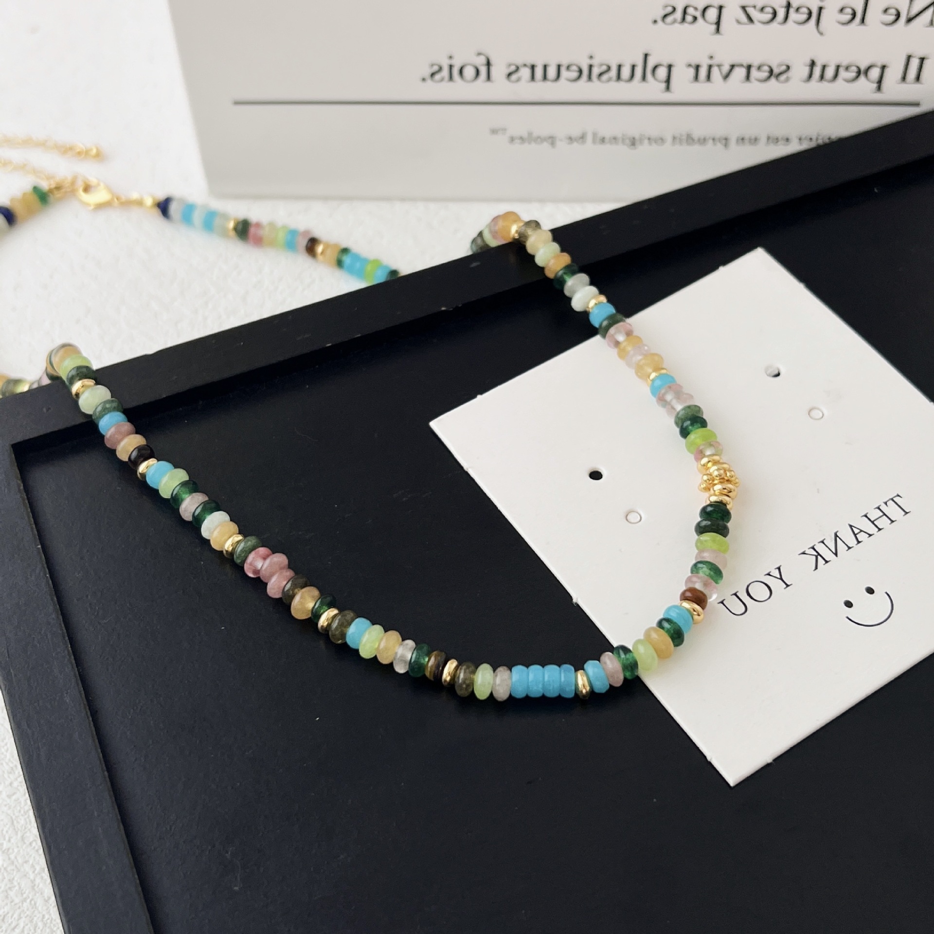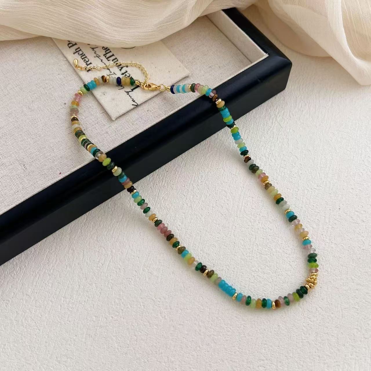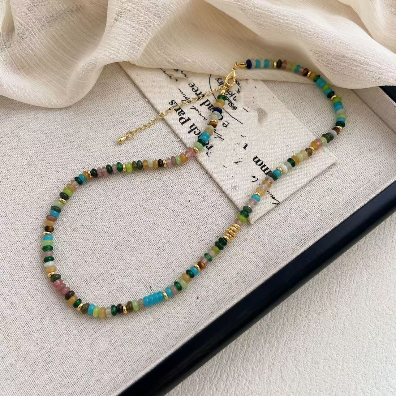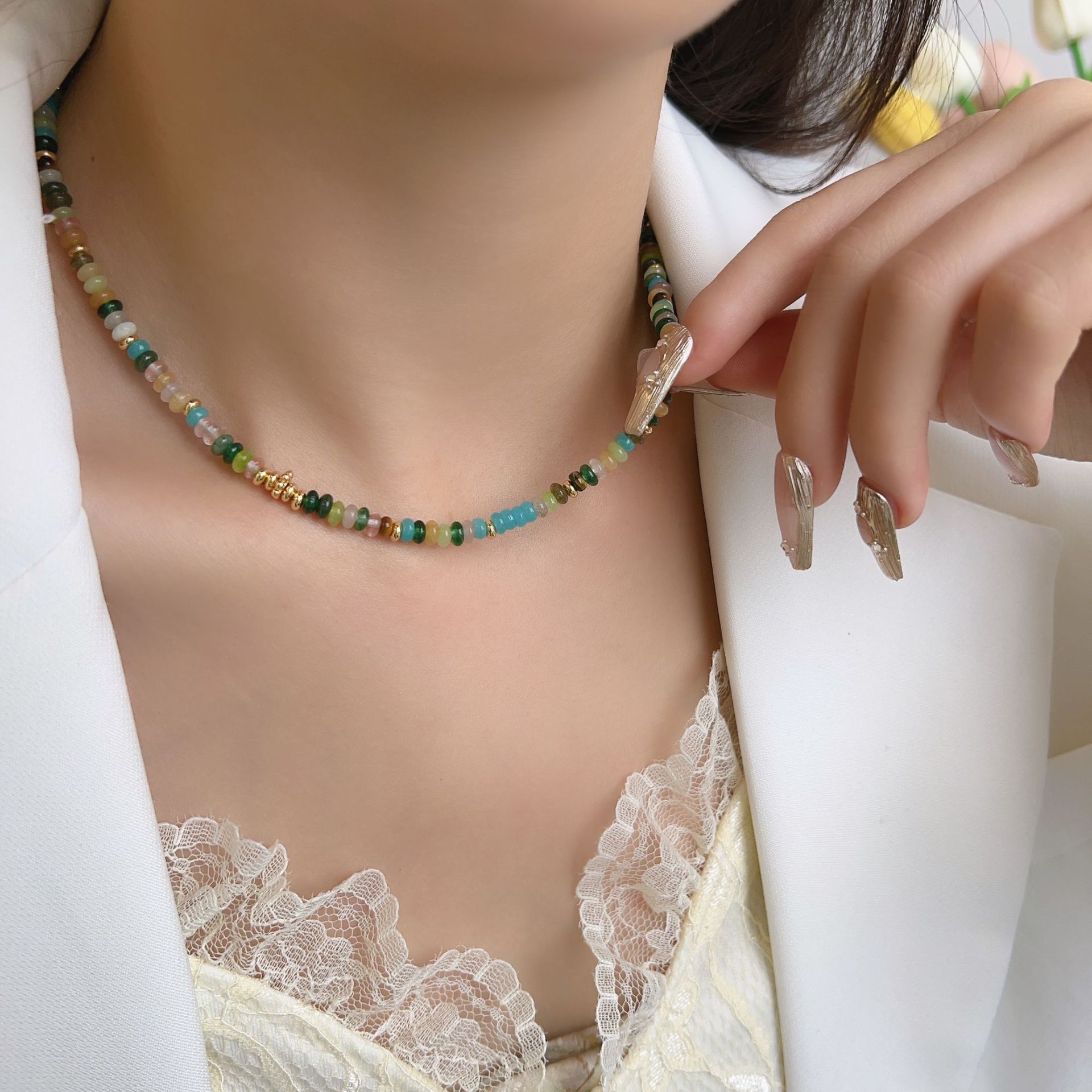 彩色天然石项链 轻奢小众新款串珠彩虹守护锁骨链 多巴胺颈链女