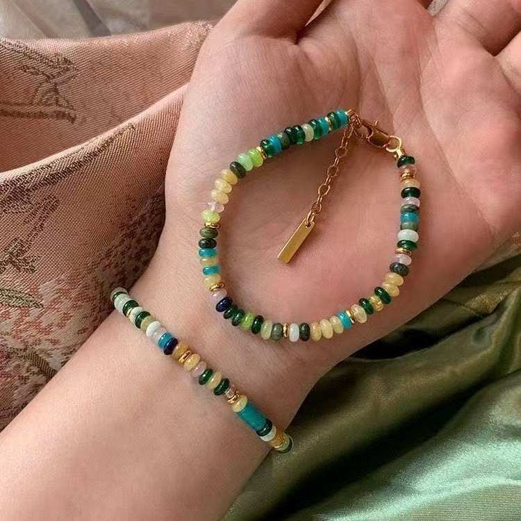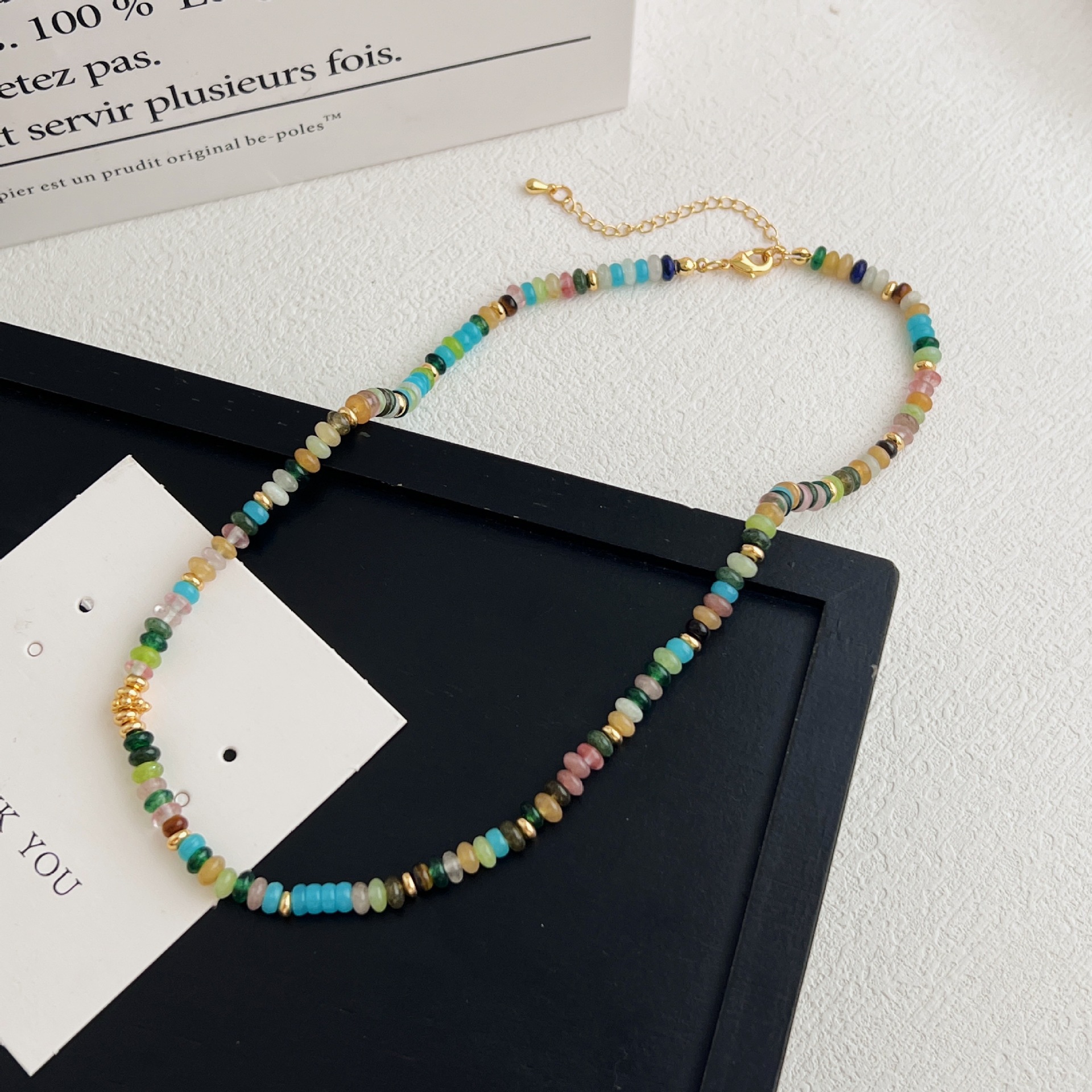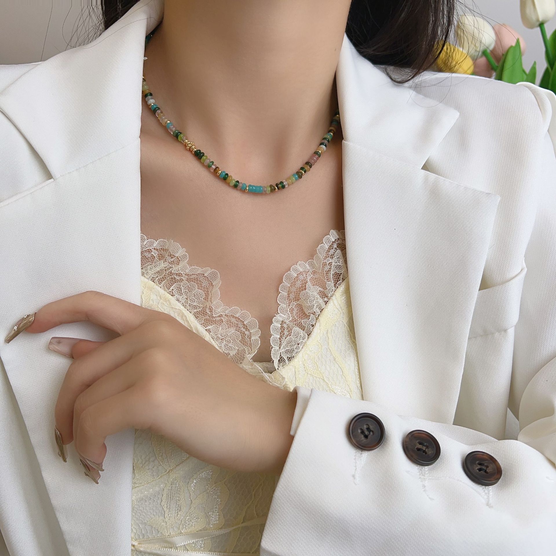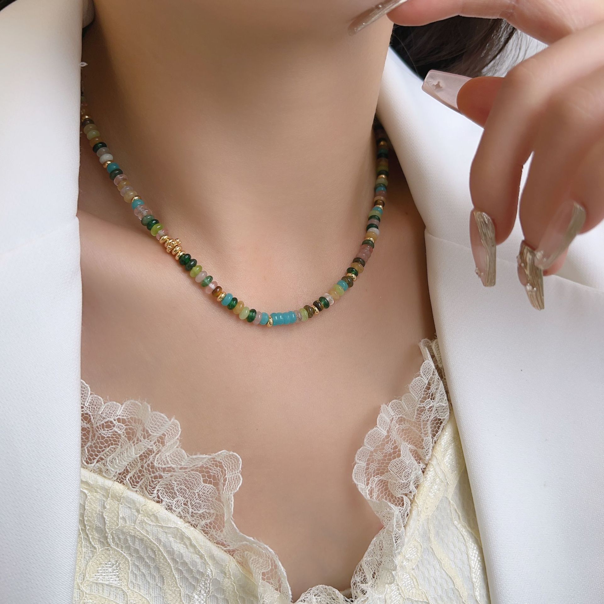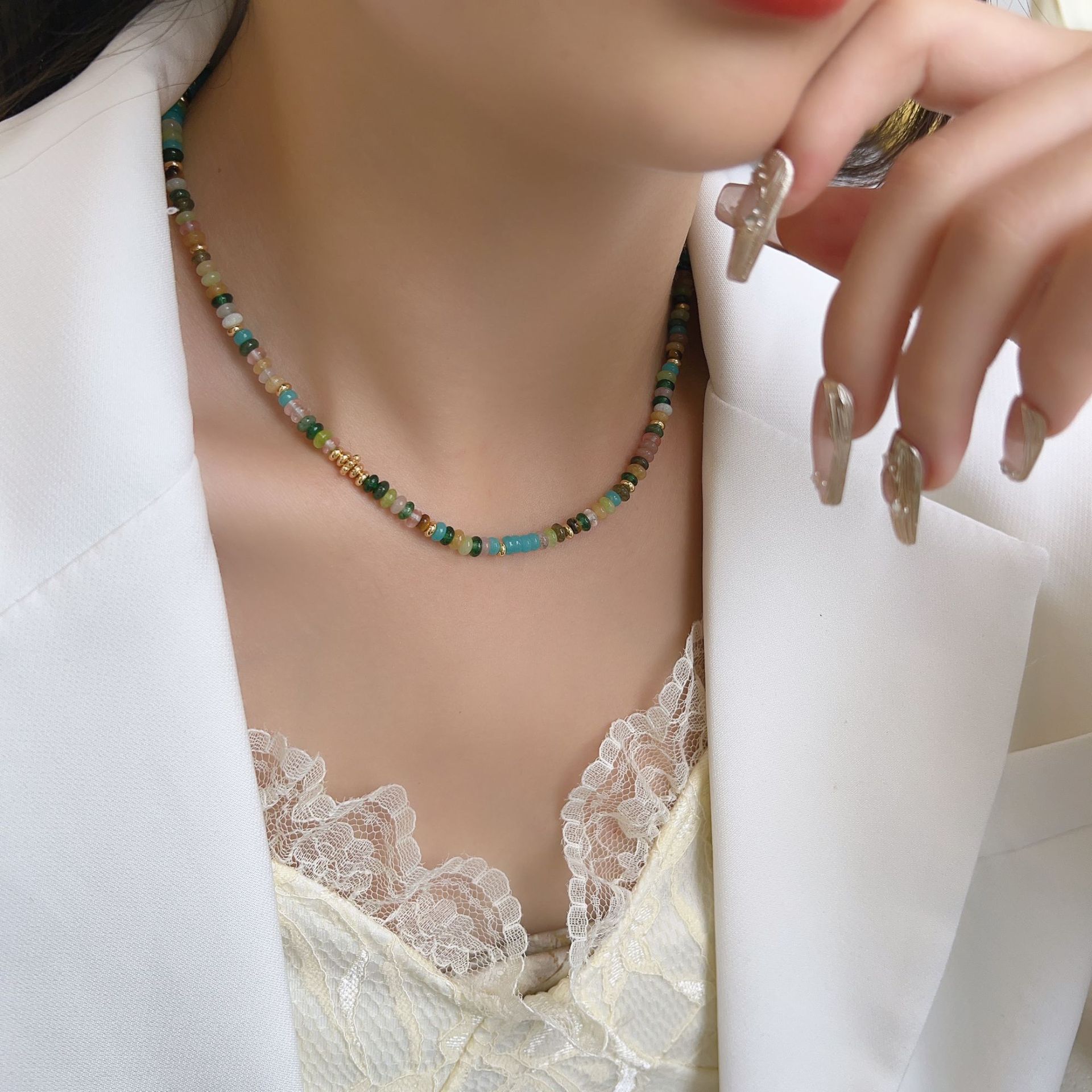 彩色天然石项链 轻奢小众新款串珠彩虹守护锁骨链 多巴胺颈链女