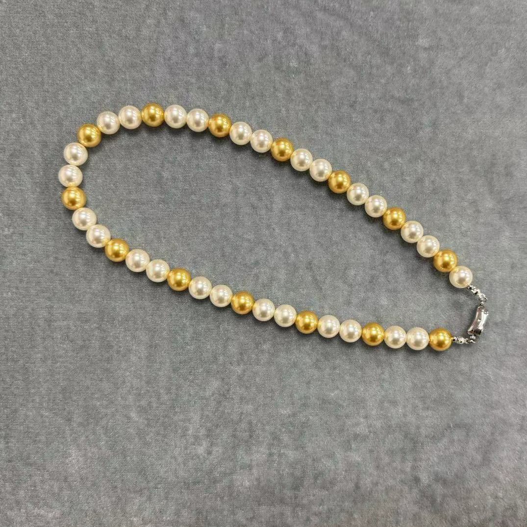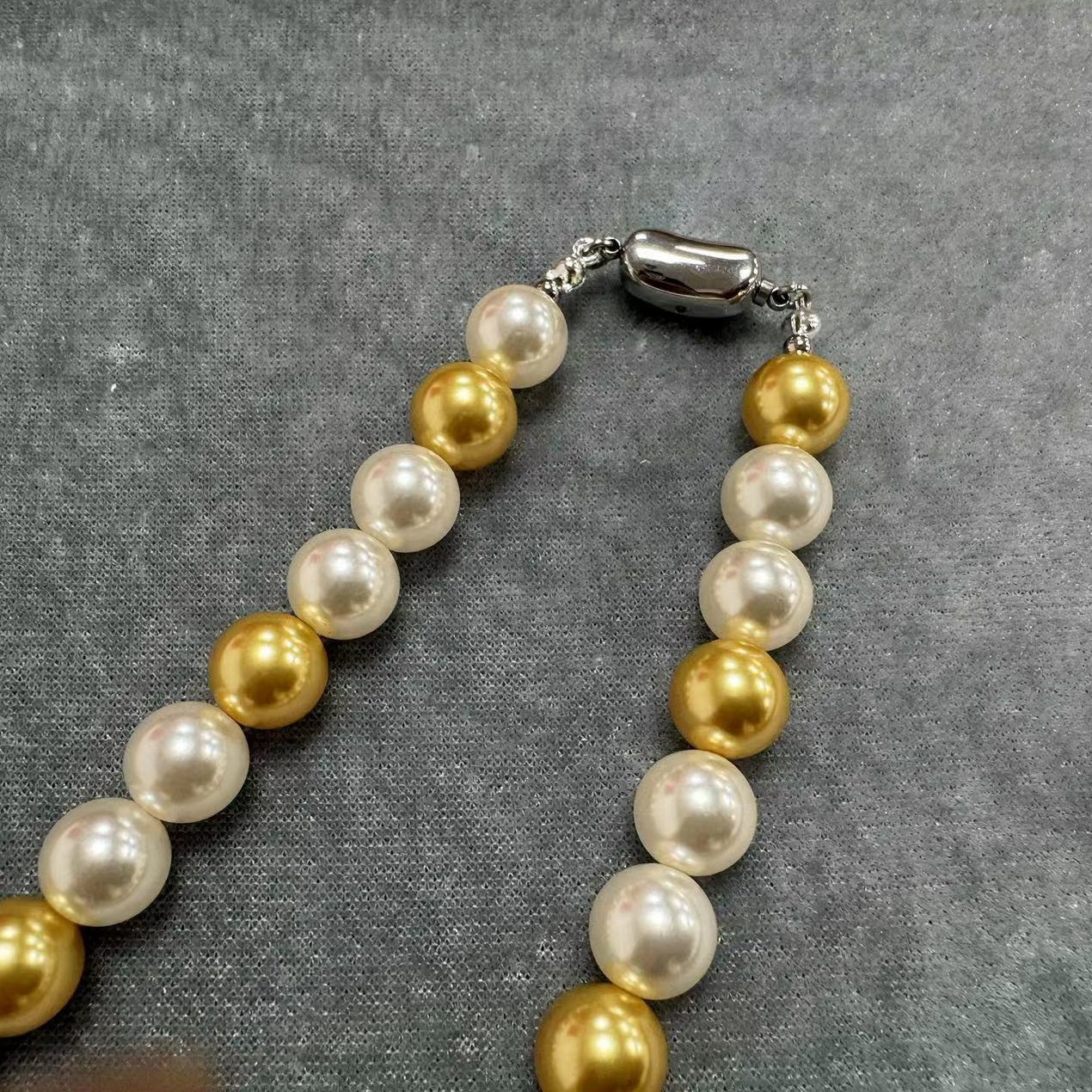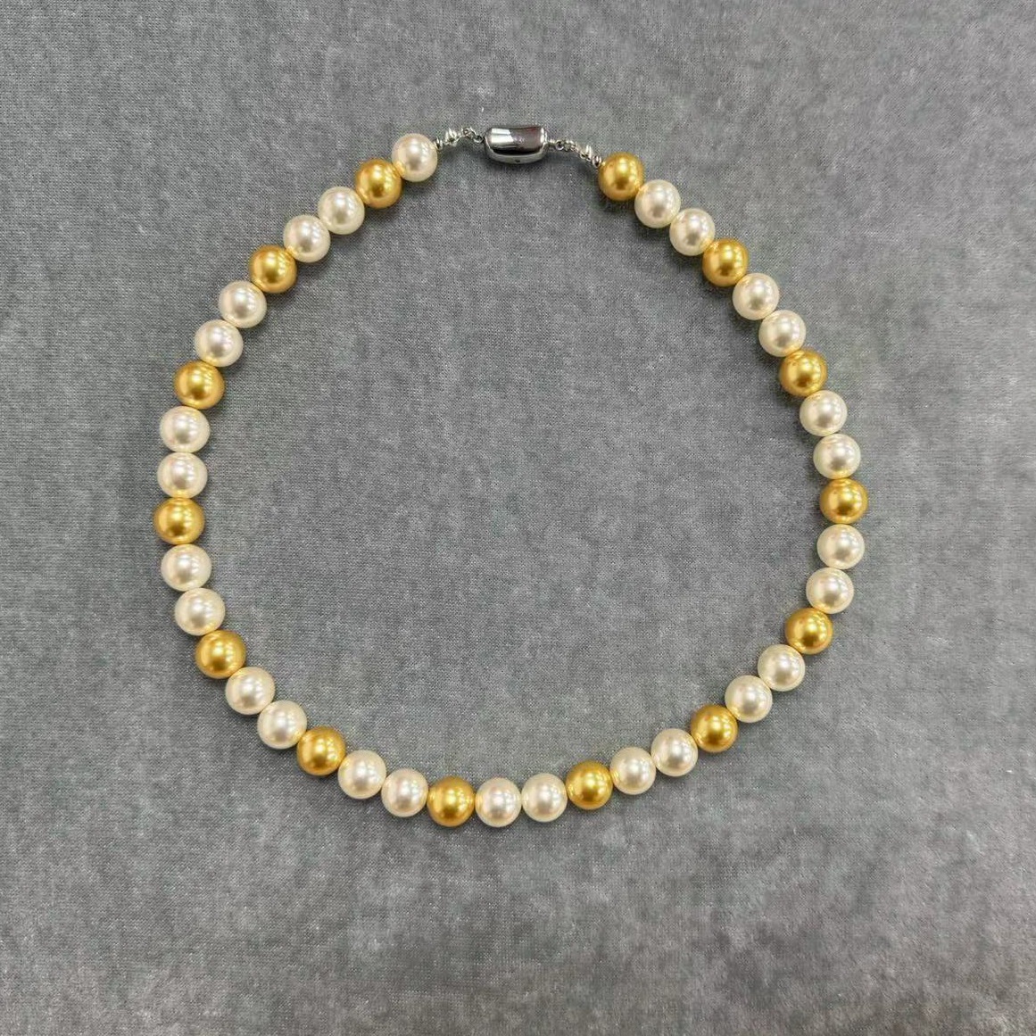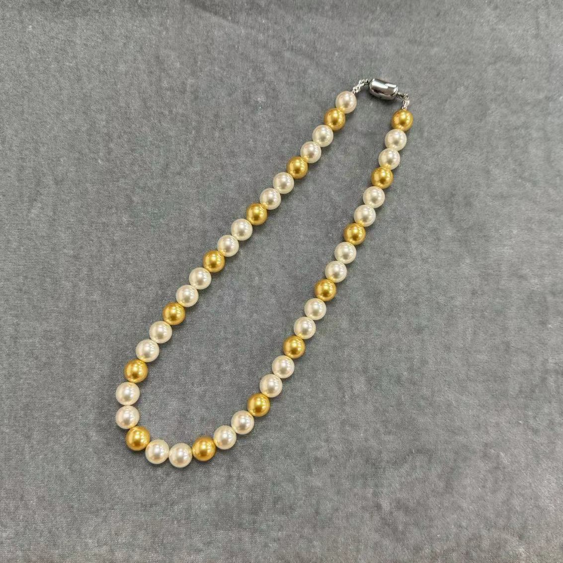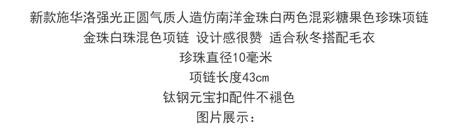 施华洛强光正圆人造仿南洋金珠白两色元宝扣款混彩糖果色珍珠项链