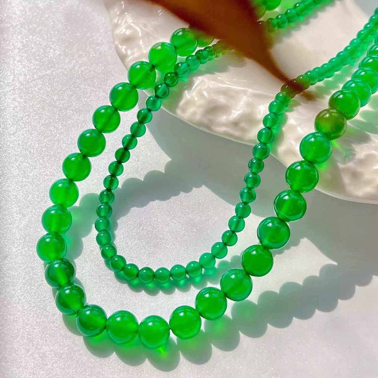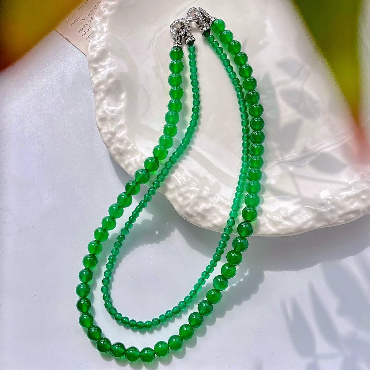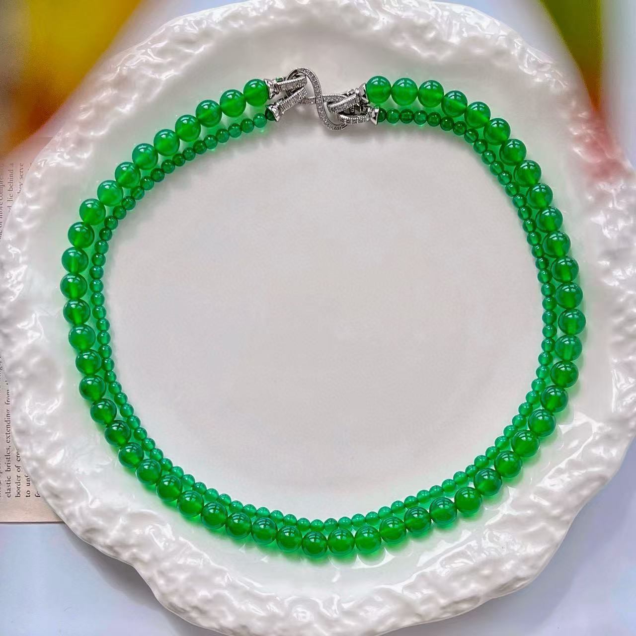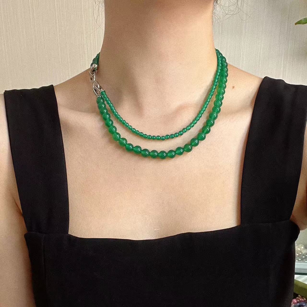复古高品质玻璃体帝王绿天然绿玉髓玛瑙设计可拆卸感锁骨链项链批