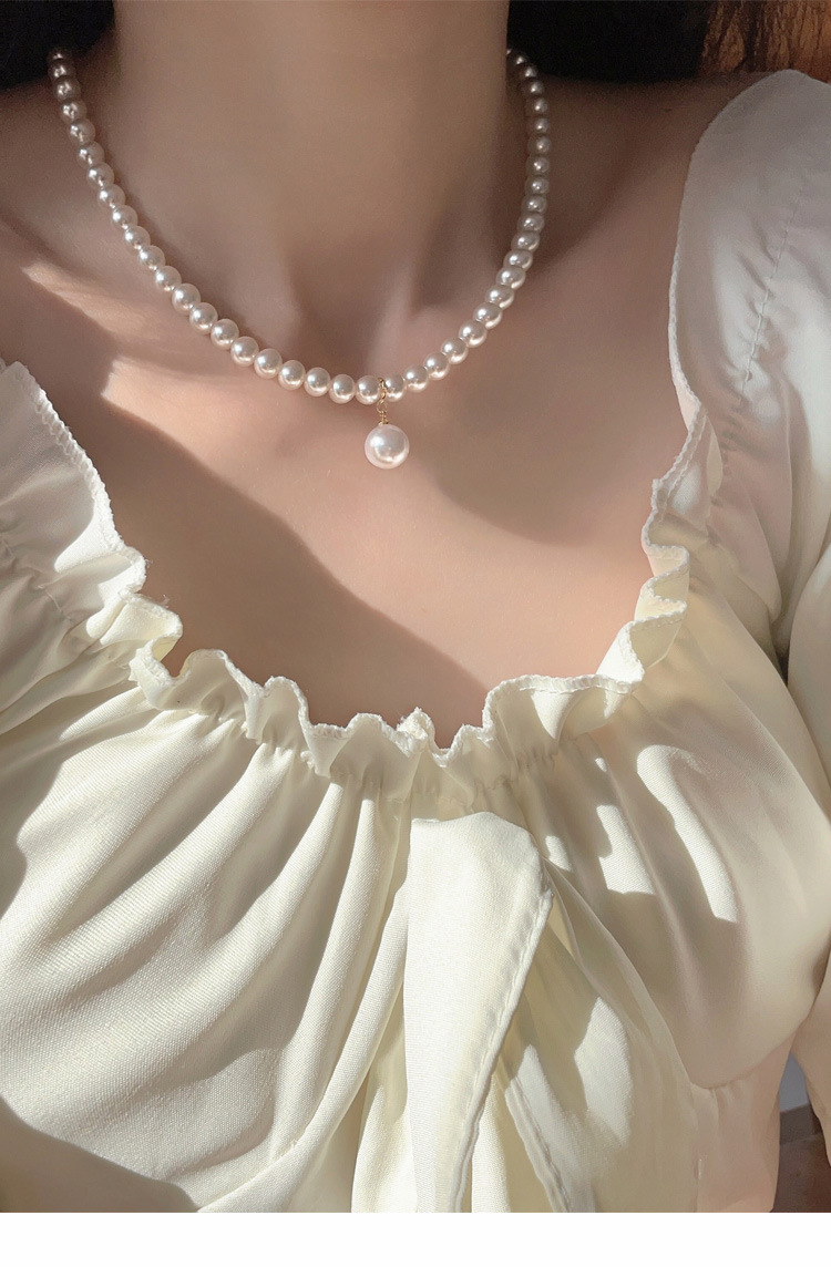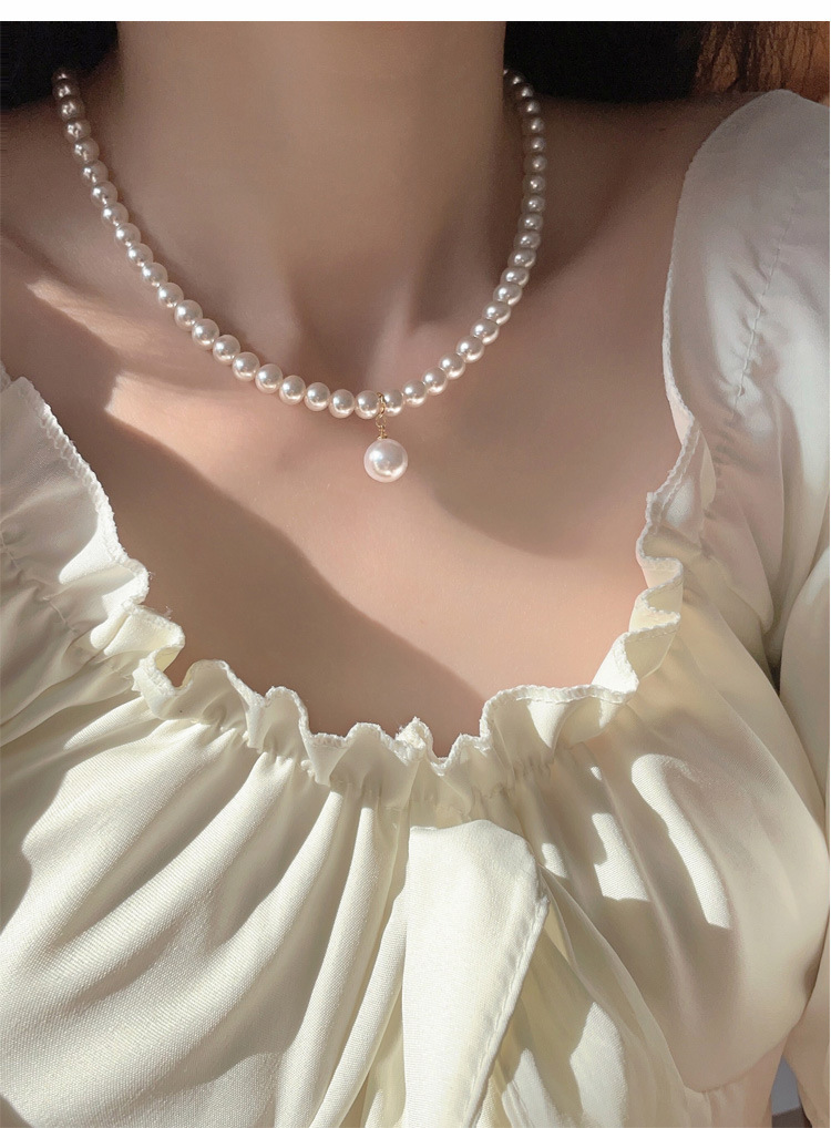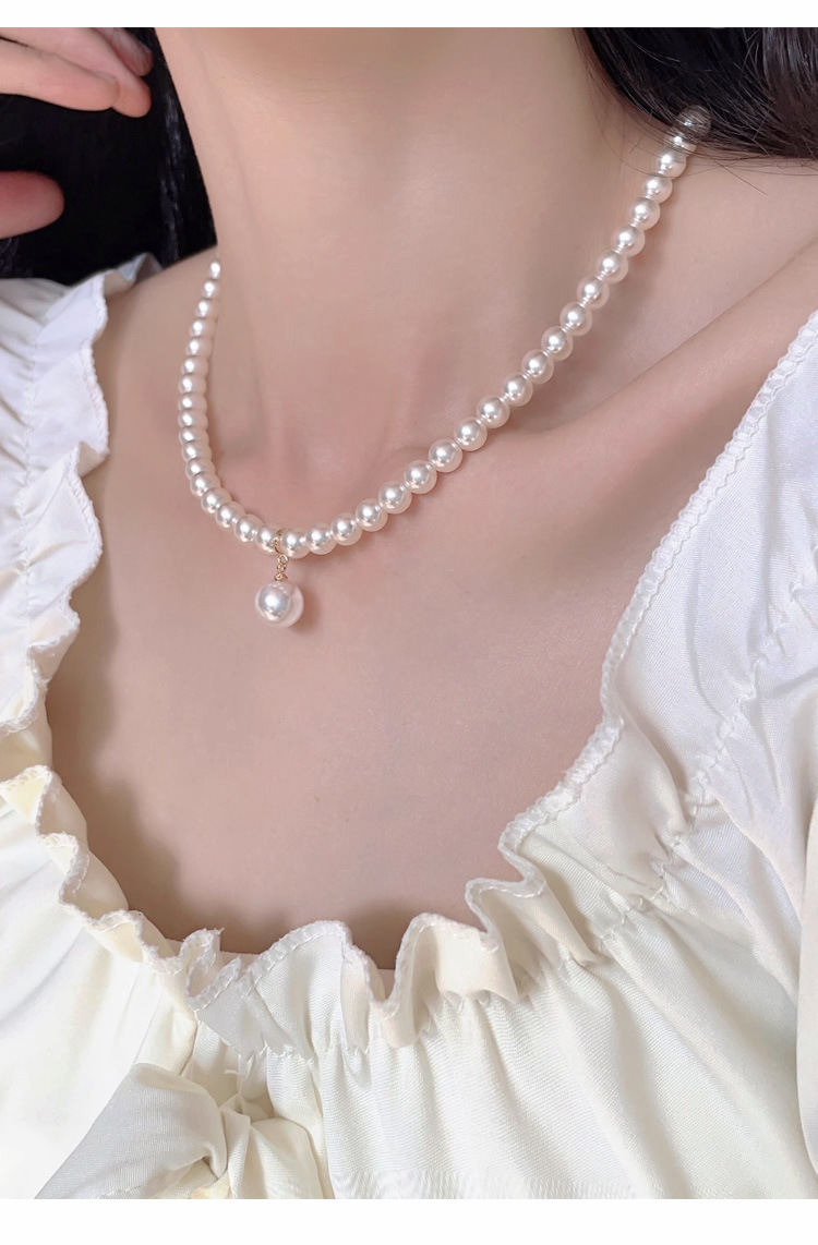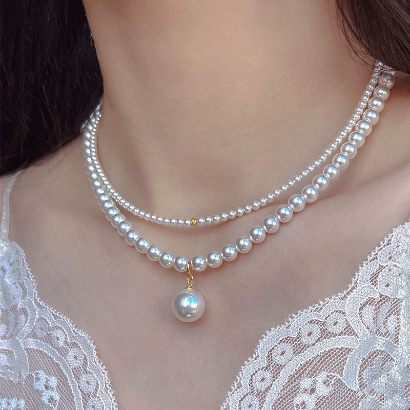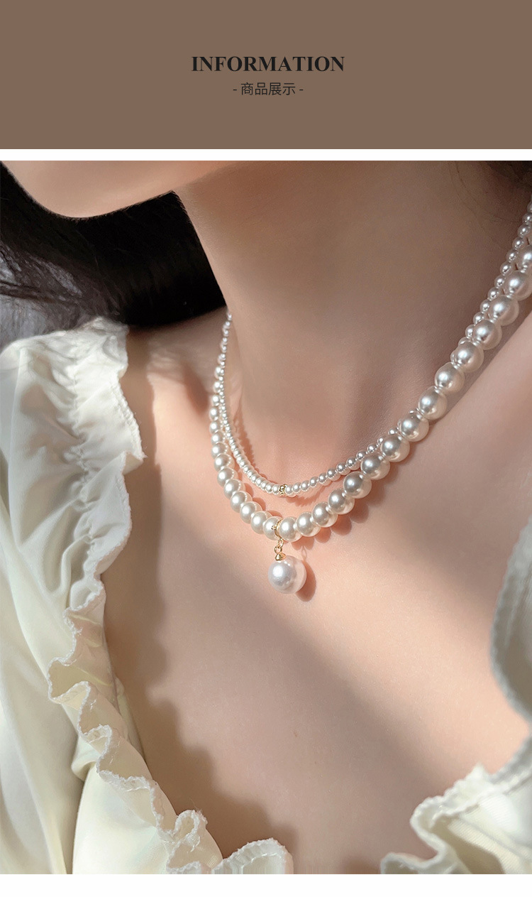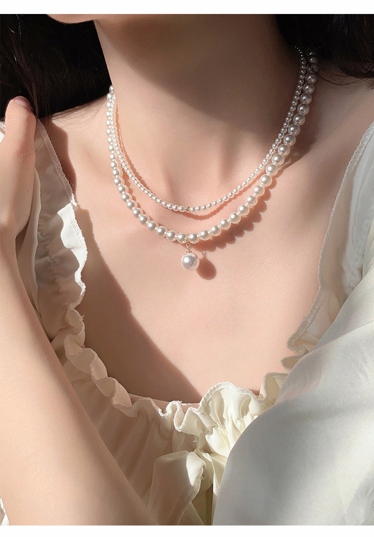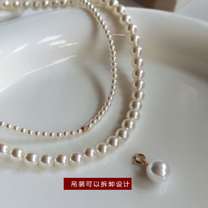 施家仿珍珠项链批发叠戴珍珠项链配饰女轻奢小众设计锁骨链