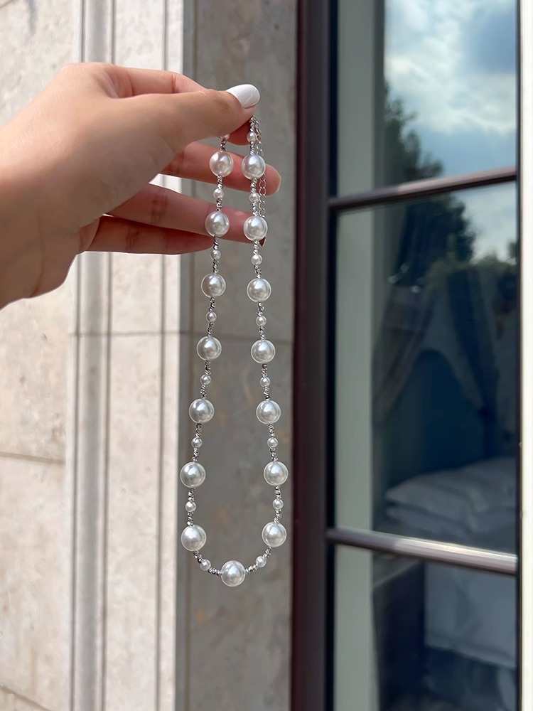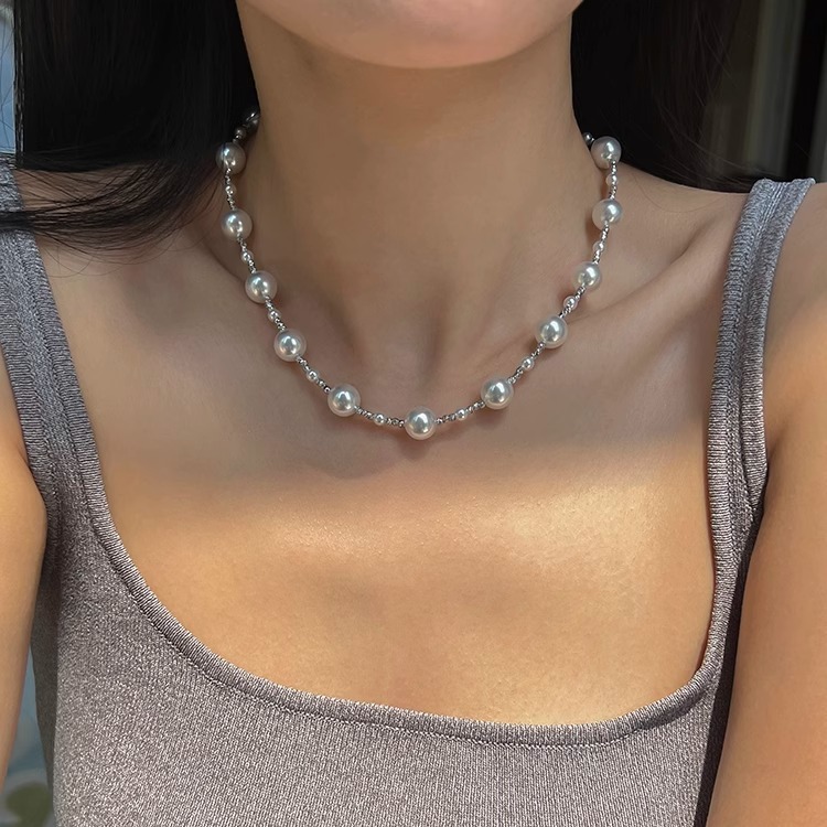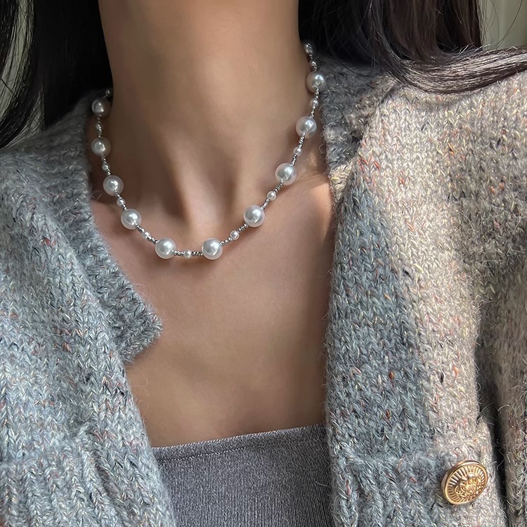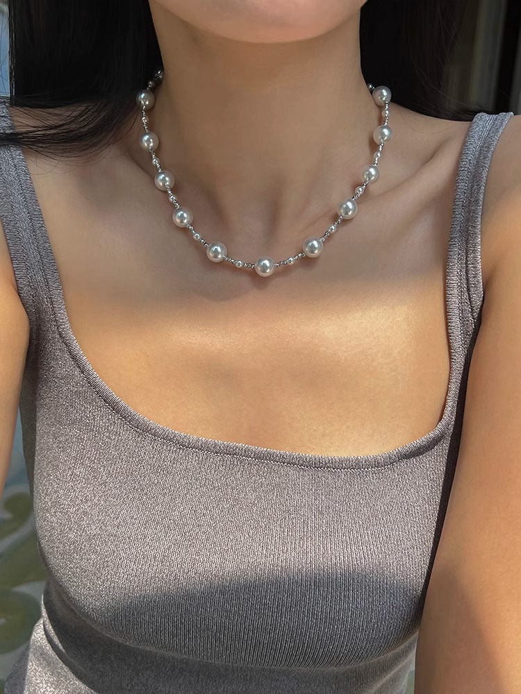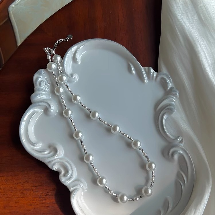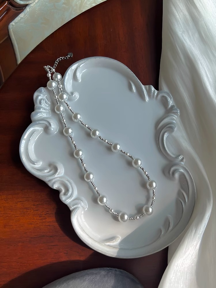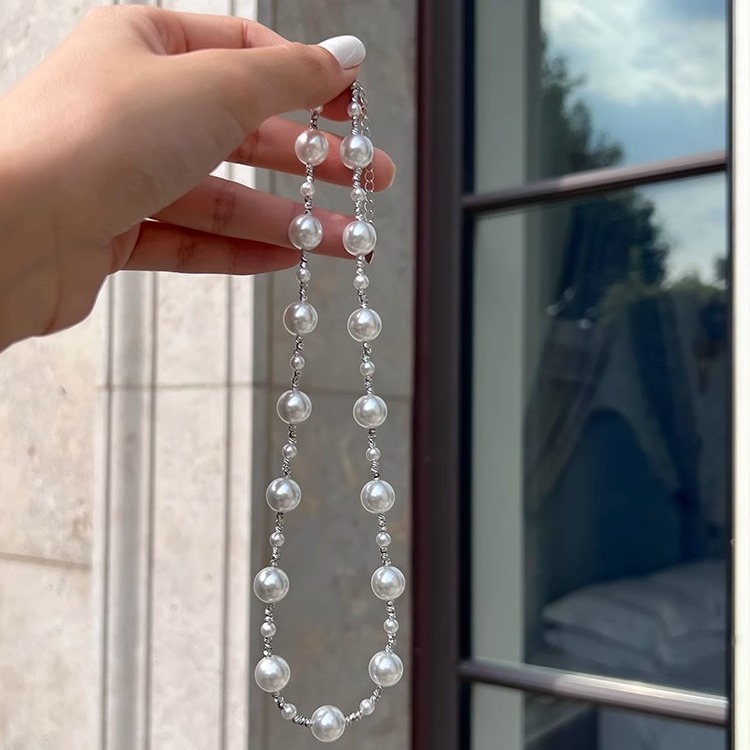 施家珍珠澳白色切花满天星珍珠项链轻奢精致饰品毛衣链女小众气质