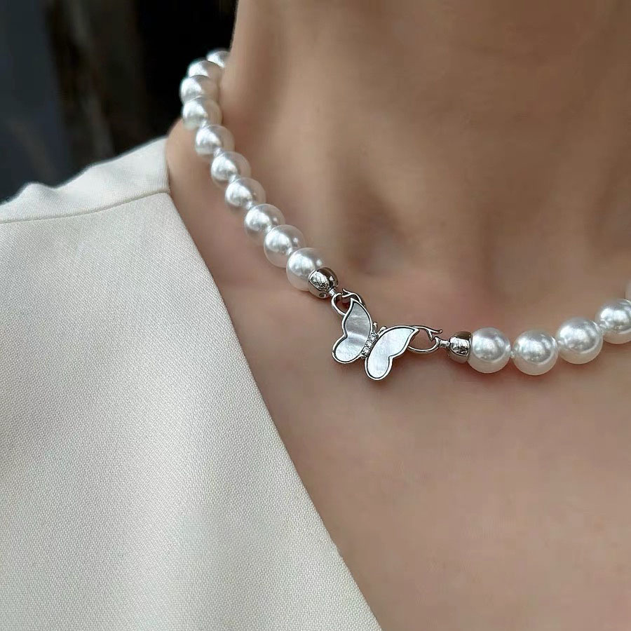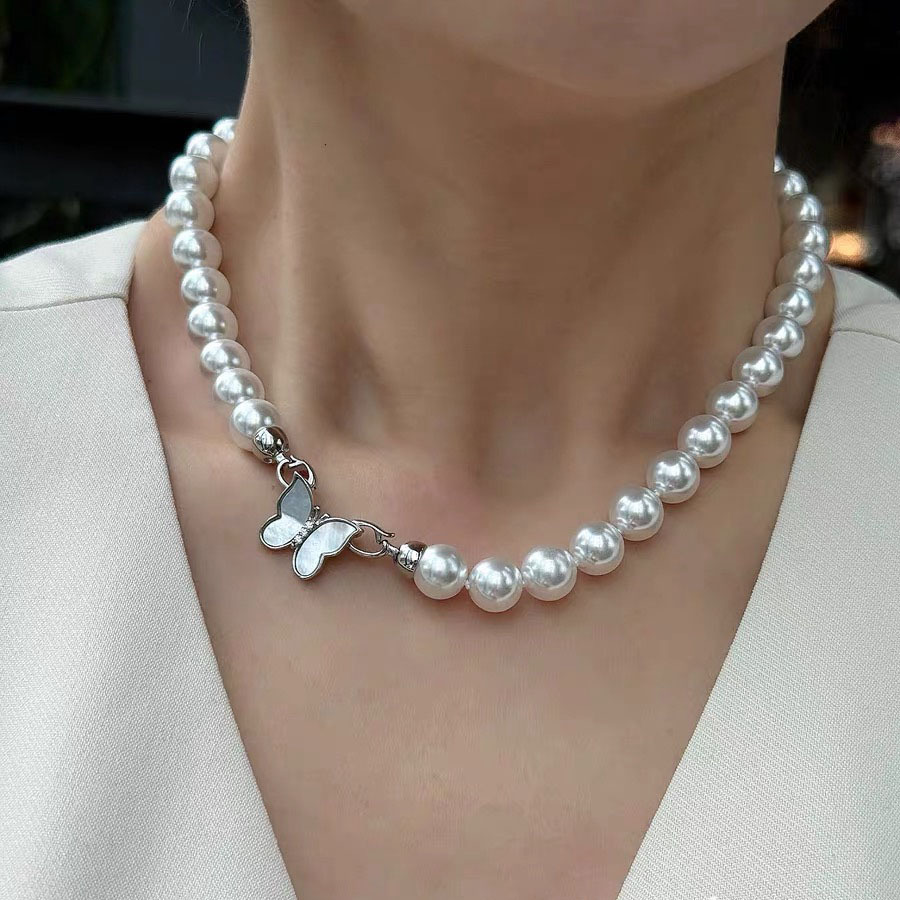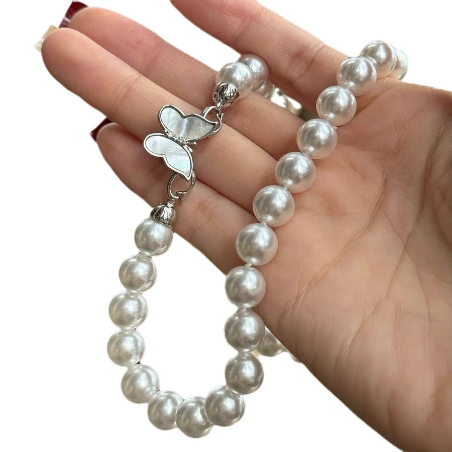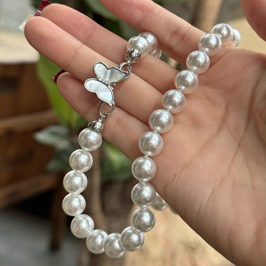 贝珠仿澳白施家珍珠项链母贝蝴蝶锁骨链施家珍珠厂家批发