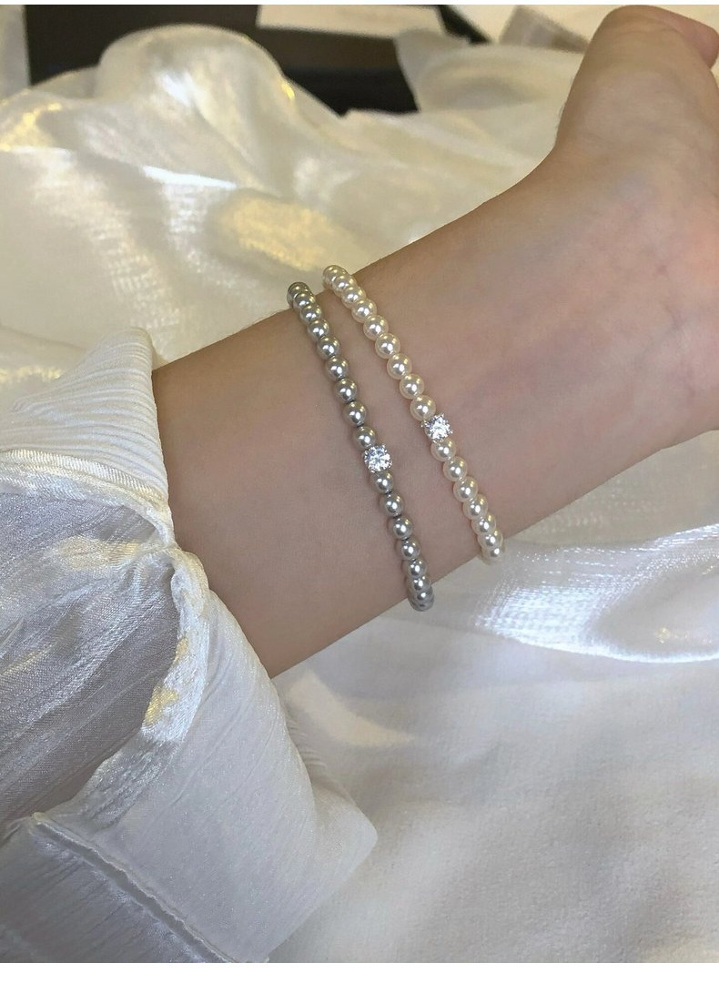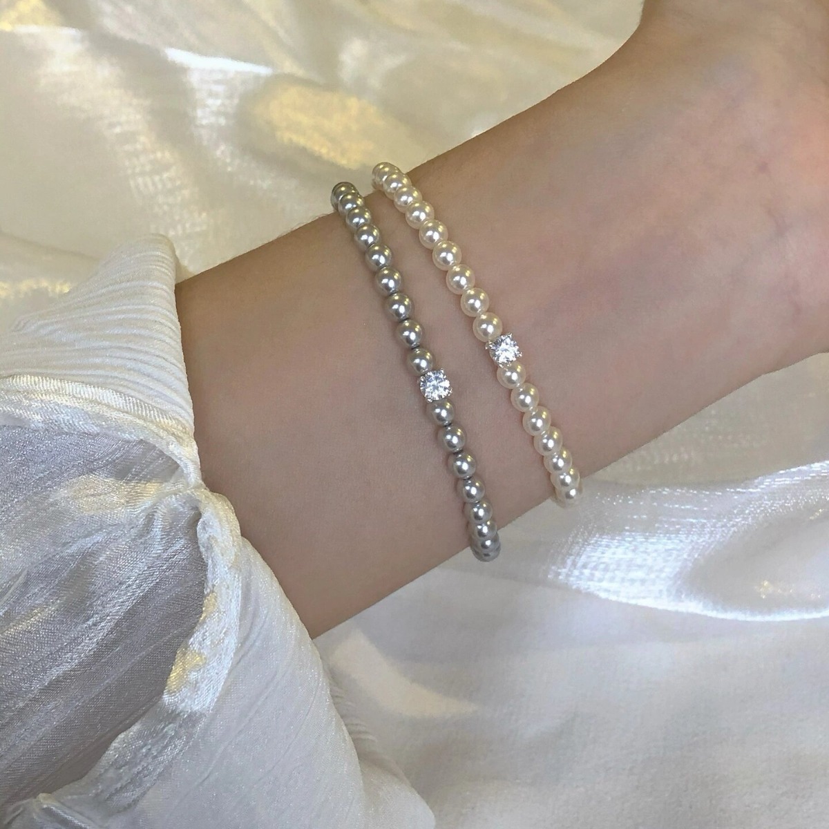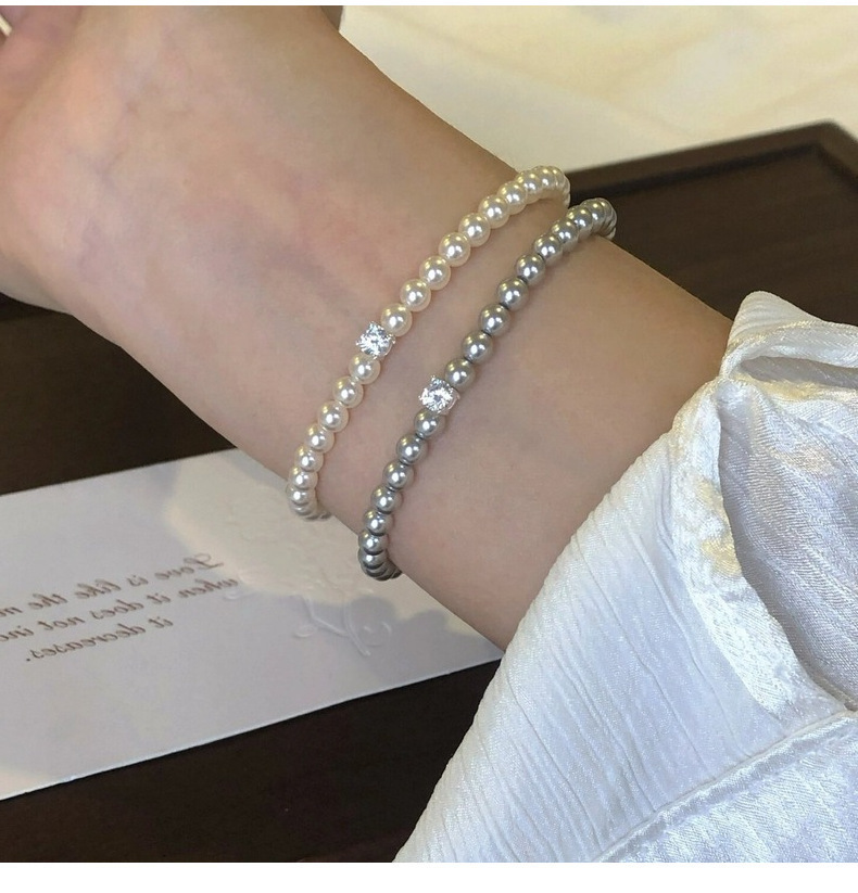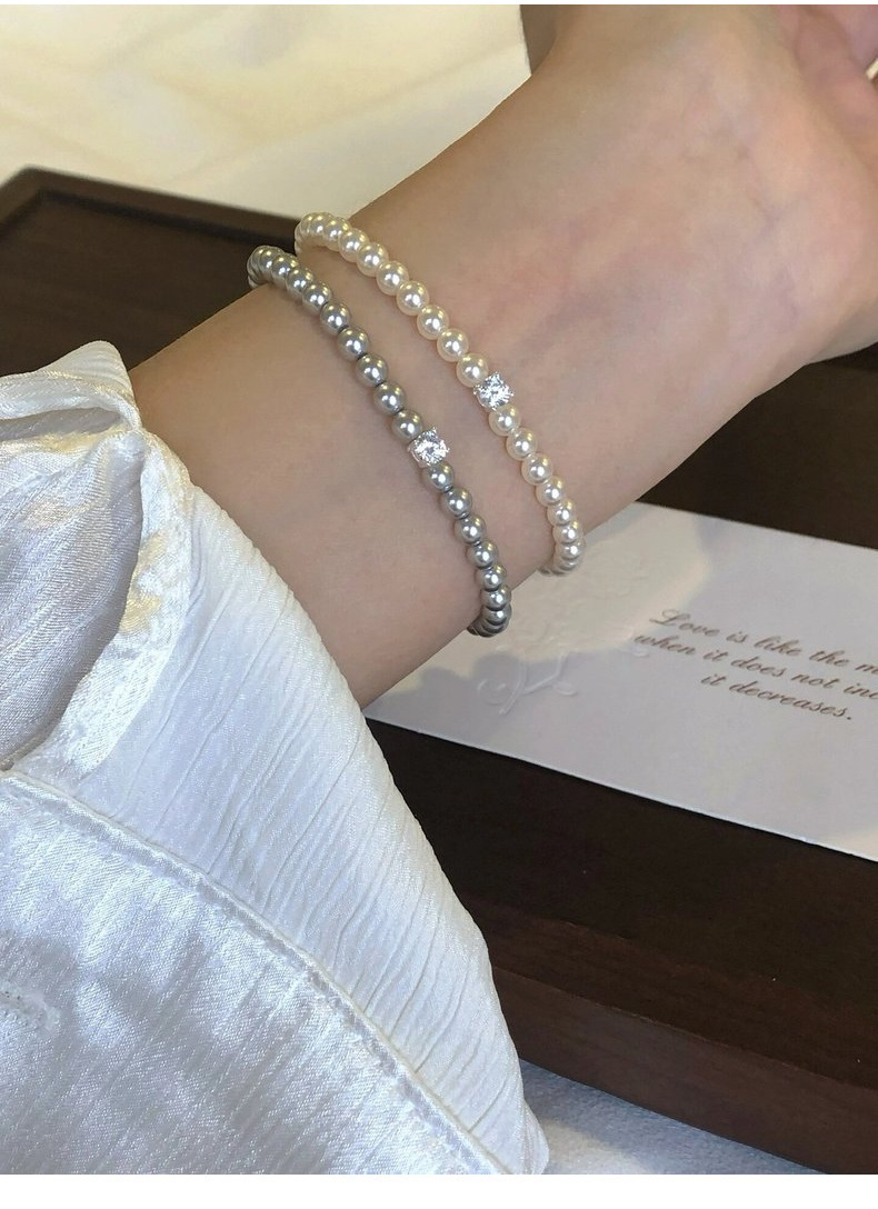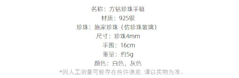 施家珍珠方钻手链时尚轻奢小众百搭ins仿珍珠手链女手串