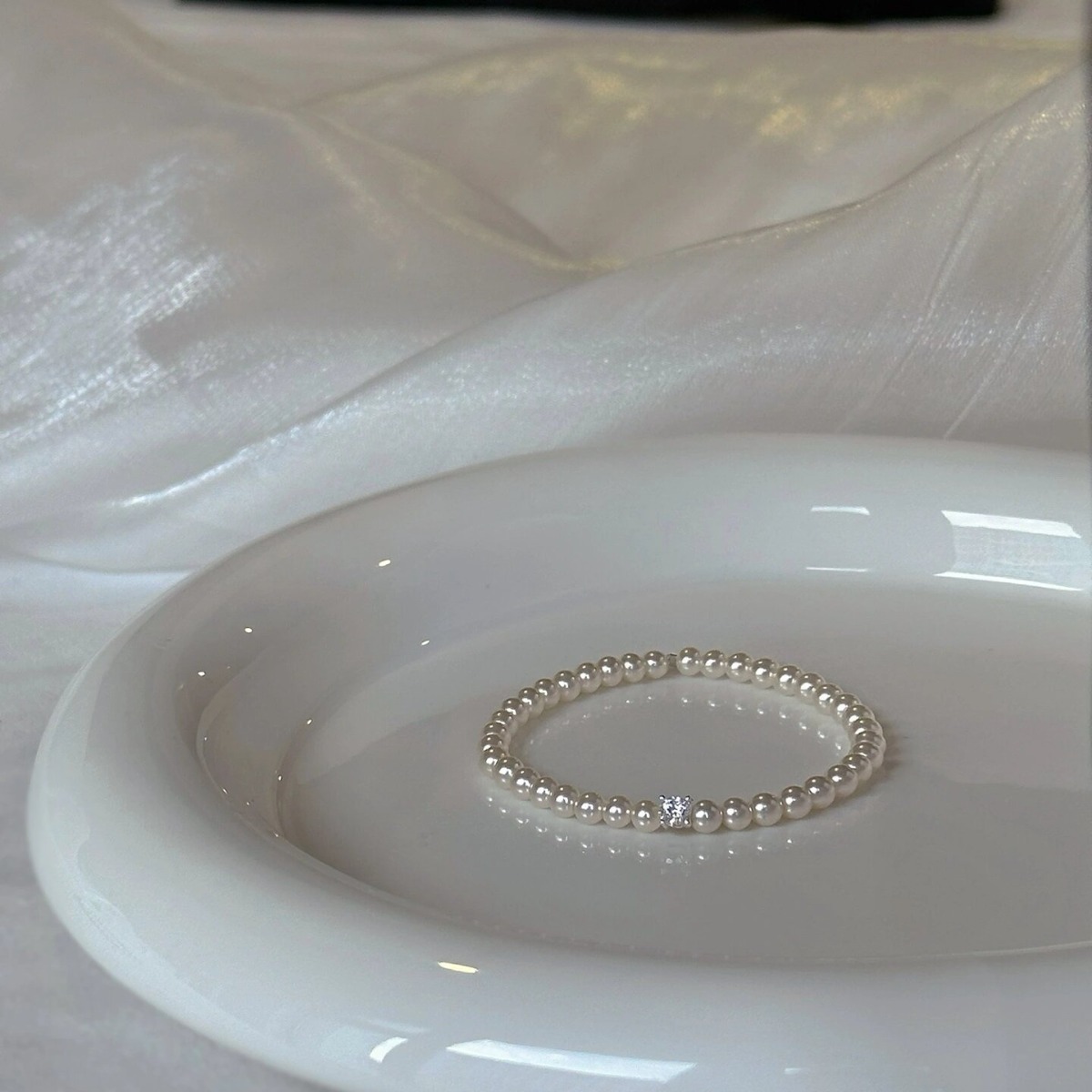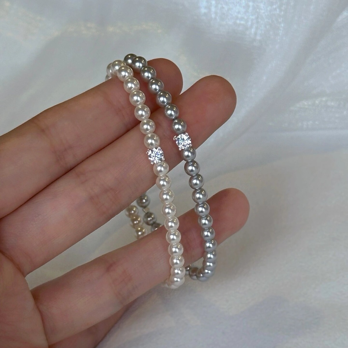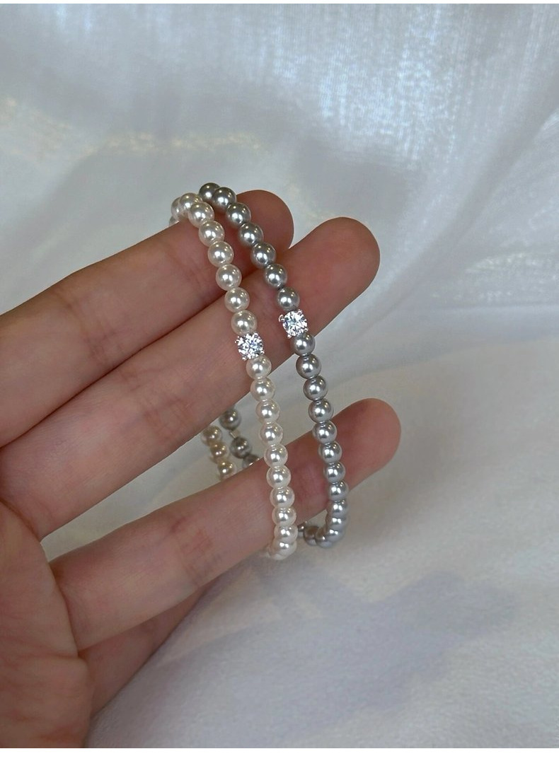 施家珍珠方钻手链时尚轻奢小众百搭ins仿珍珠手链女手串