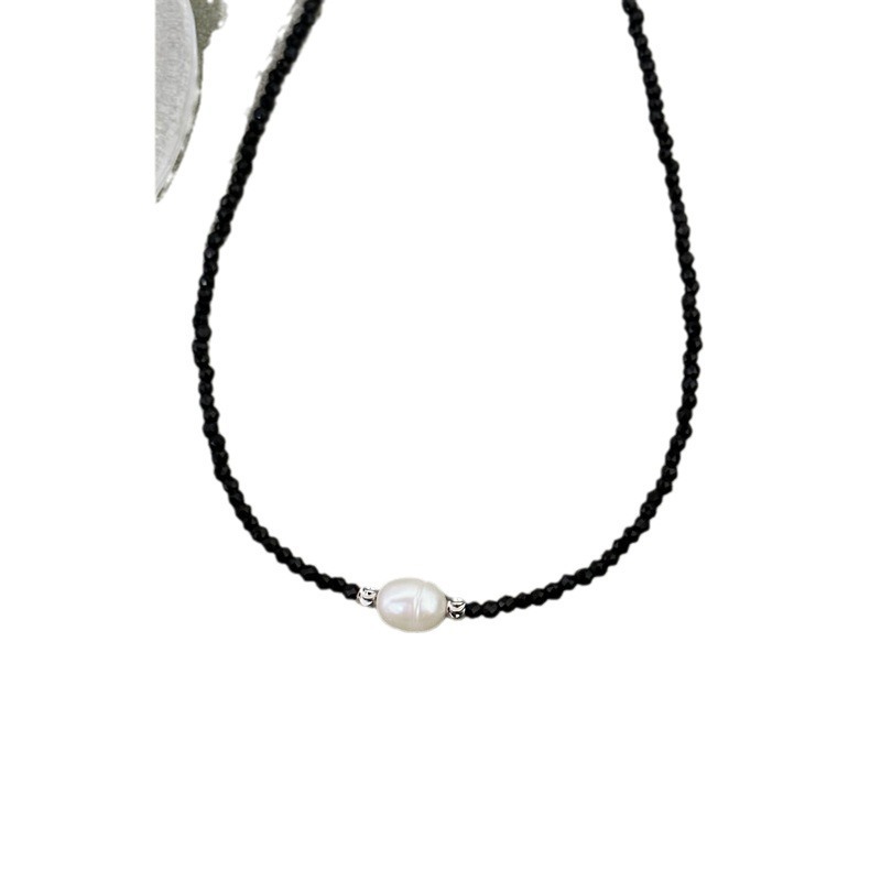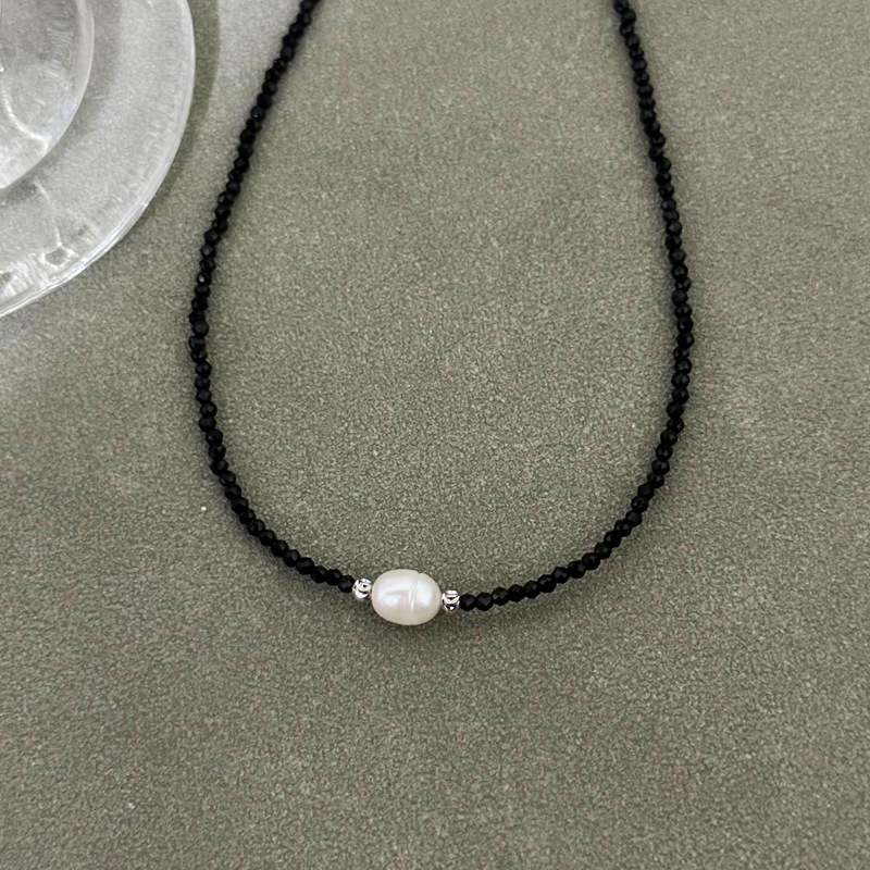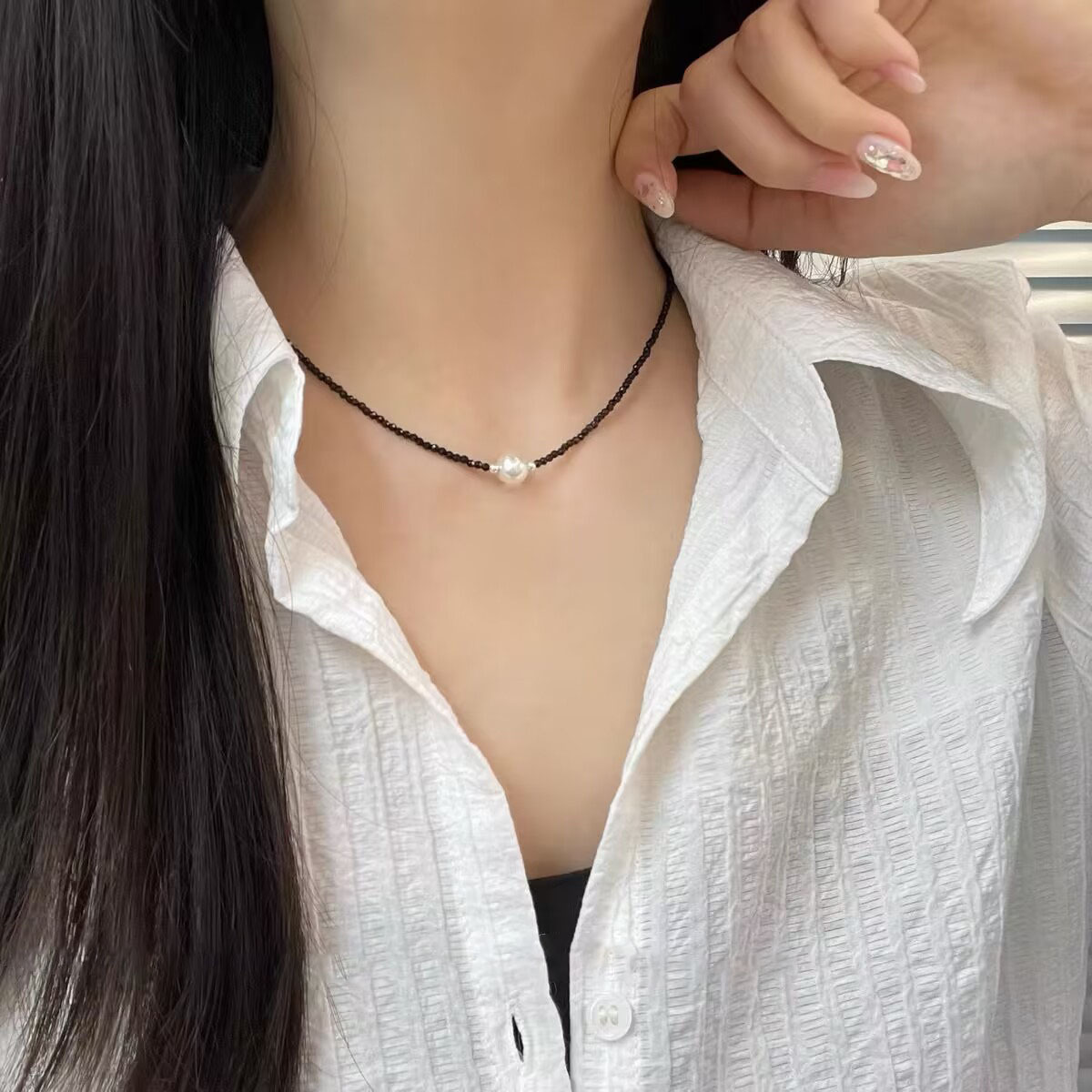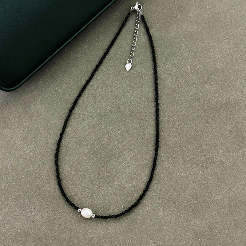 不褪色不过敏钛钢黑色水晶石S家珍珠项链厂家批发颈链跨境饰品