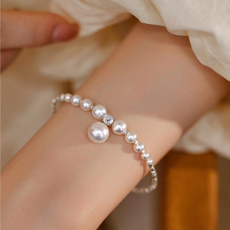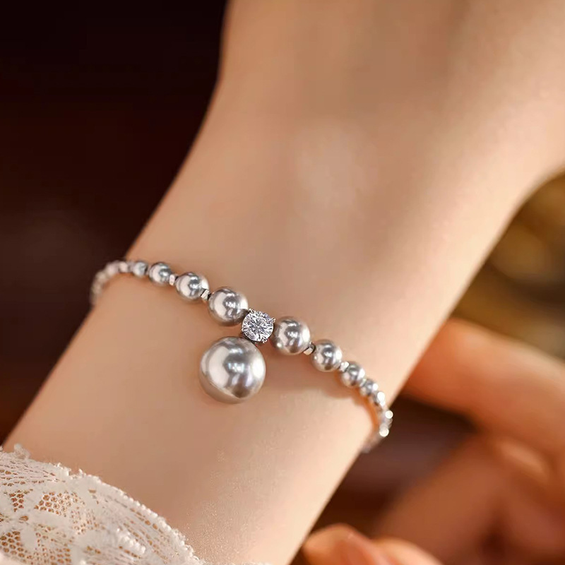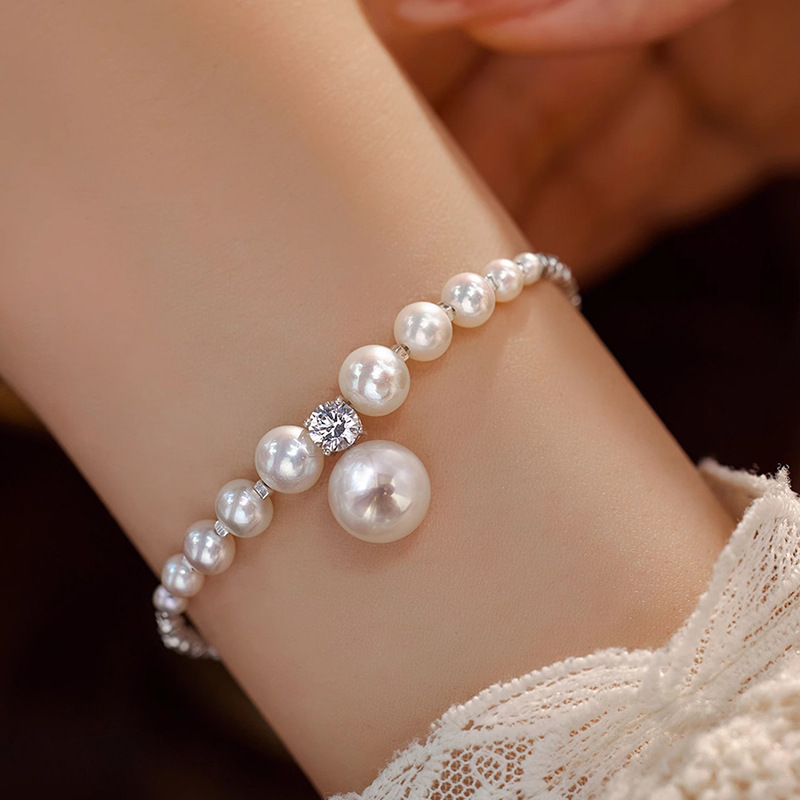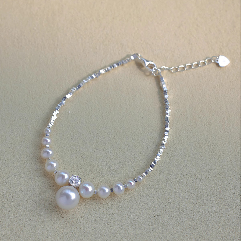 施家渐变错珍珠碎银子强光珍珠碎银手链女小众设计感轻奢手环