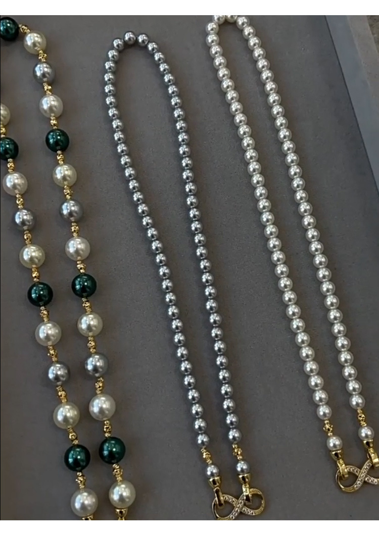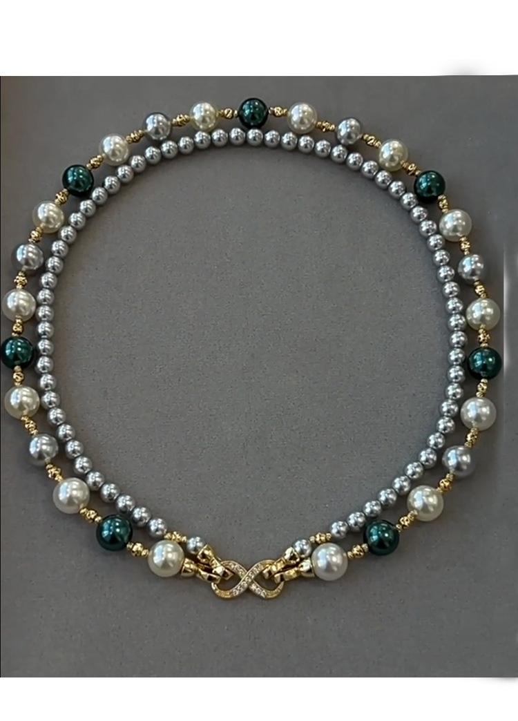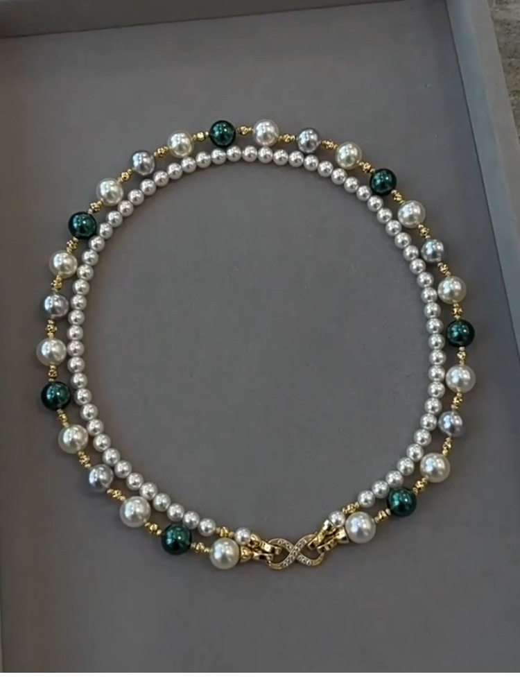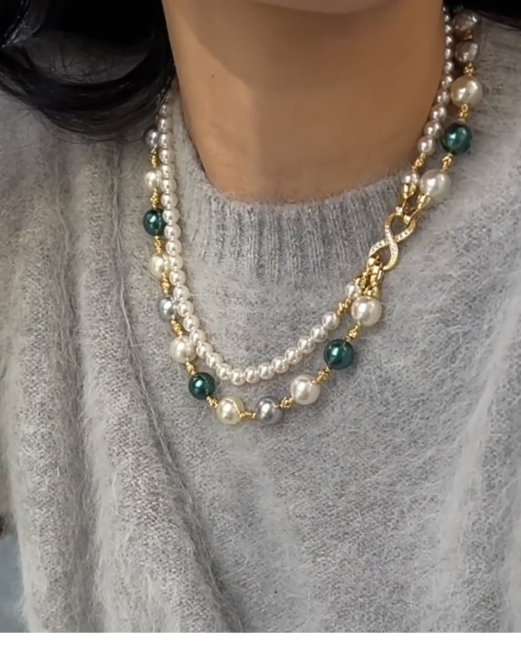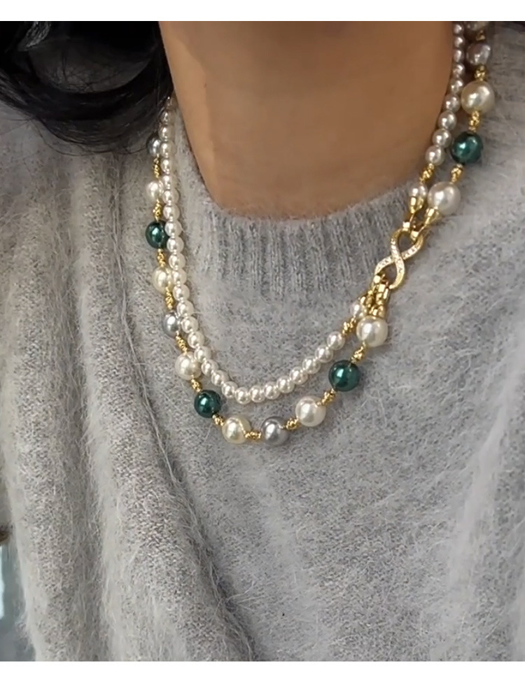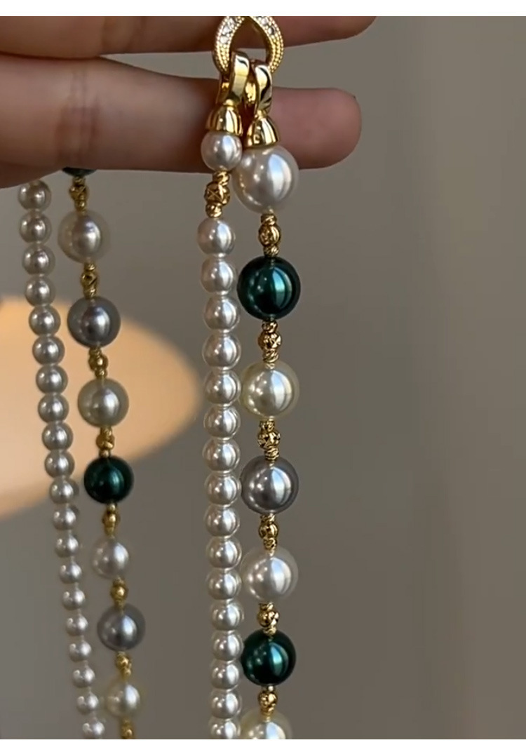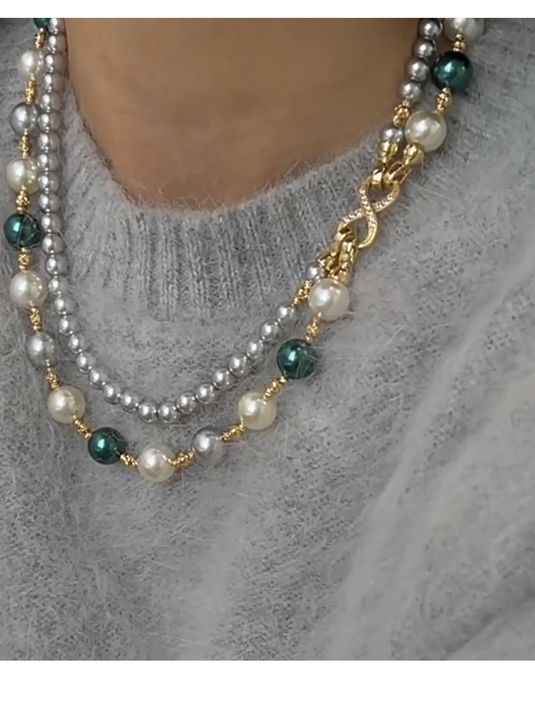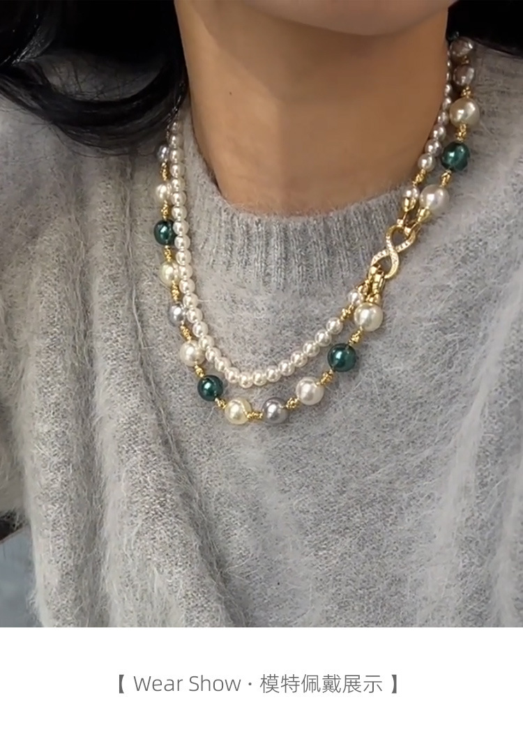 双层秋冬混彩施家珍珠麻花扣项链女轻奢感小众气质网红毛衣链