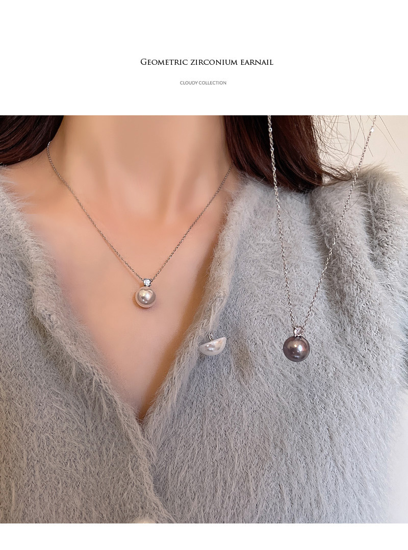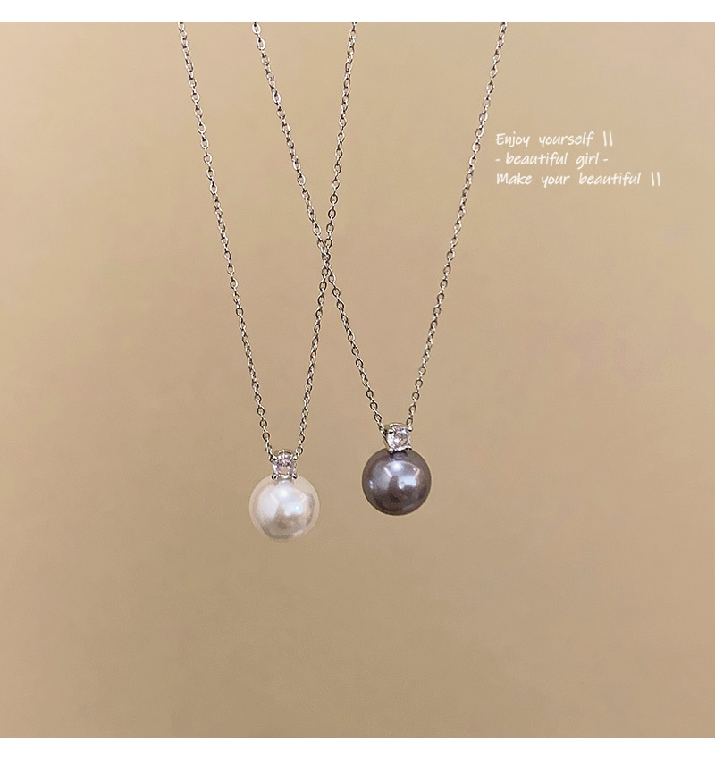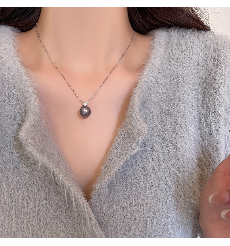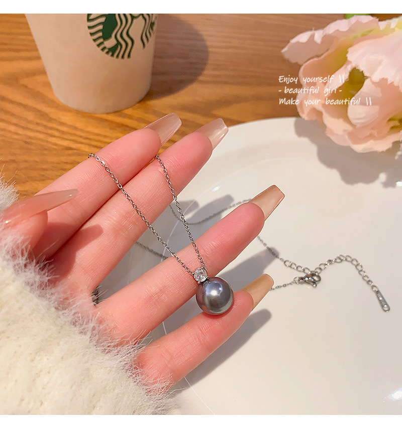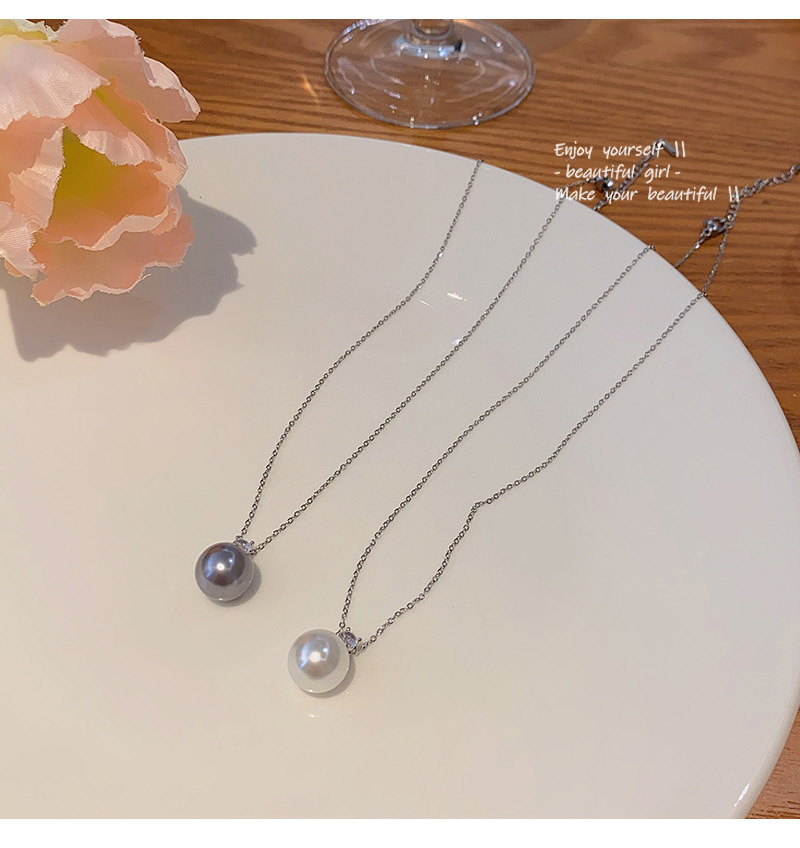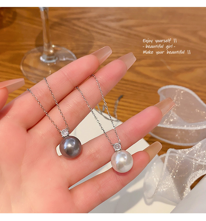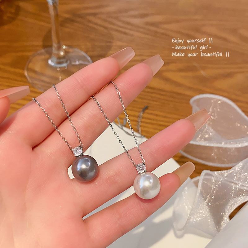 单颗灰珍珠项链女轻奢小众简约冷淡风锆石锁骨链百搭气质网红颈链