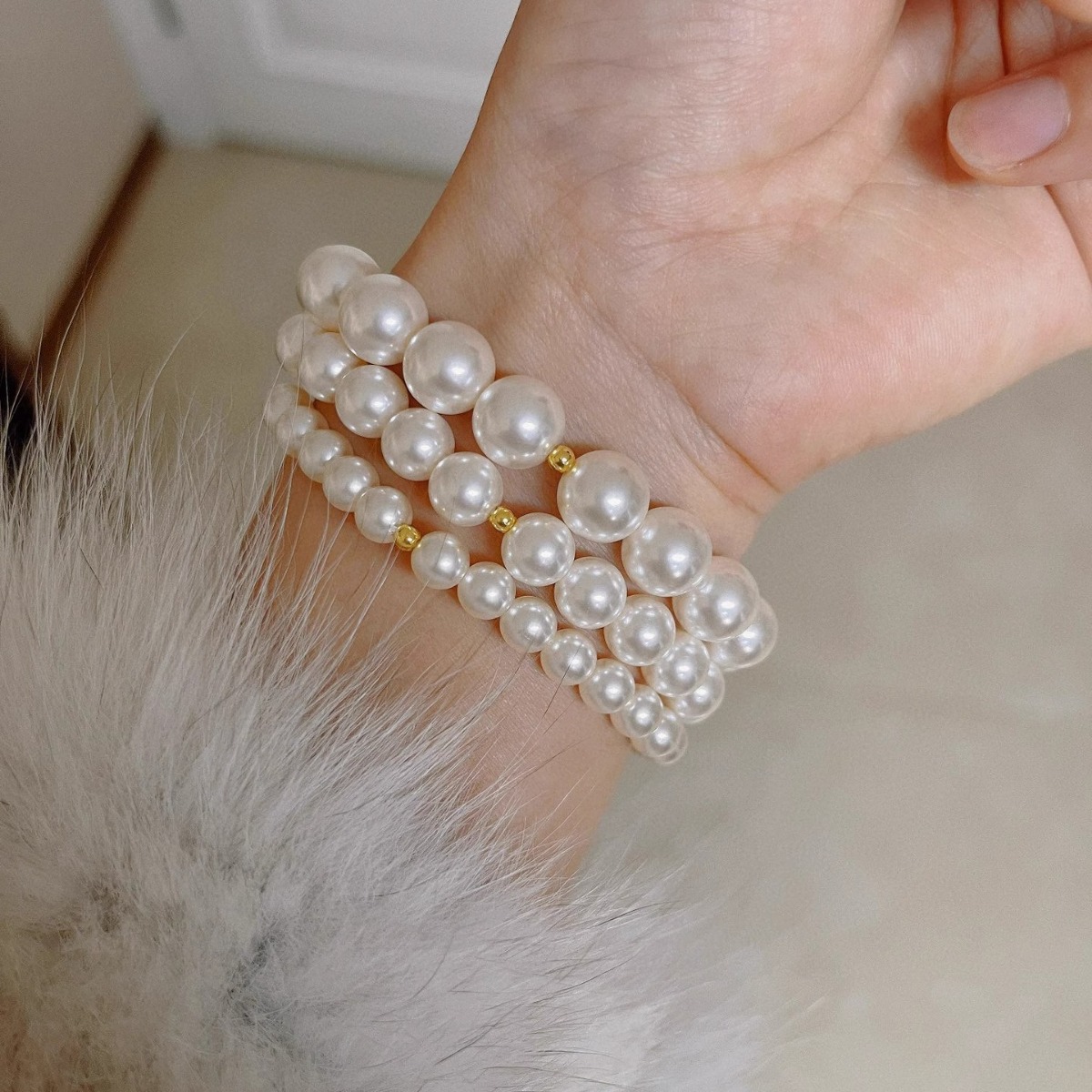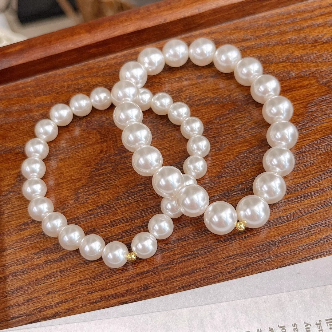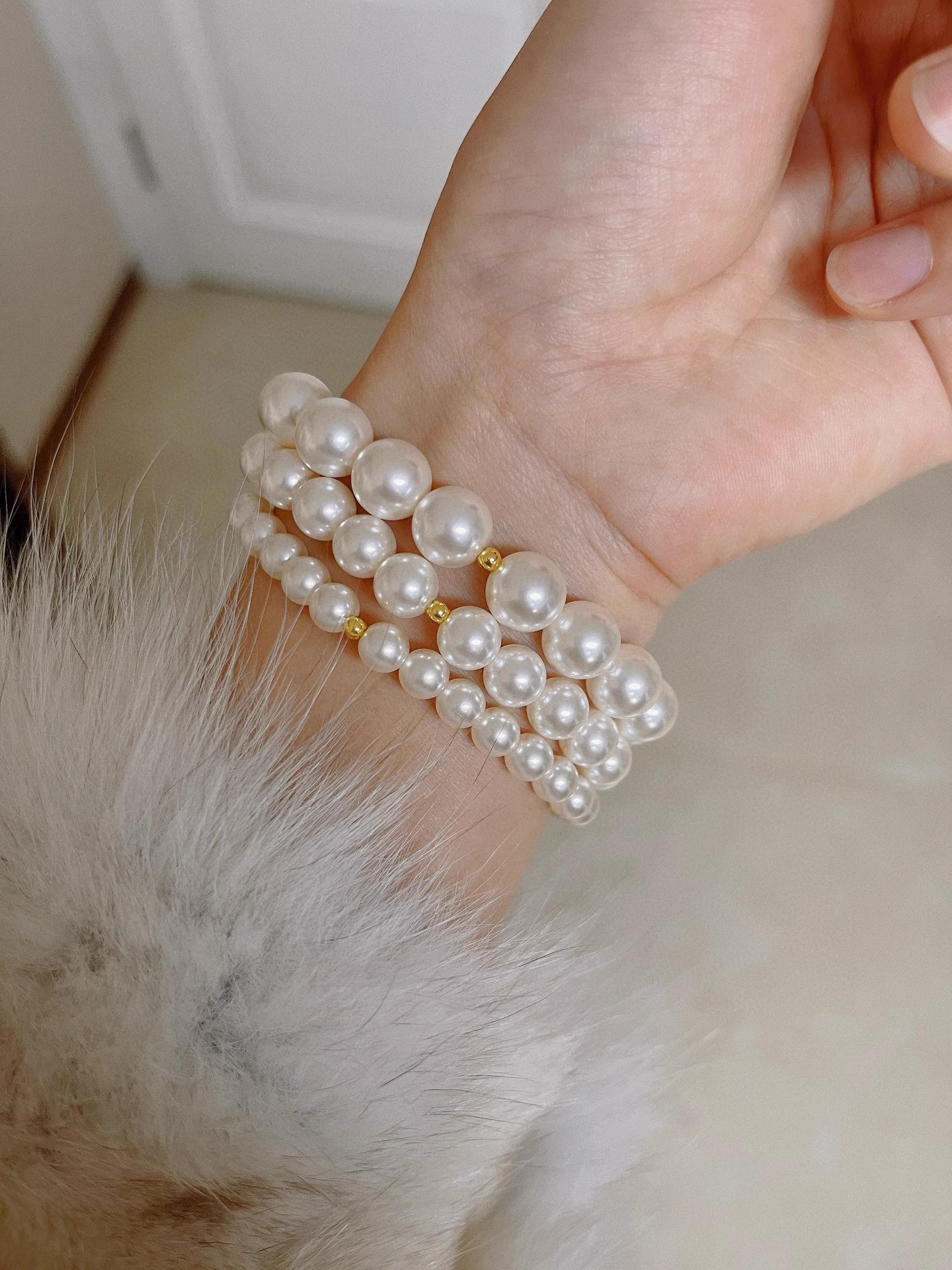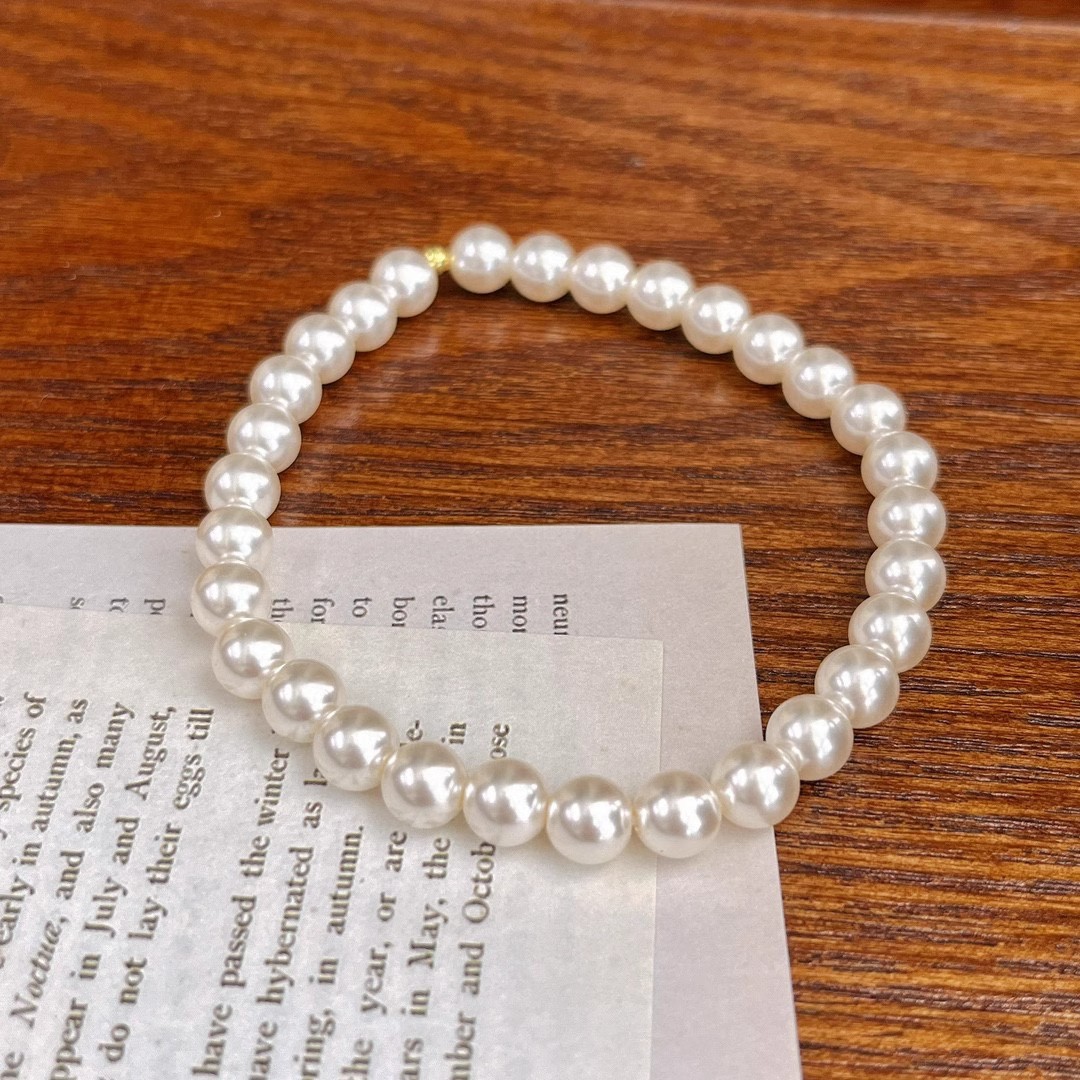 施家带金色珠650色施家珍珠珍珠手链 6mm 8mm 10mm正圆手链批发