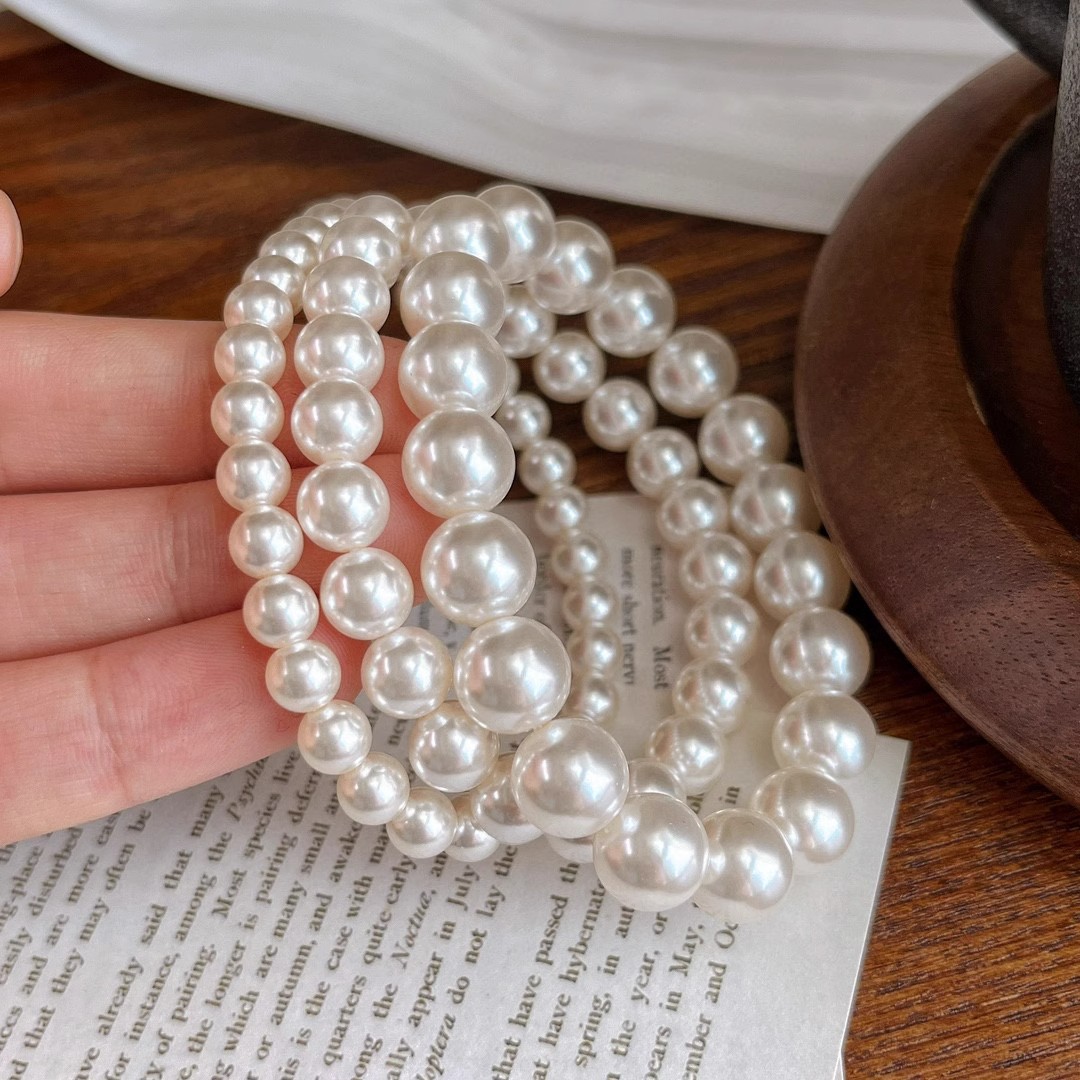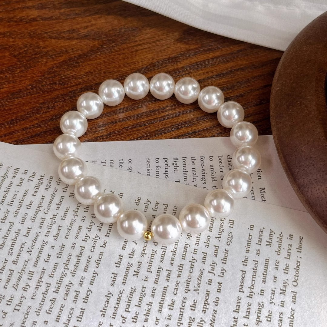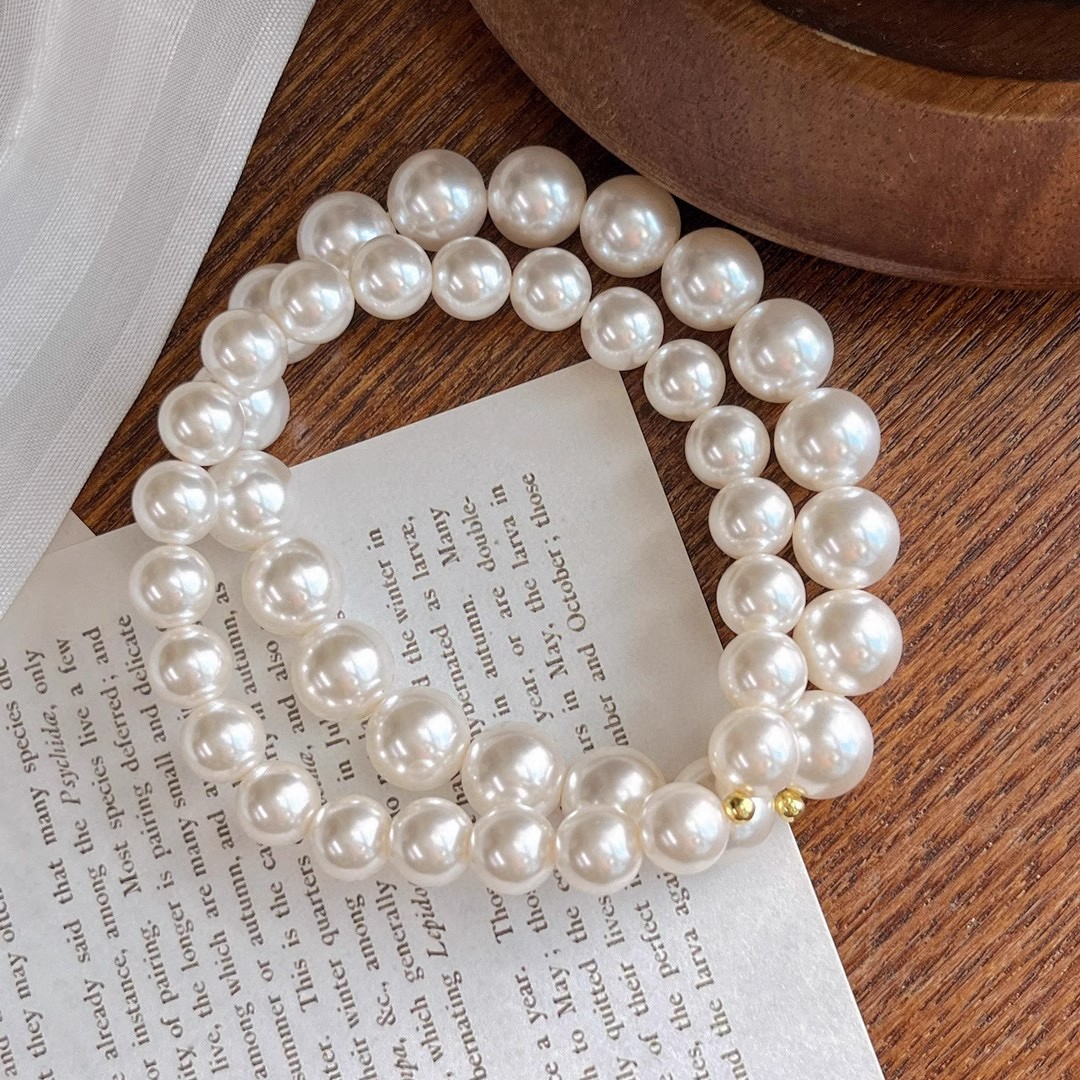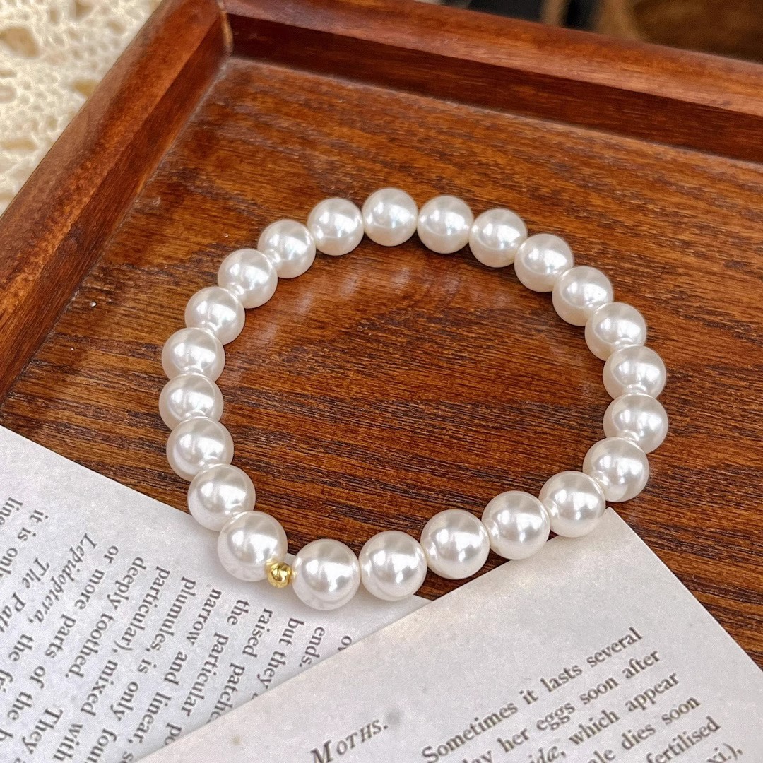 施家带金色珠650色施家珍珠珍珠手链 6mm 8mm 10mm正圆手链批发
