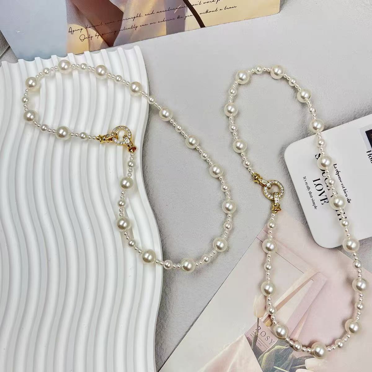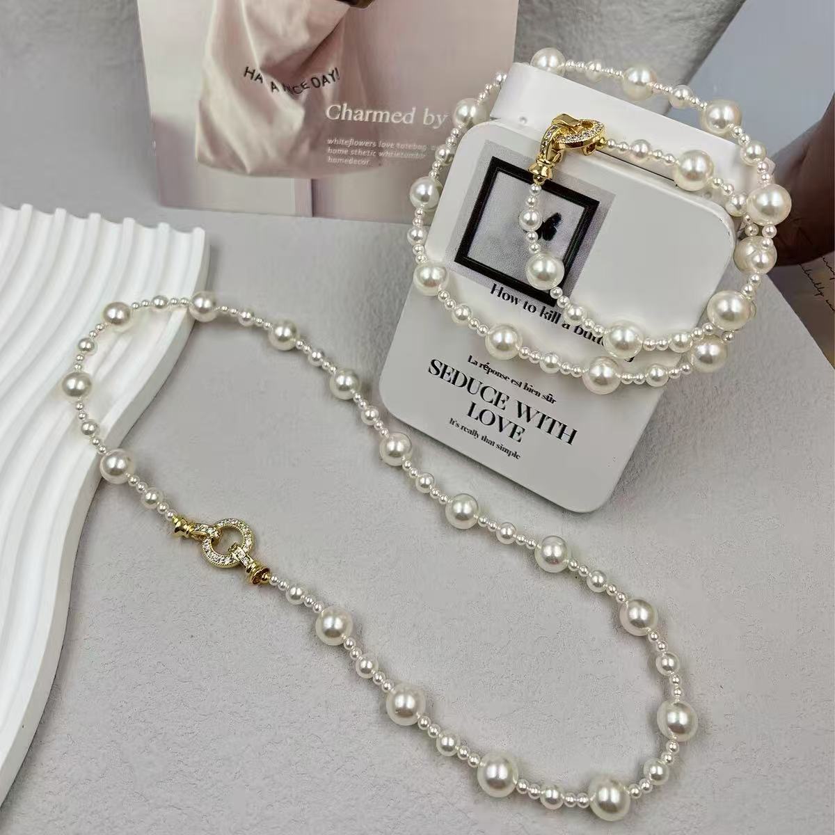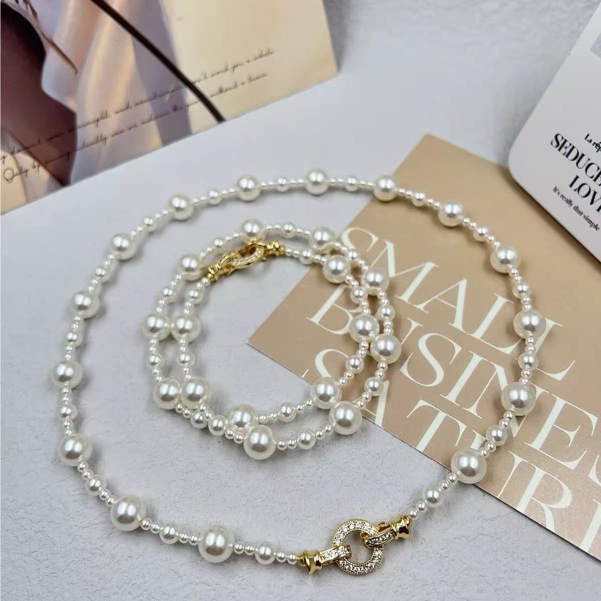 18K厚金法式施家珍珠串珠项链感时尚锁骨链公主风轻奢颈链女