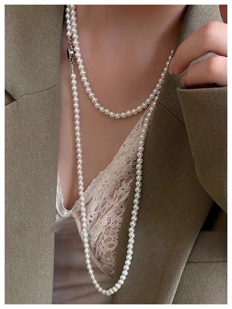 施家珍珠项链饰品感小众百搭毛衣链长款热销配饰新品女ins风