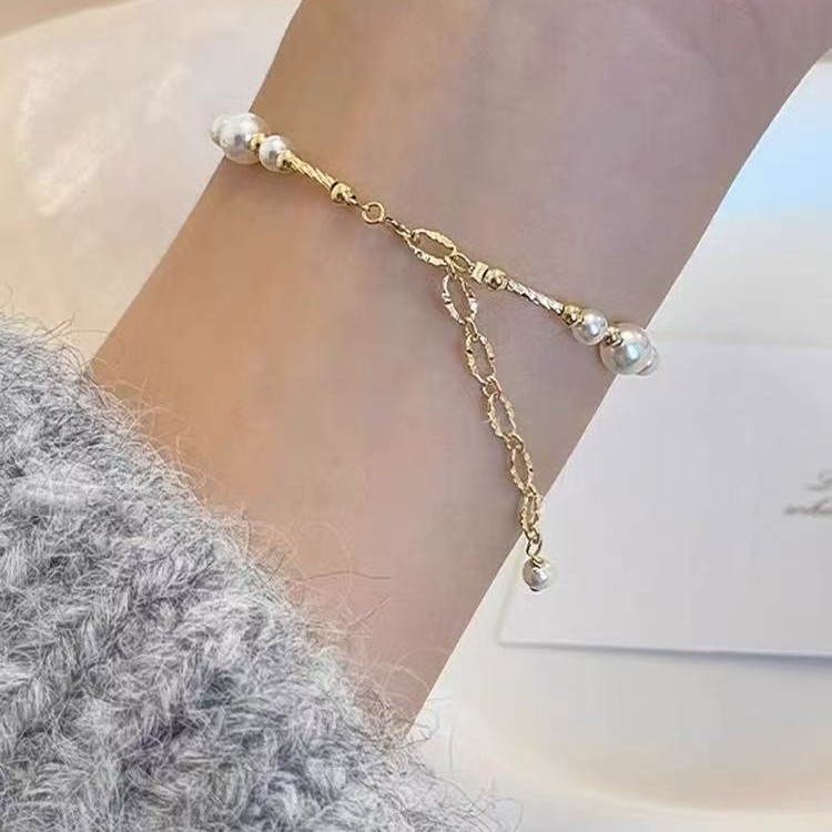 施家正圆两件套强光珍珠手链女款轻奢小众设计感气质手饰两条装