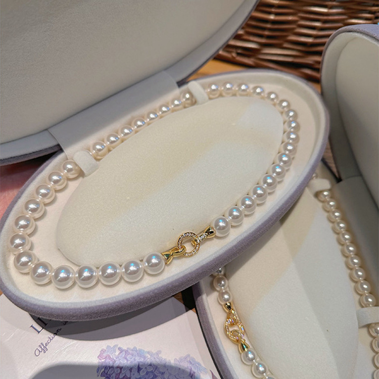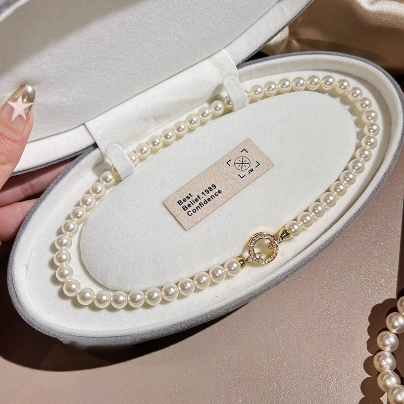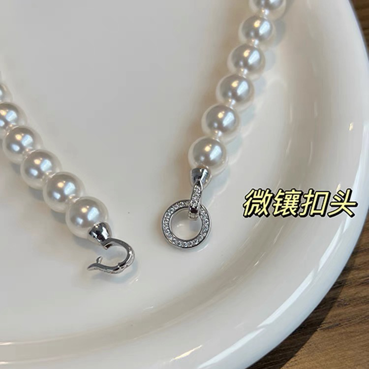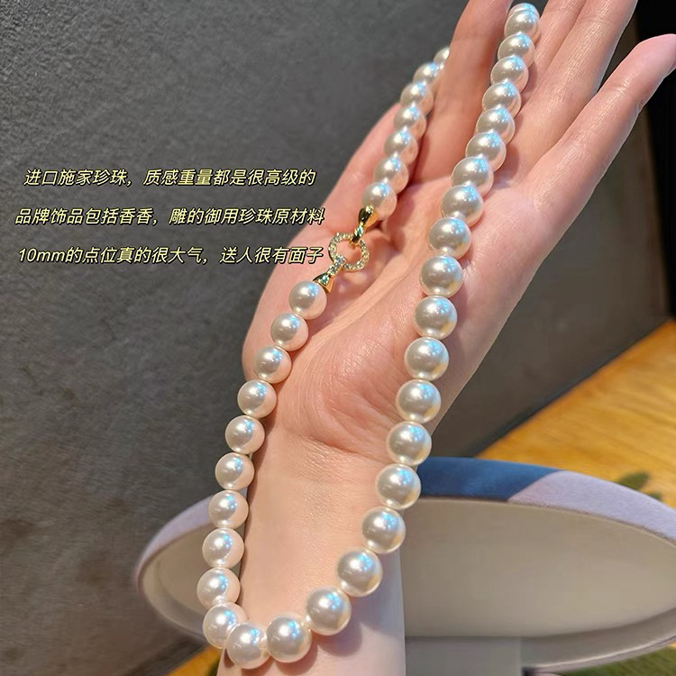 施家正圆珍珠项链女新款爆款百搭毛衣链轻奢小众设计感颈链