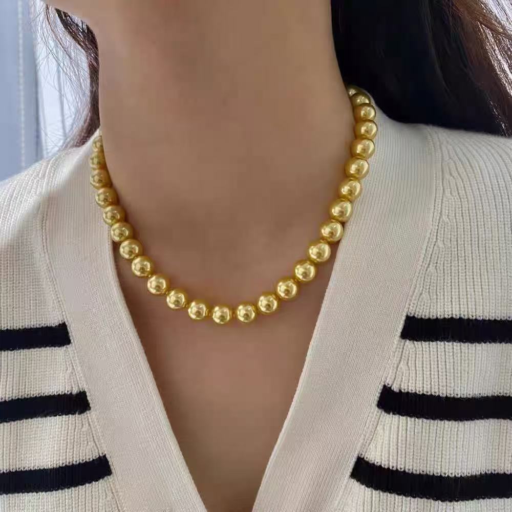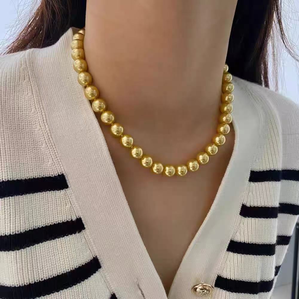 施家珍珠南洋金项链女款爆款轻奢小众锁骨链气质元宝扣珍珠批发