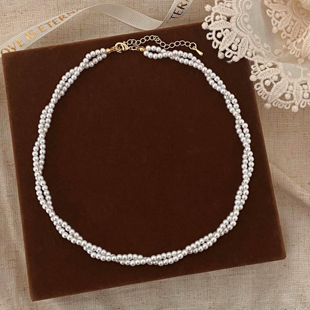 简约施家珍珠项链小众百搭感叠戴颈链法式复古多层麻花锁骨链
