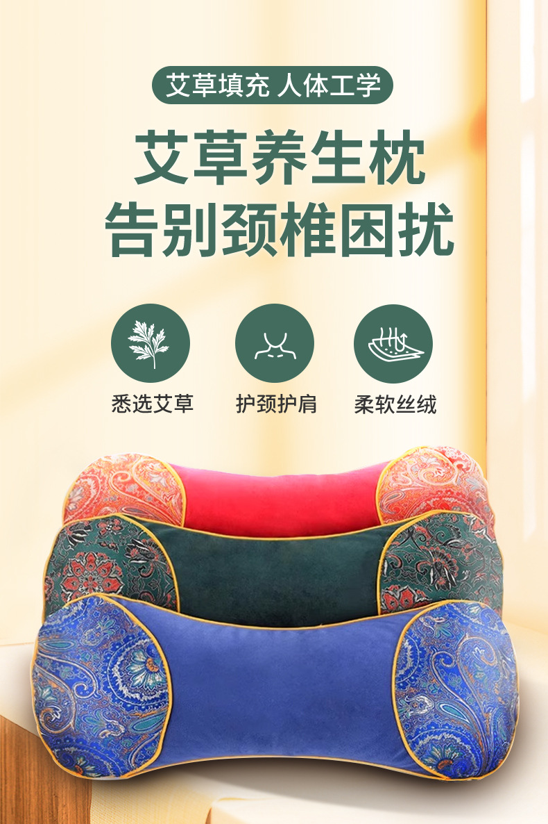 艾草颈椎枕礼盒装厂家粗布按摩护颈枕艾草枕家用多款式艾叶骨头枕