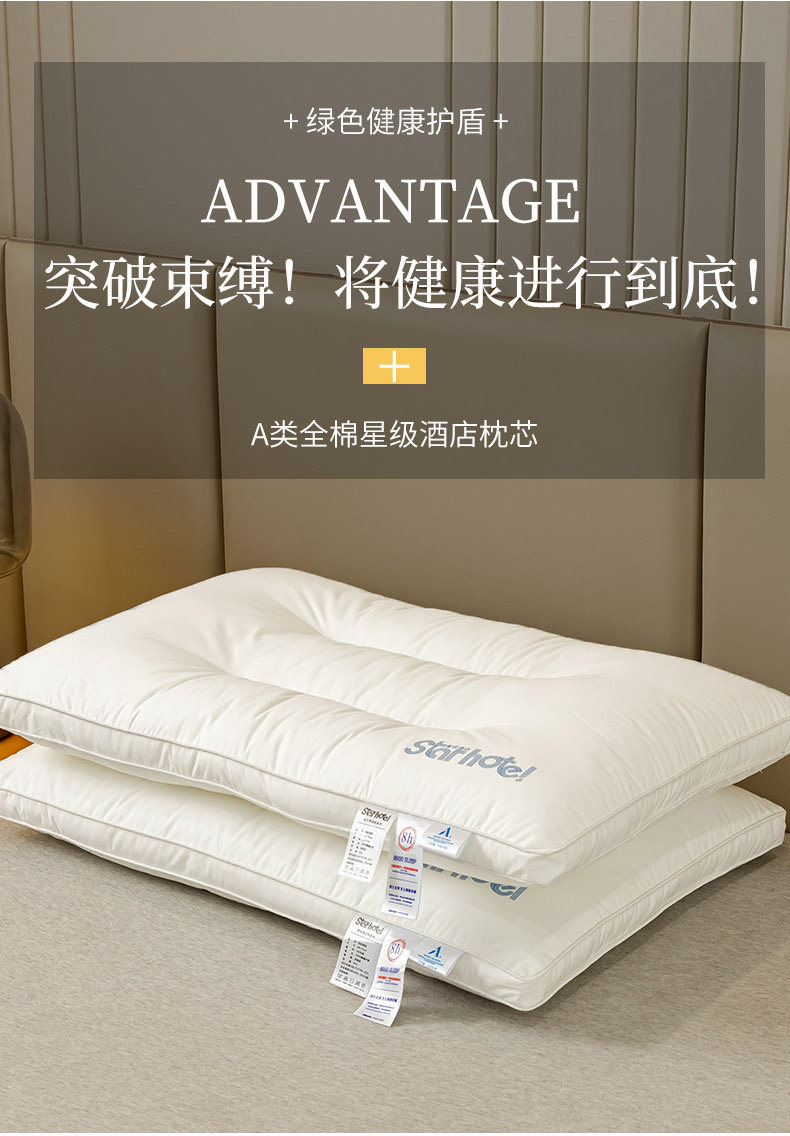 A类全棉枕头枕芯家用护颈椎助睡眠一对学生宿舍超柔低枕酒店专用