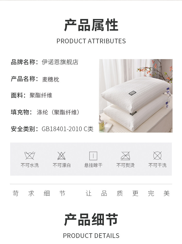 枕头枕芯高低枕护颈椎枕助睡眠一对装单人家用酒店专用宿舍学生