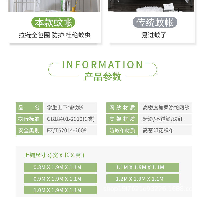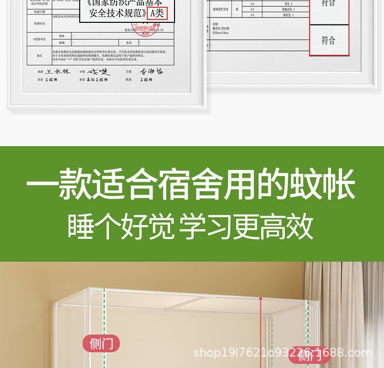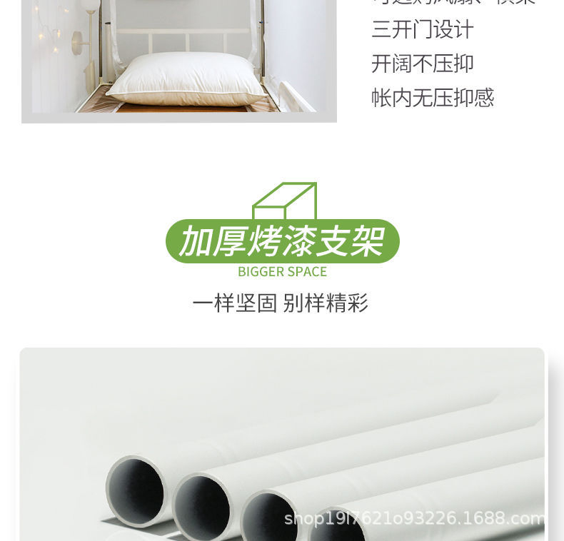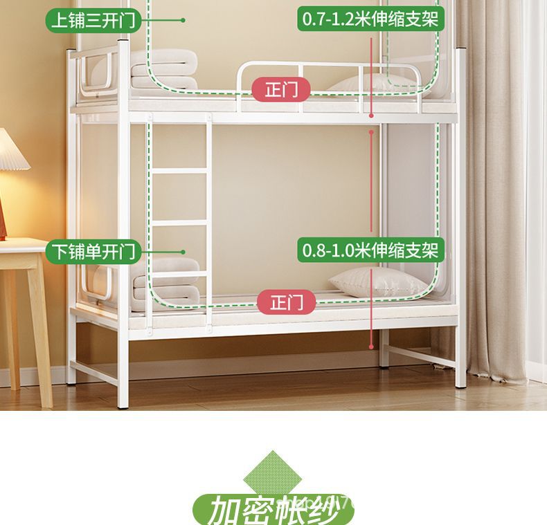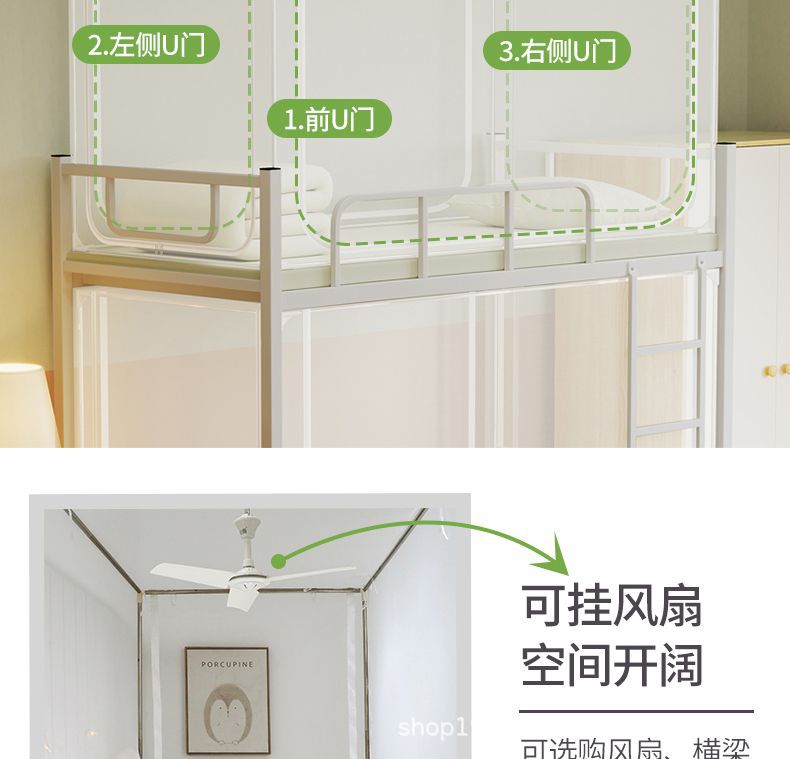 学生宿舍支架蚊帐拉链式上下铺防蚊防尘防摔三开门遮光帘寝室通用