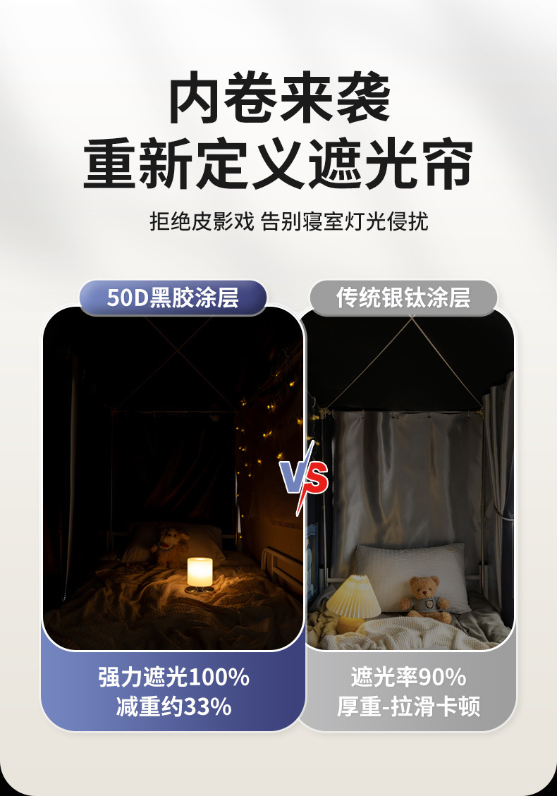 100%全遮光加厚床帘宿舍上铺寝室大学生上下铺女帘子围帘窗帘遮挡