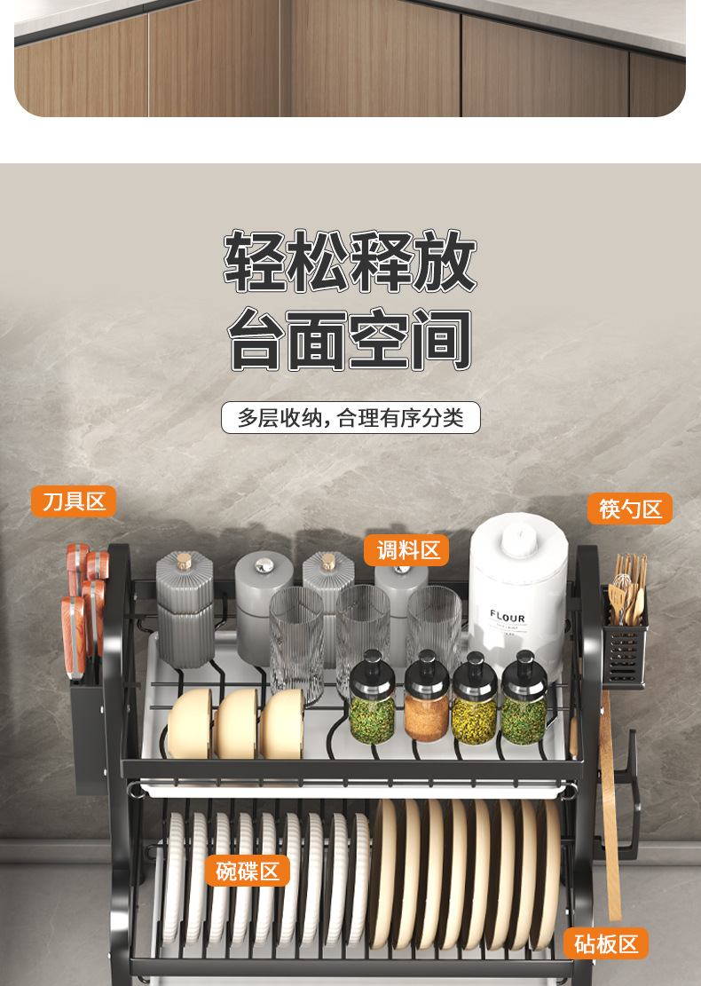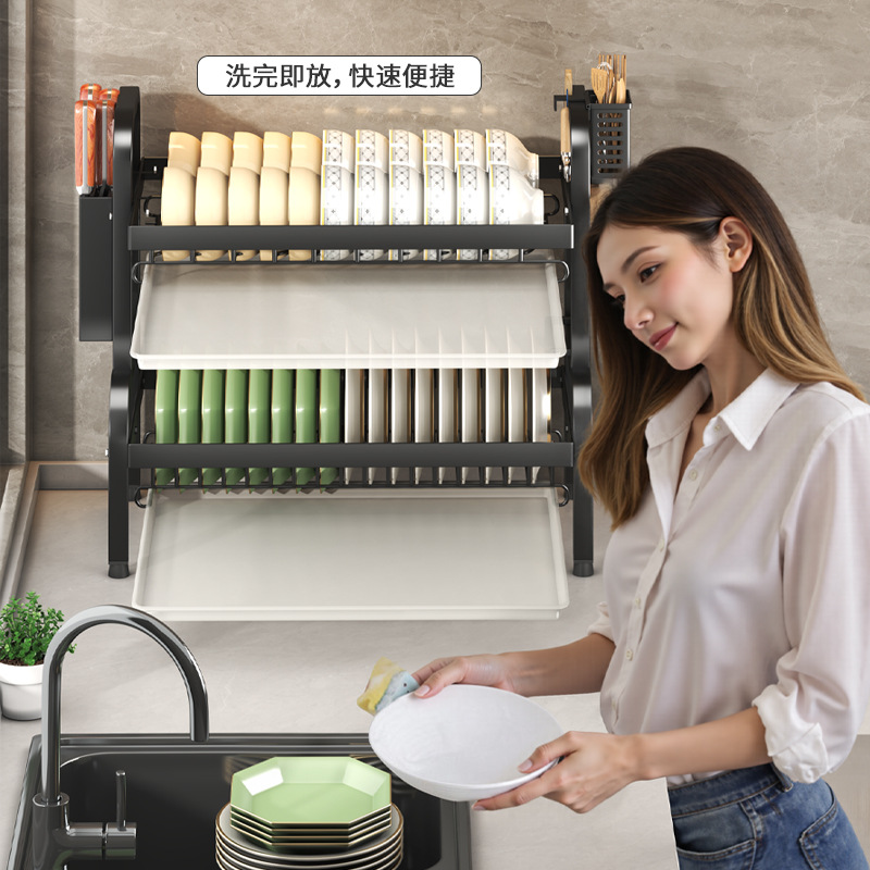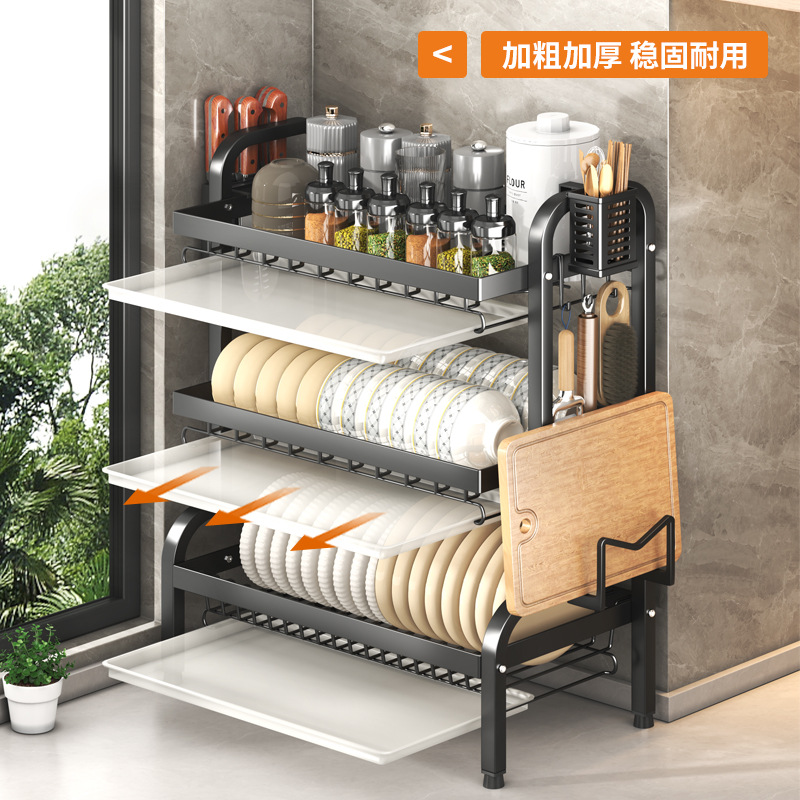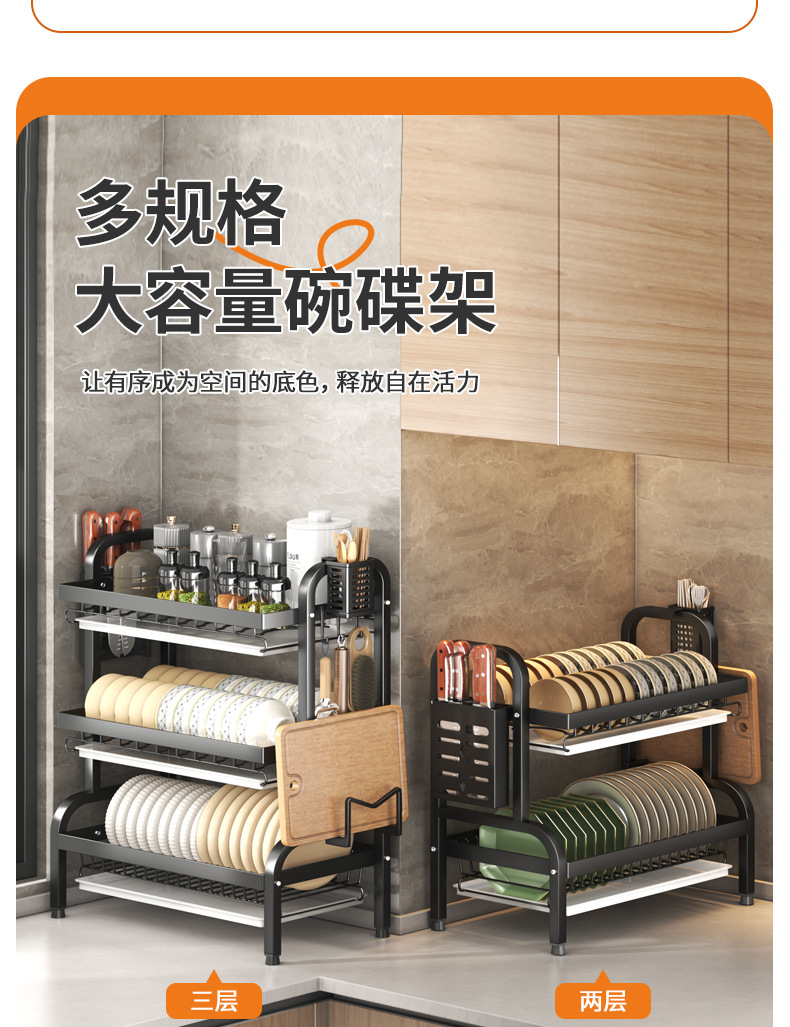 碗碟收纳架厨房台面多层沥水架碗碟碗筷插刀砧板架收纳架滤水碗架