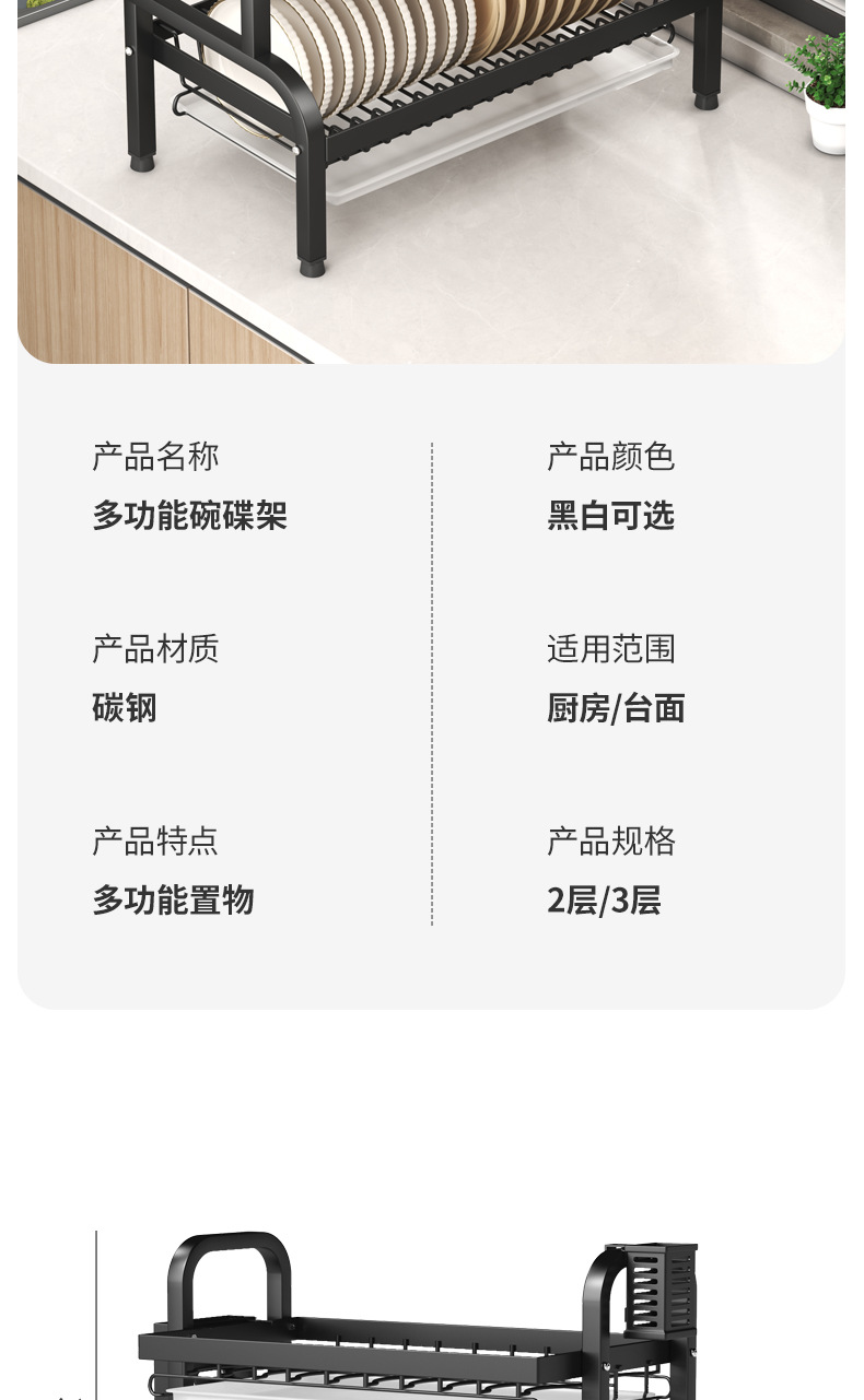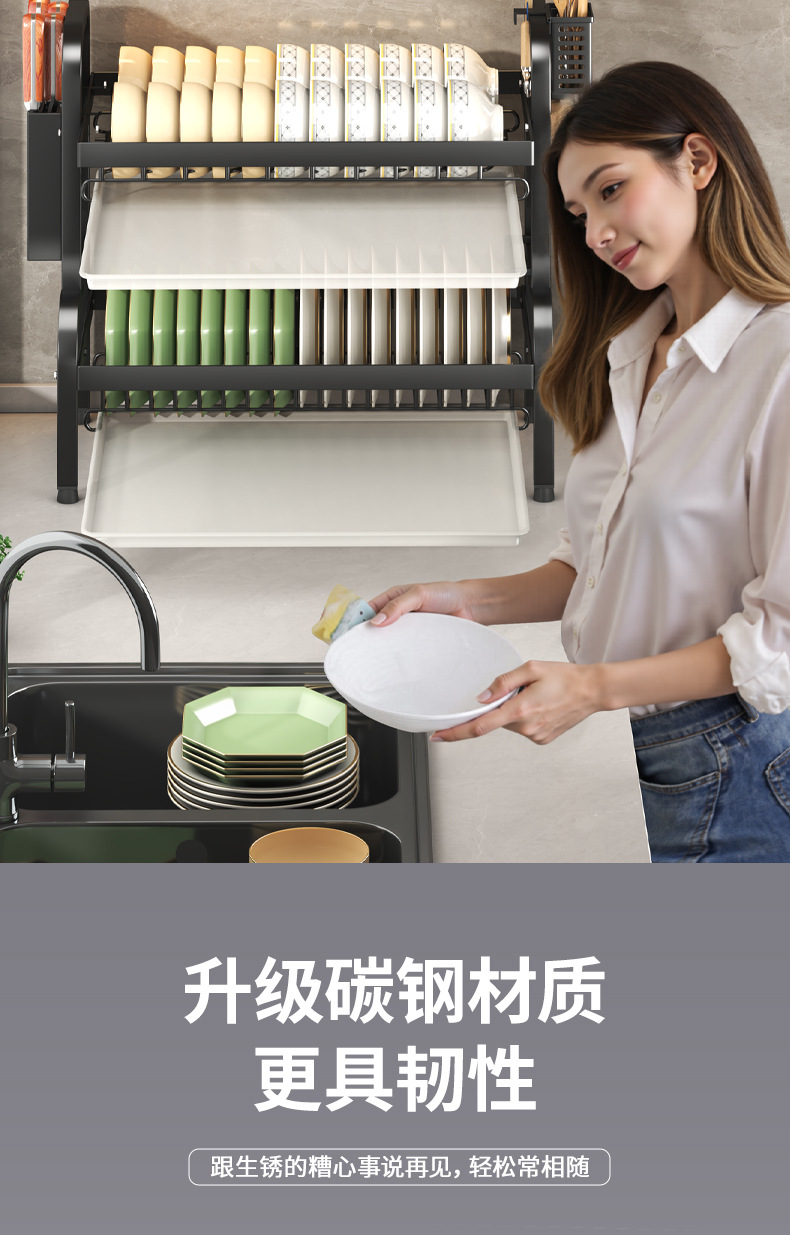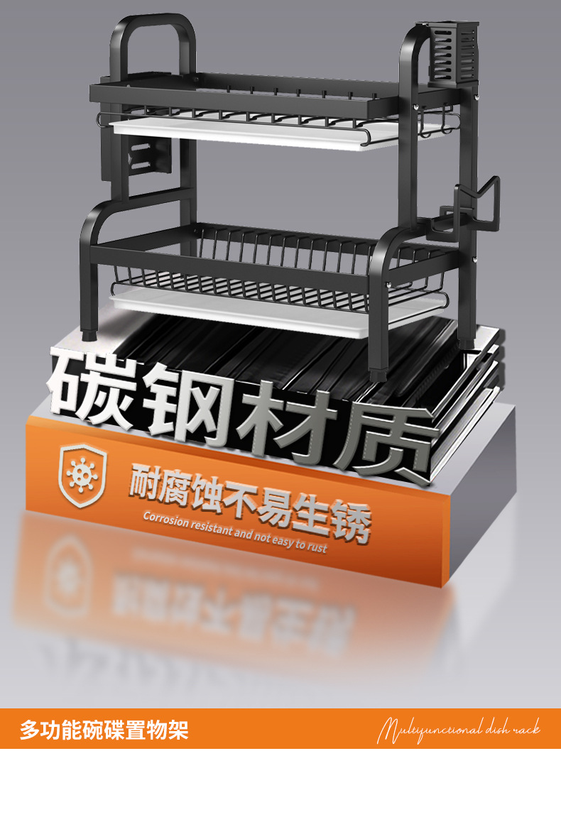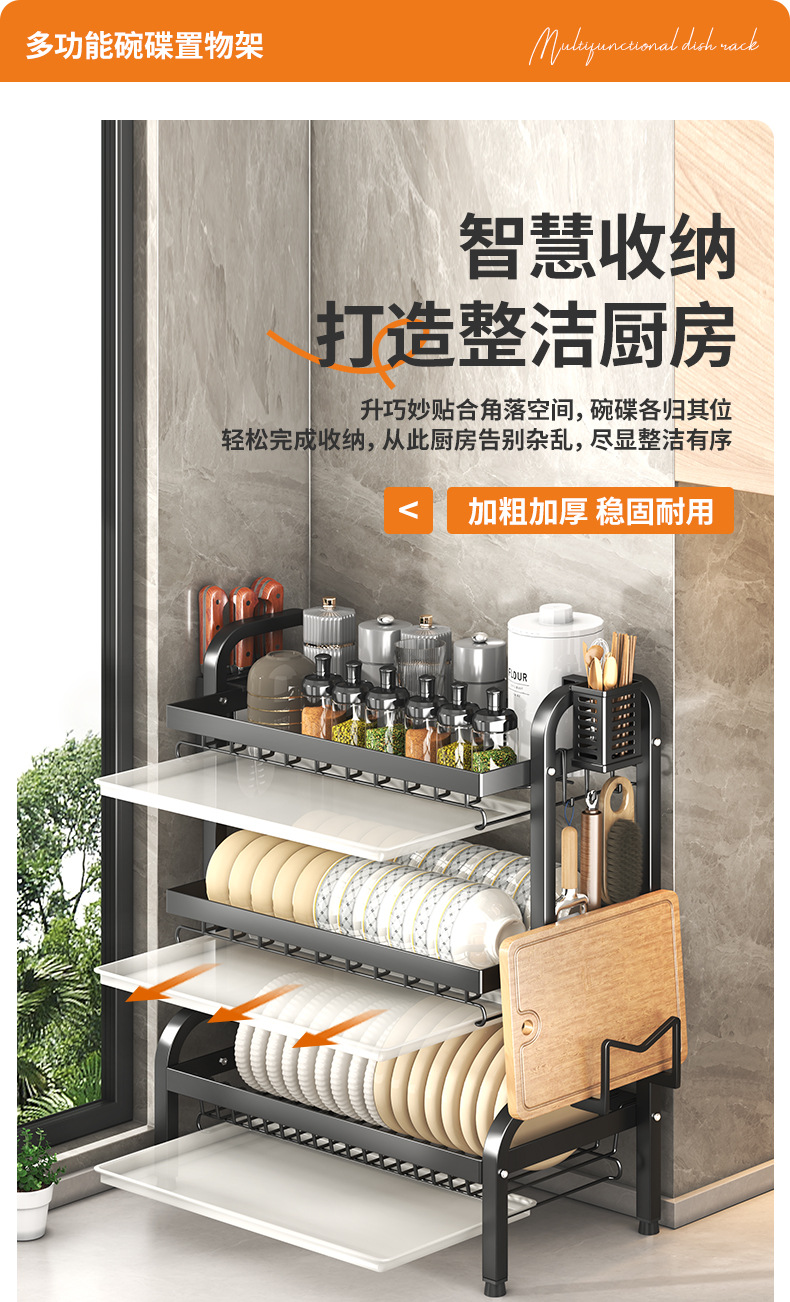 碗碟收纳架厨房台面多层沥水架碗碟碗筷插刀砧板架收纳架滤水碗架