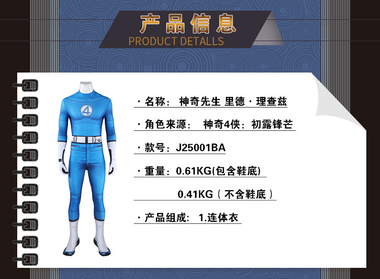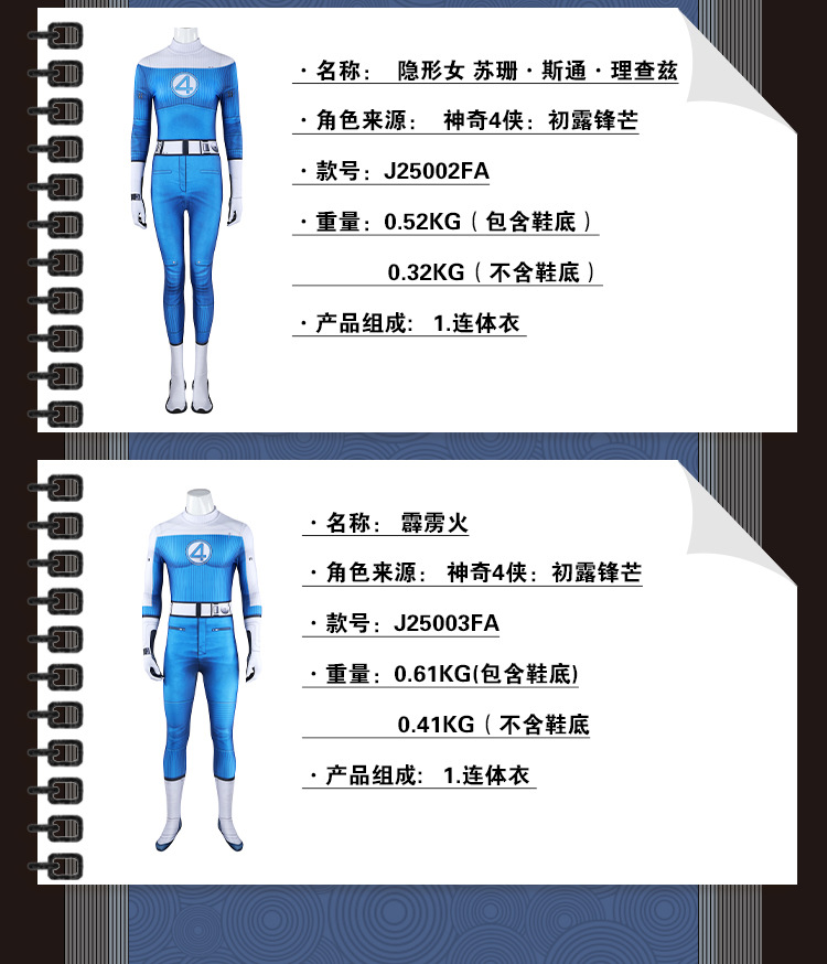 神奇4侠初露锋芒cosplay隐形女神奇先生霹雳火cos服紧身连体衣