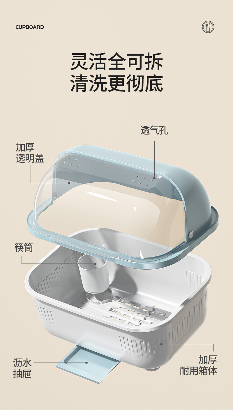 碗筷收纳盒放碗碟架厨房家用装盘餐具沥水小型置物架子带盖碗柜箱