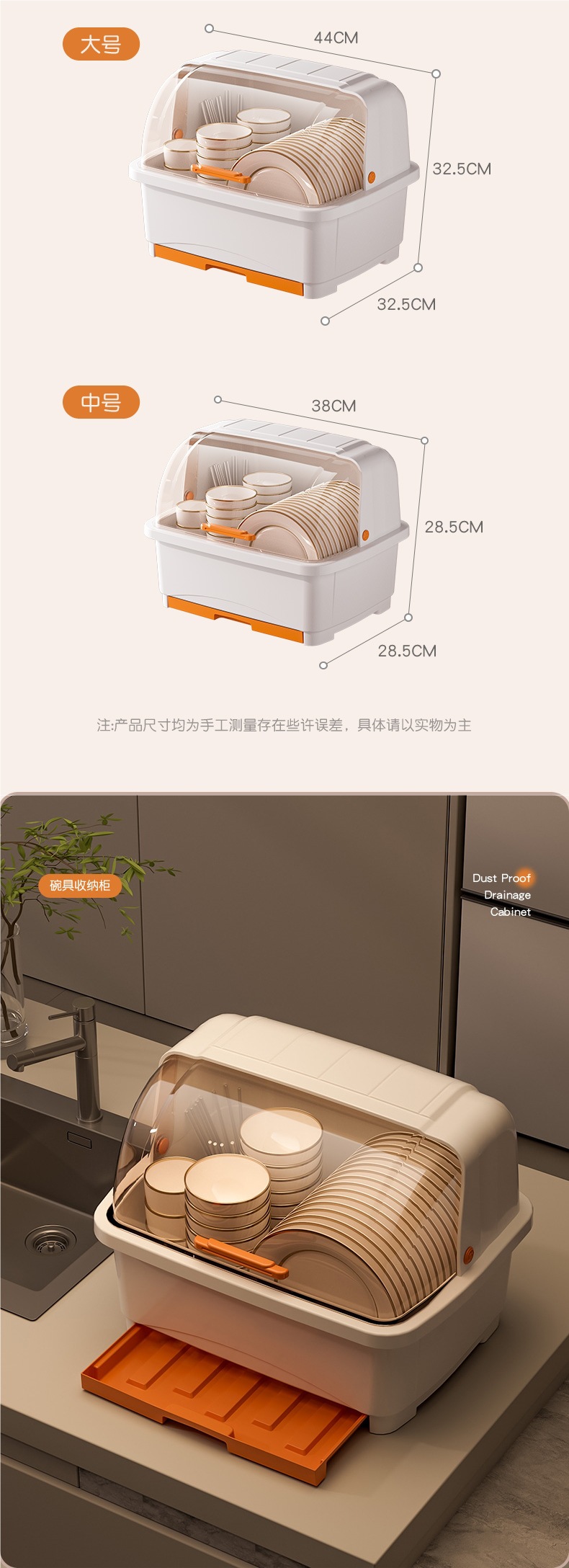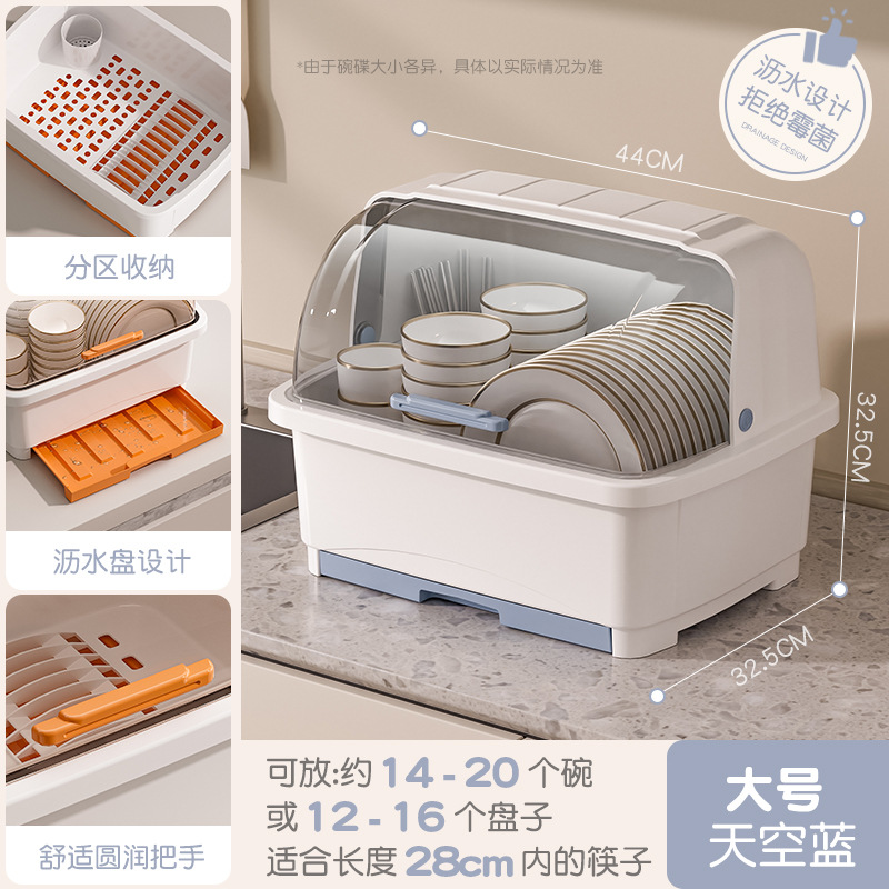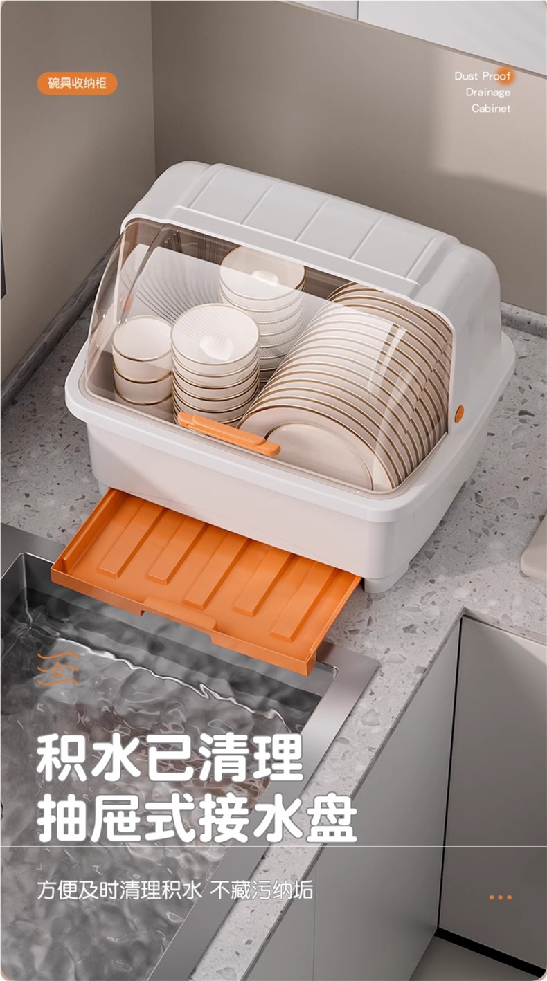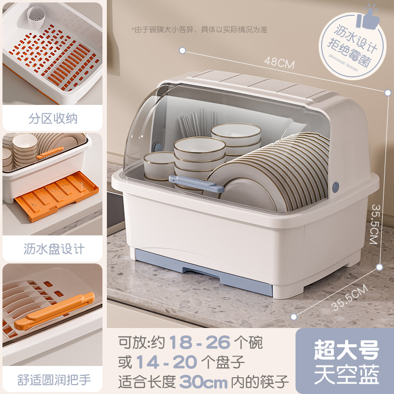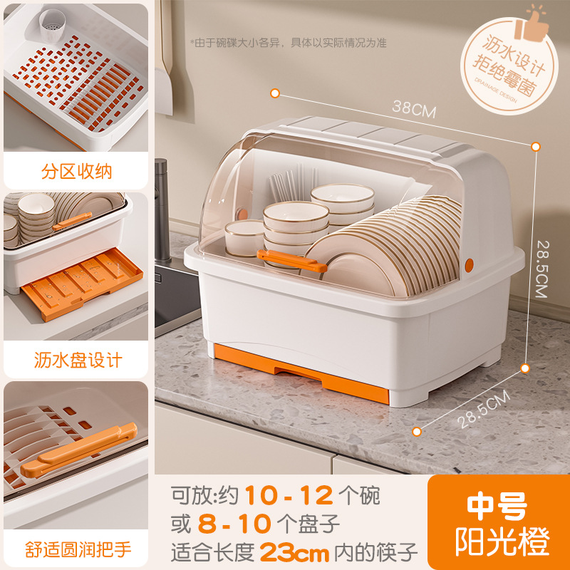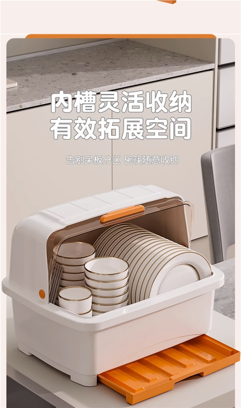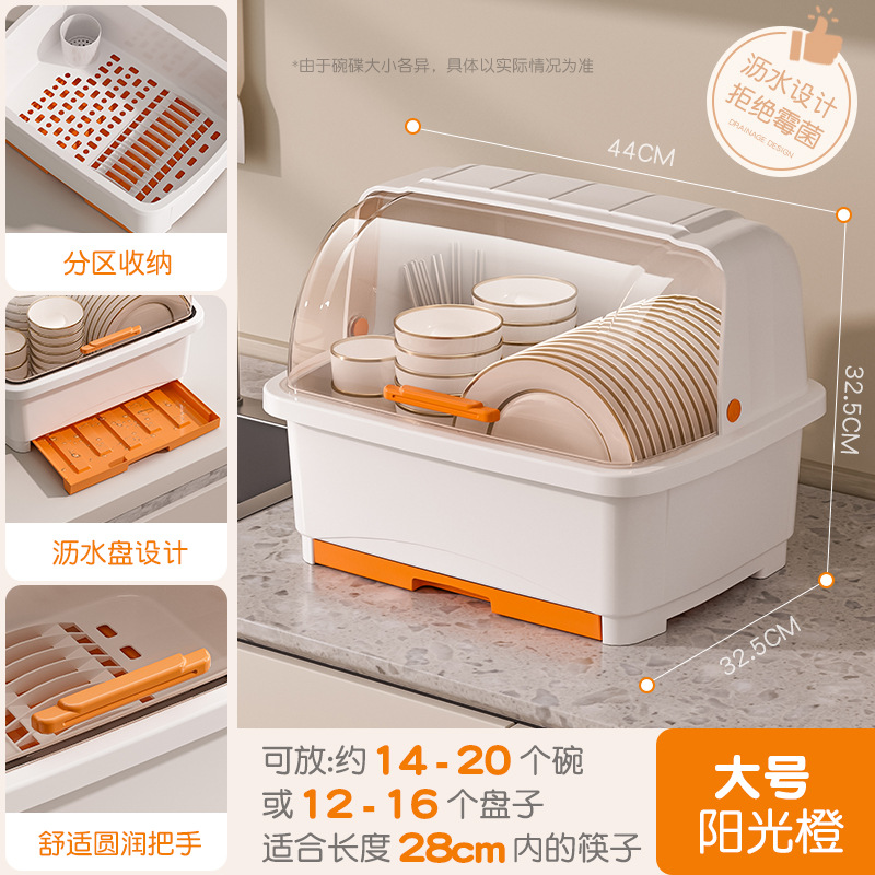 厨房放碗筷收纳盒带盖家用沥水碗柜收纳架装餐具碗碟盘置物架加厚