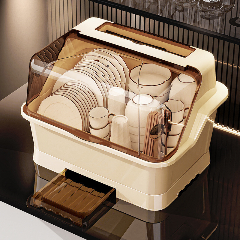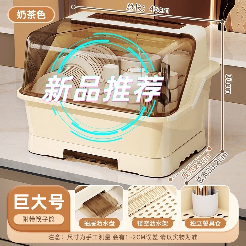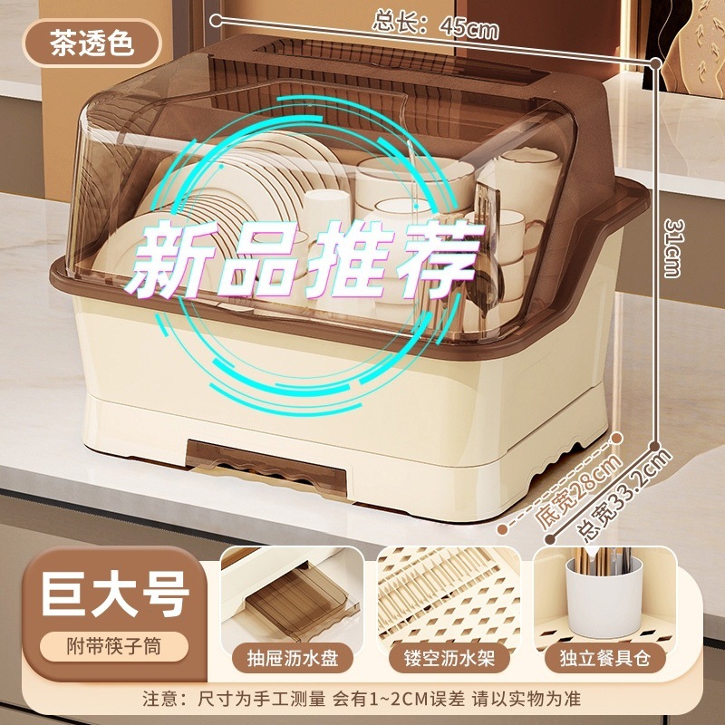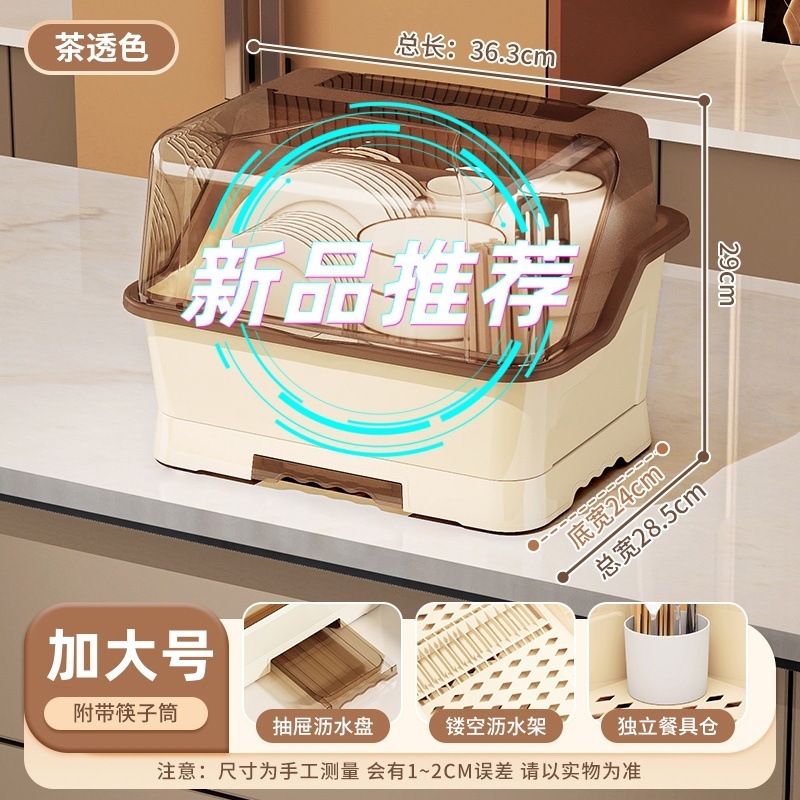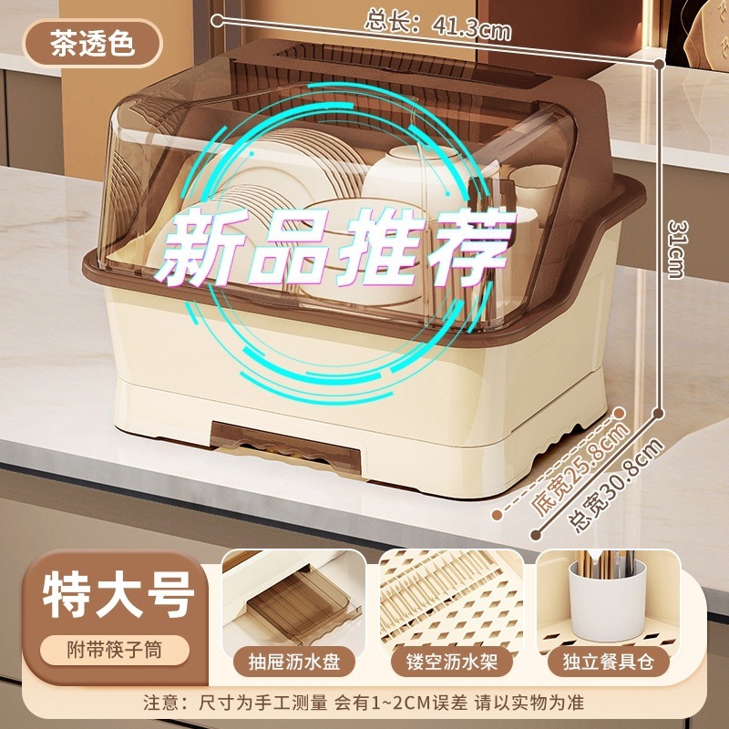 碗筷收纳盒放碗碟收纳架厨房餐具家用装盘箱带沥水置物架碗柜