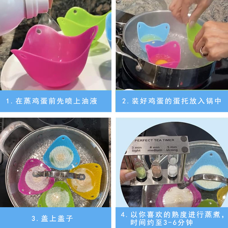 硅胶蒸蛋器加厚食品级硅胶煮蛋器跨境创意硅胶蛋托器4色蒸蛋器