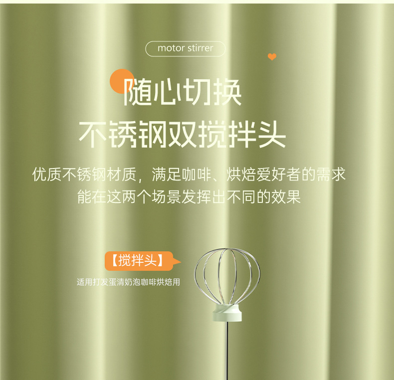 25年新款电动奶泡器不锈钢手持家用奶油起泡器迷你搅拌棒打蛋器