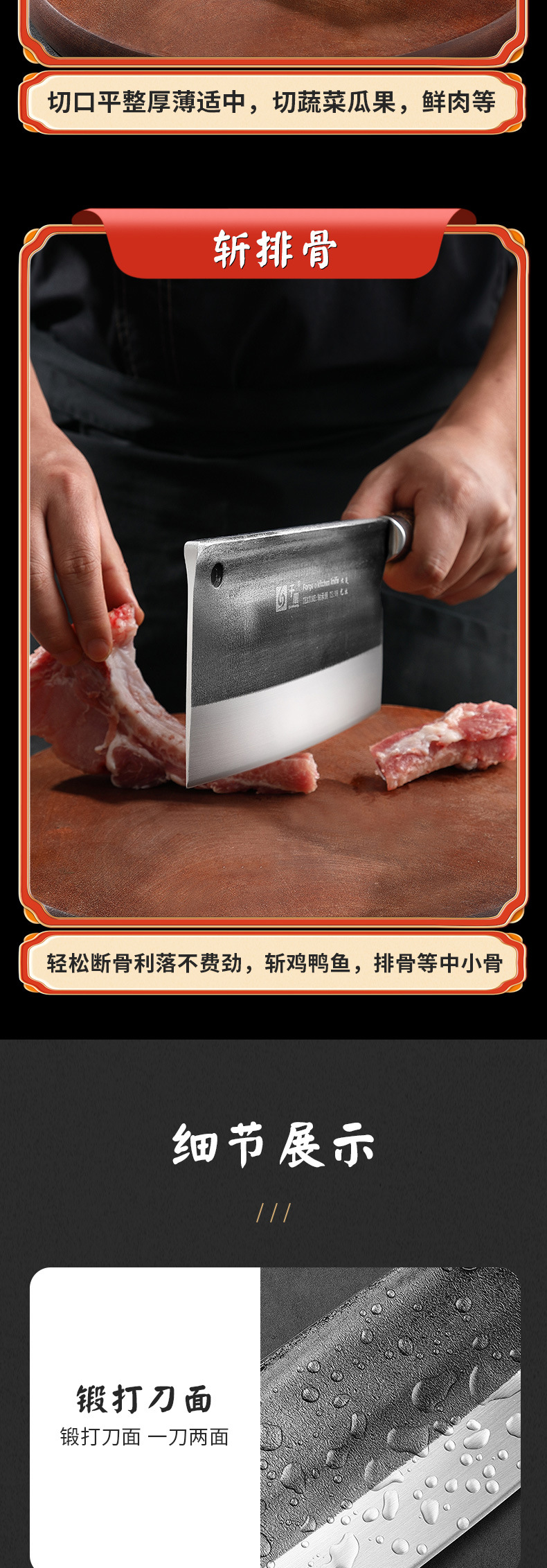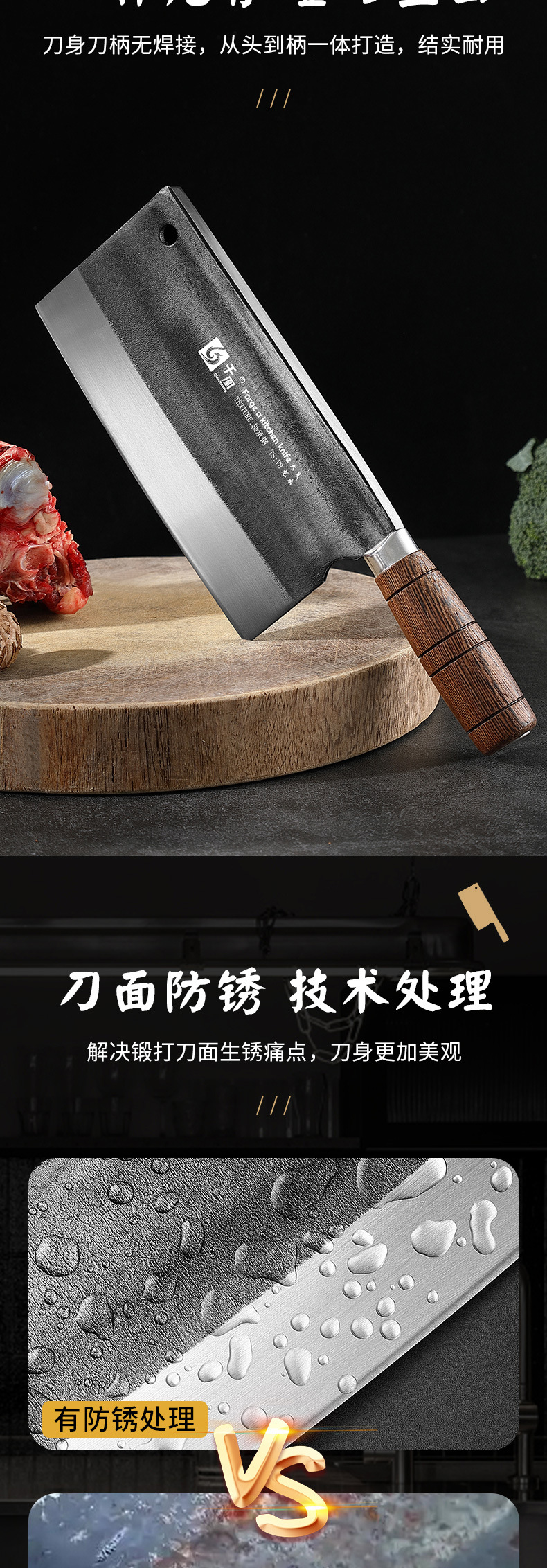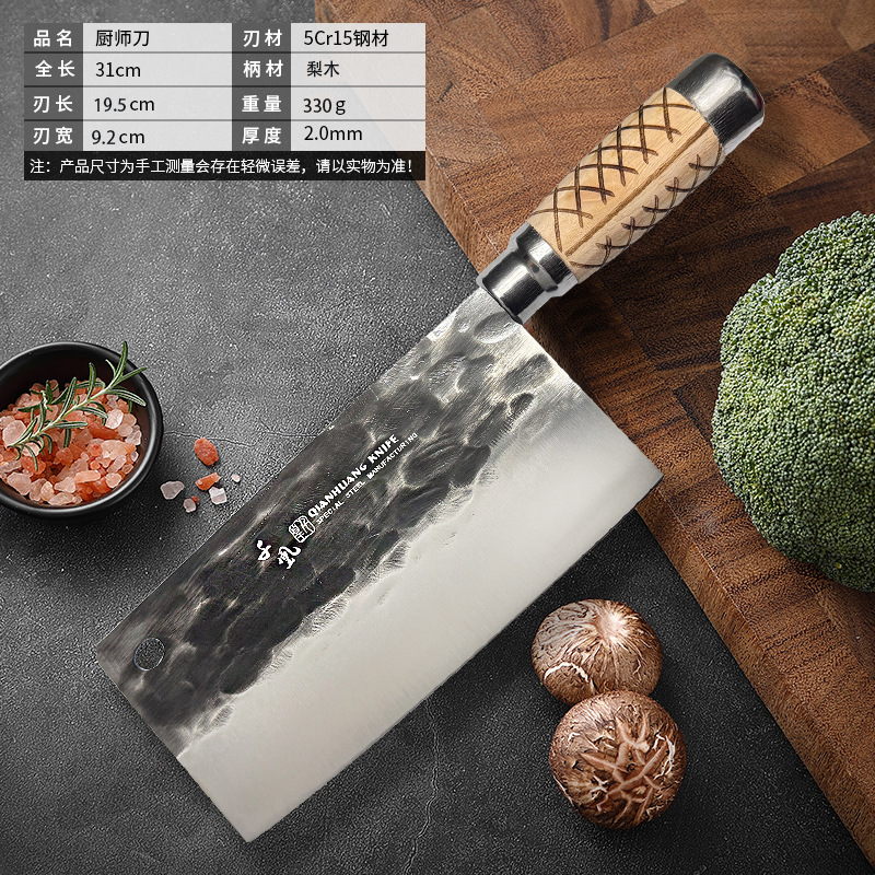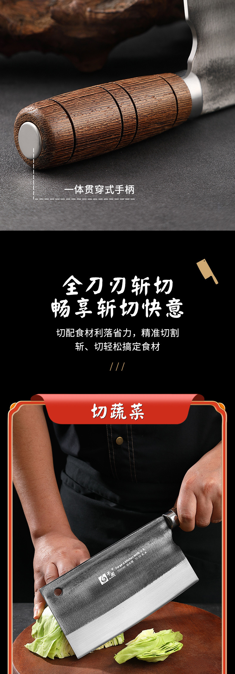 卢大锤同款1.2斤轴承钢手工锻打斩切两用刀锤纹菜刀中式两用商